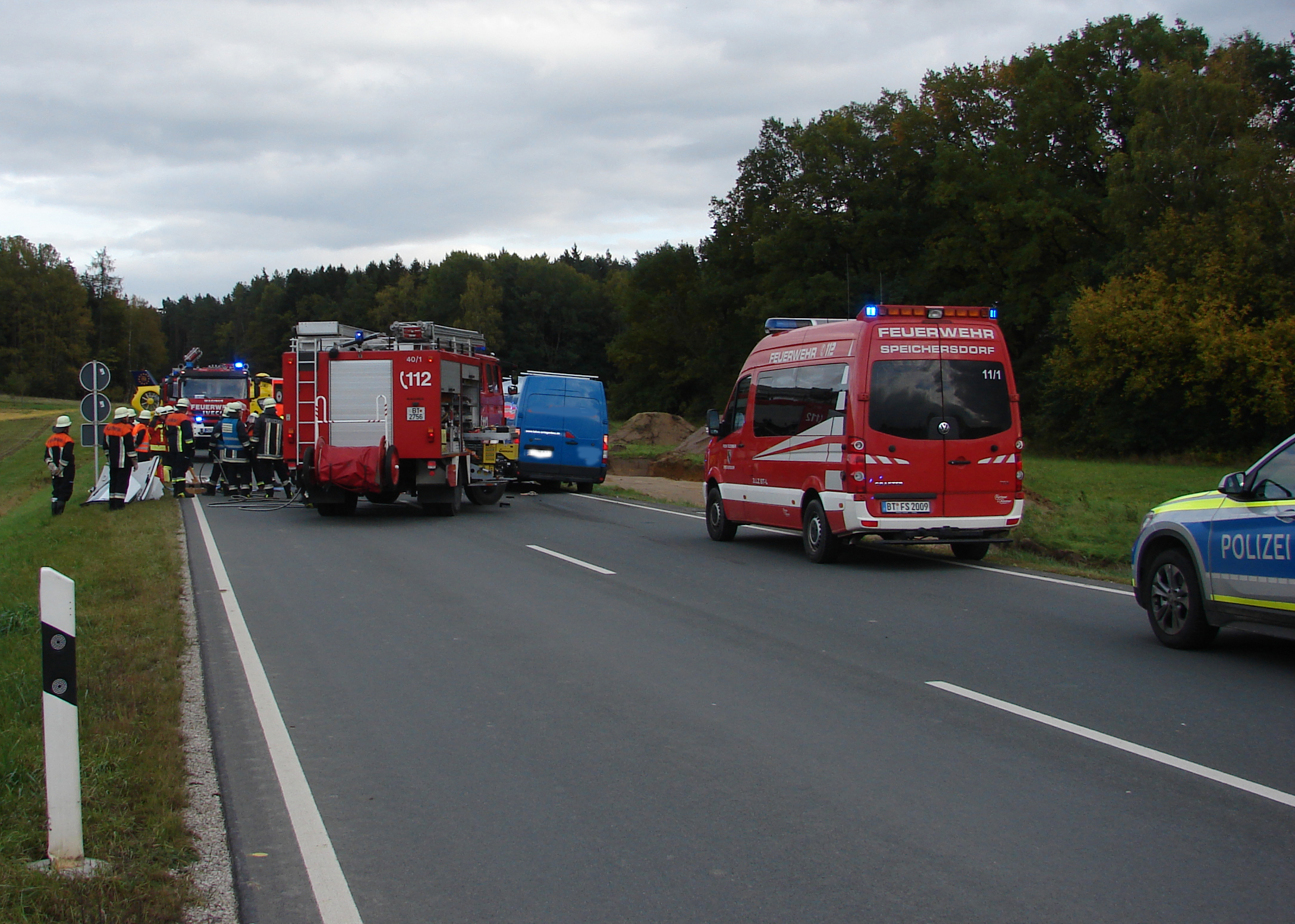 Am Montag, dem 09.10.2017, alarmierte die Leitstelle Bayreuth die Feuerwehren aus Wirbenz, Kemnath und Speichersdorf zu einen Verkehrsunfall auf der Bundesstraße 22 Höhe Wirbenz.