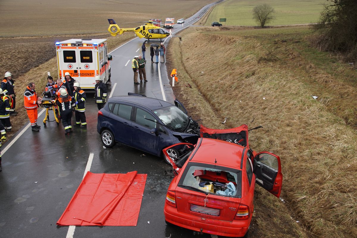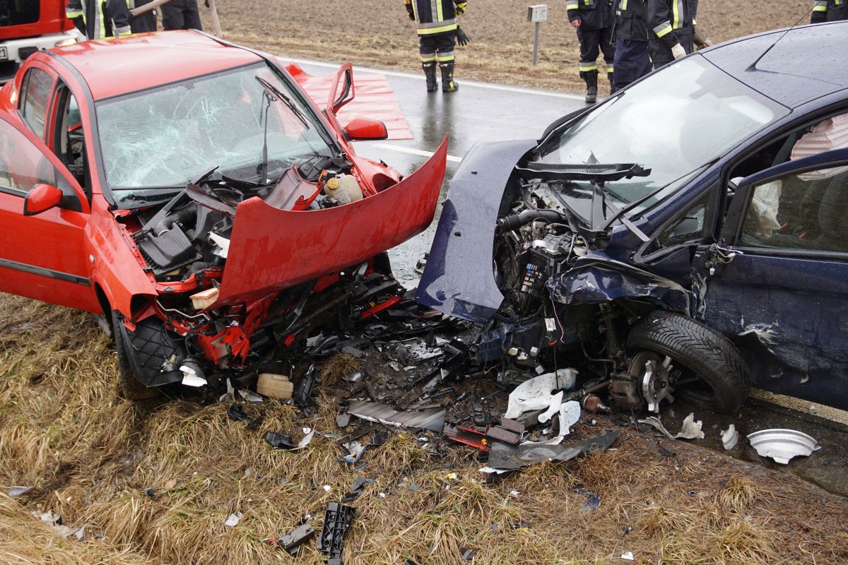 Die Feuerwehren kümmerten sich neben der Rettung der verletzten Personen um deren Betreuung und die Sperrung der Bundesstraße B2.