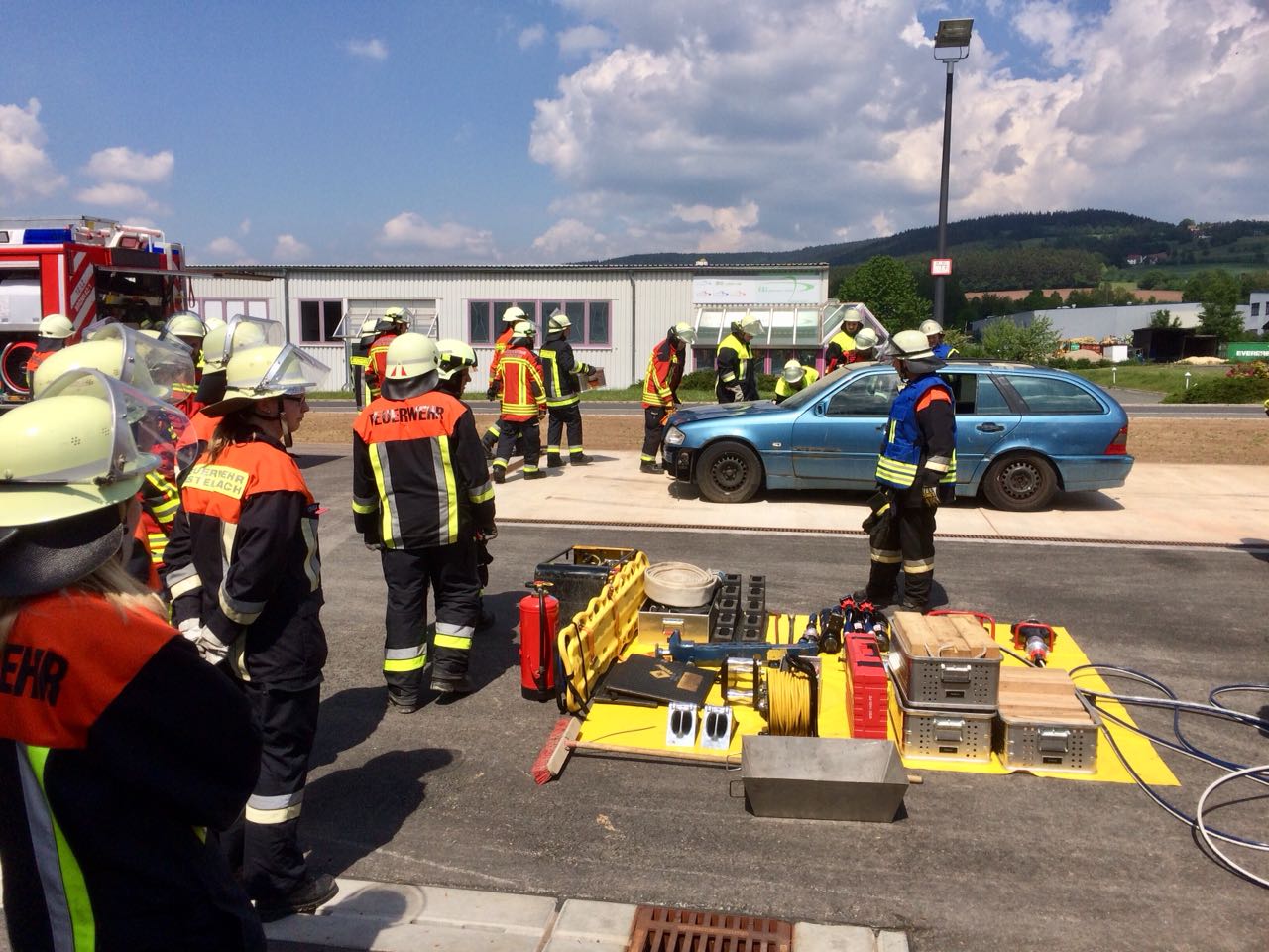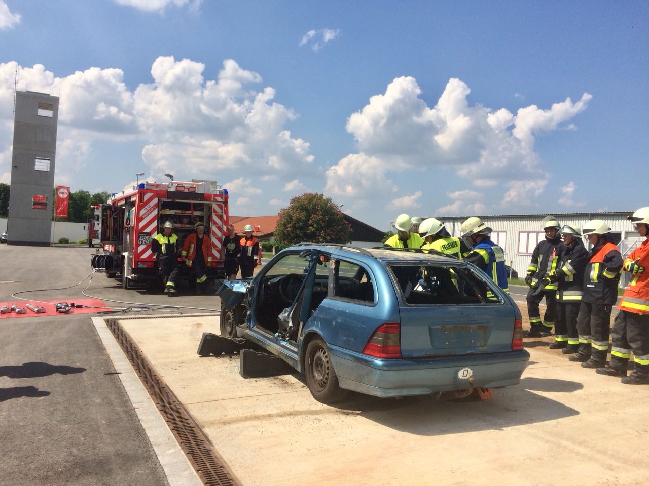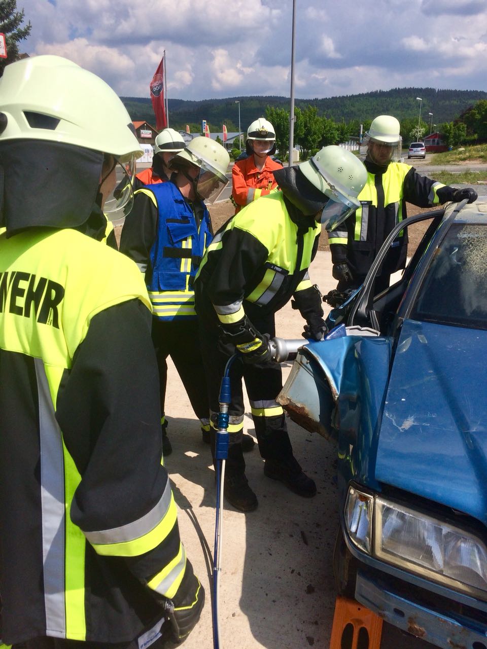 Insgesamt 30 Teilnehmer aus den Freiwilligen Feuerwehren Bad Berneck, Bronn, Hollfeld, Mistelbach, Trockau, Troschenreuth, Unterlind, Waischenfeld, Weidenberg und Zeulenreuth besuchten am 12.05.2018 den Lehrgang Schneide- und Spreiztechnik der Ausbildungsinspektion des Landkreises Bayreuth. Nach der theoretischen Unterweisung am Vormittag erfolgte am Nachmittag der Praxisteil. Auch die neuen Antriebsarten, Kennzeichenabfrage und das sogenannte „e-call“ waren dabei Themenpunkte. Das Übungsfahrzeug wurde mit den Rettungsgeräten des Rüstwagens aus Weidenberg und dem Hilfeleistungslöschgruppenfahrzeug 10 aus Bronn zerlegt. Die Abarbeitung erfolgte in aller Ruhe, so dass auch jeder die Möglichkeit hatte, die Rettungsgeräte zu bedienen. Während der Mittagspause bekamen die Teilnehmer eine sehr beeindruckende Führung durch das neue Gerätehaus. Ganz herzlichen Dank gilt der FF Weidenberg für die „rund-um-sorglos“-Organisation und Verpflegung. Auch die beiden Kommandanten Heinrich Schmidt und Marco Kießling begrüßten die Teilnehmer und machten sich ein Bild von dem Ausbildungstag.