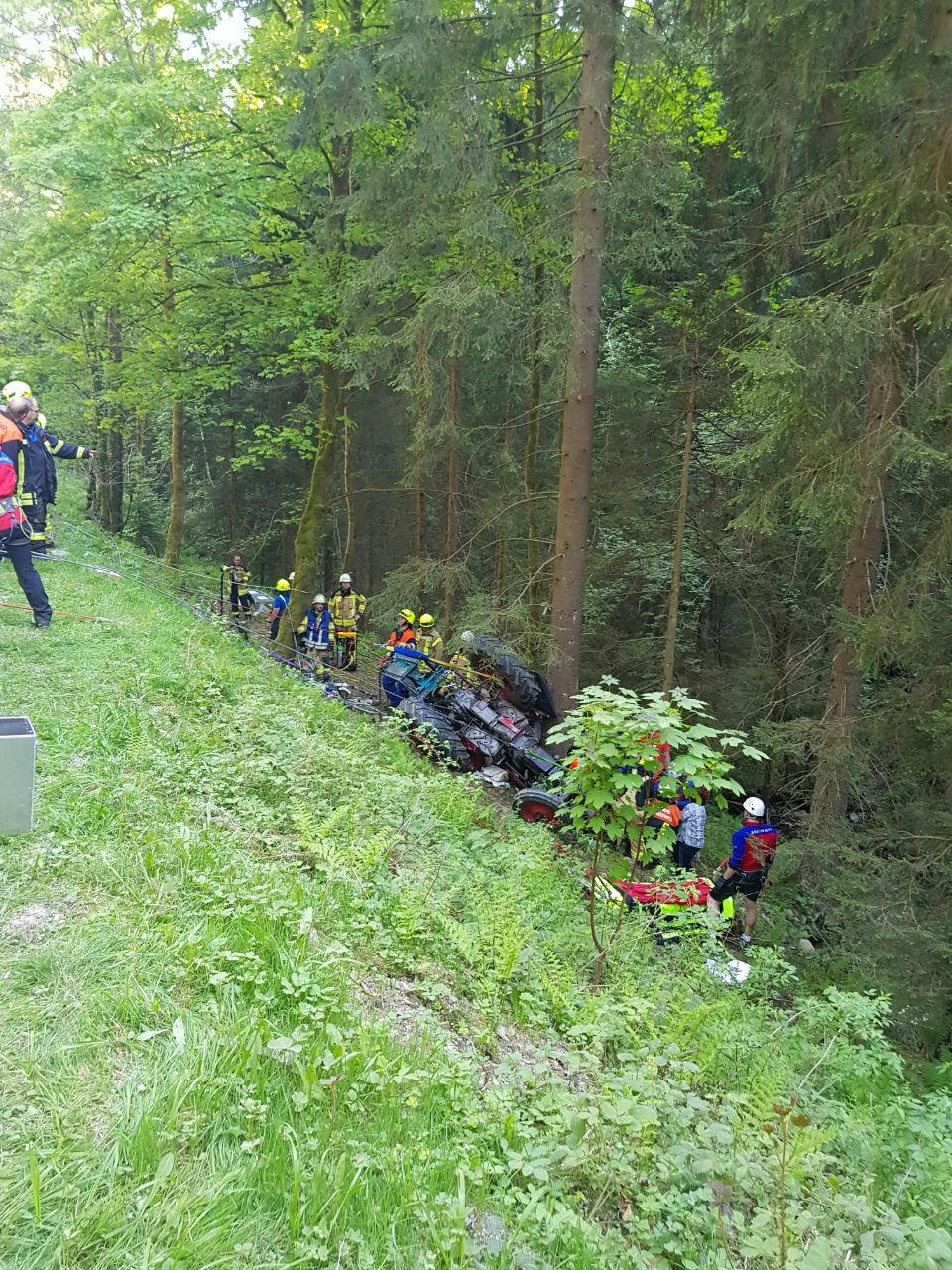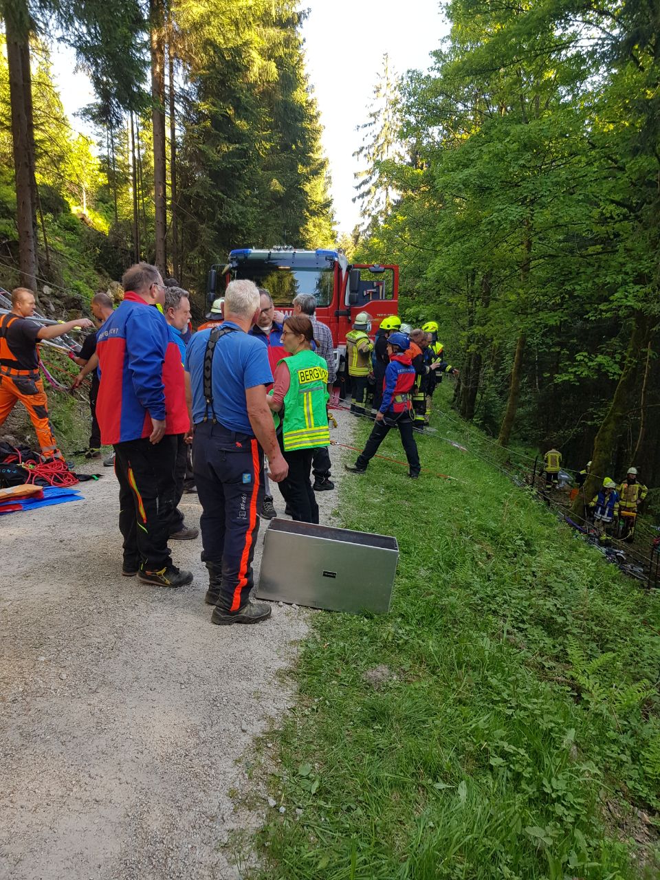 Bedingt durch die enge Fahrbahn und der Stellung der Rettungsfahrzeuge war ein Abtransport jedoch nicht ohne weiteres möglich. Man entschied sich daher, die verletzte Person per Hubschrauber ins Krankenhaus zu transportieren. Die Funktion des Zubringers übernahm hierbei die Bergwacht. Während der Arbeiten war die Polizei , KBI Winfried Prokisch, KBM Uwe Meier, das BRK und ein Notarzt zusätzlich vor Ort.