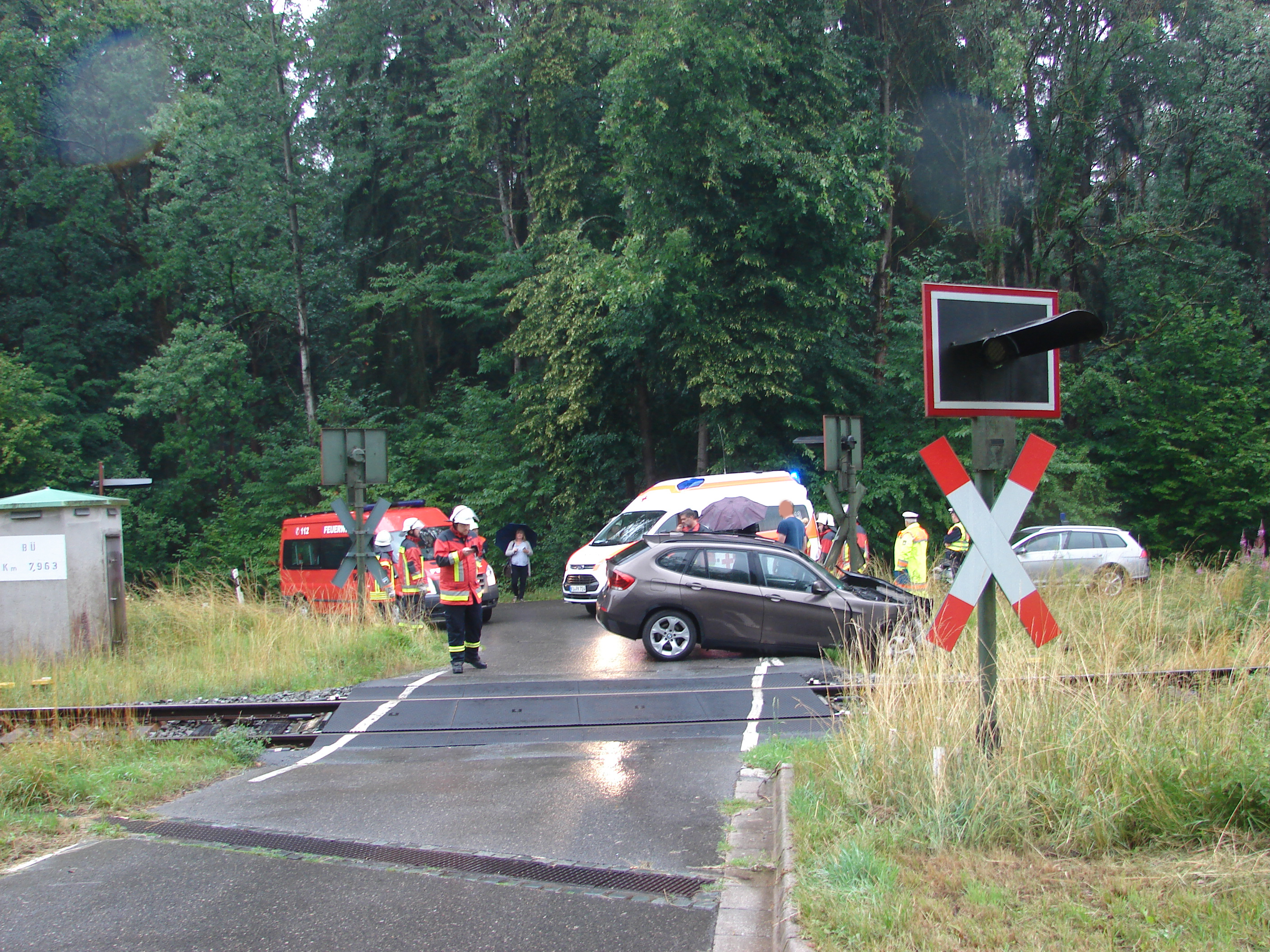 Am Montag, 16.07.2018, wurden die Feuerwehren von der Integrierten Leitstelle Bayreuth/Kulmbach gegen 7:30 Uhr mit dem Alarmstichwort: Bahnunfall auf der Strecke Schnabelwaid – Bayreuth beim Bahnübergang Hagenohe; Zug gegen Pkw, alarmiert.