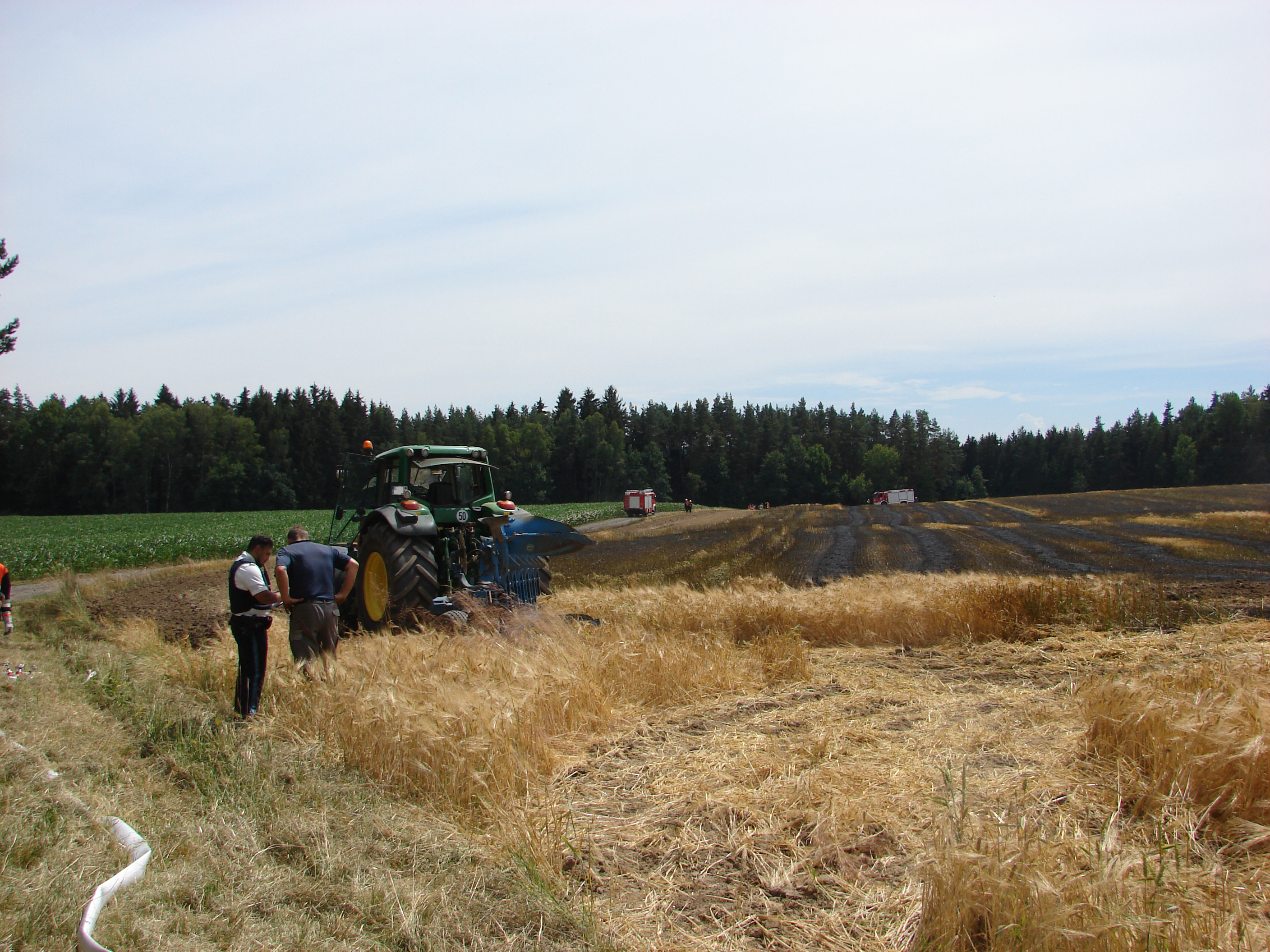 Am Mittwochnachmittag, dem 04. Juli 2018, wurden die Feuerwehren aus Gottsfeld und Creussen zu einem Flächenbrand in der Nähe von Gottsfeld alarmiert. Die Einsatzkräfte aus Gottsfeld fanden ein mehrere Hektar großes Getreidefeld vor, das großflächig brande. Ein Landwirt war mit seinem Mähdrescher dabei, das Getreide zu ernten. Hierbei kam es aus bisher nicht geklärter Ursache zum Brand des Feldes. Die Maschine konnte der Besitzer noch rechtzeitig aus dem Feld herausfahren und so in Sicherheit bringen.