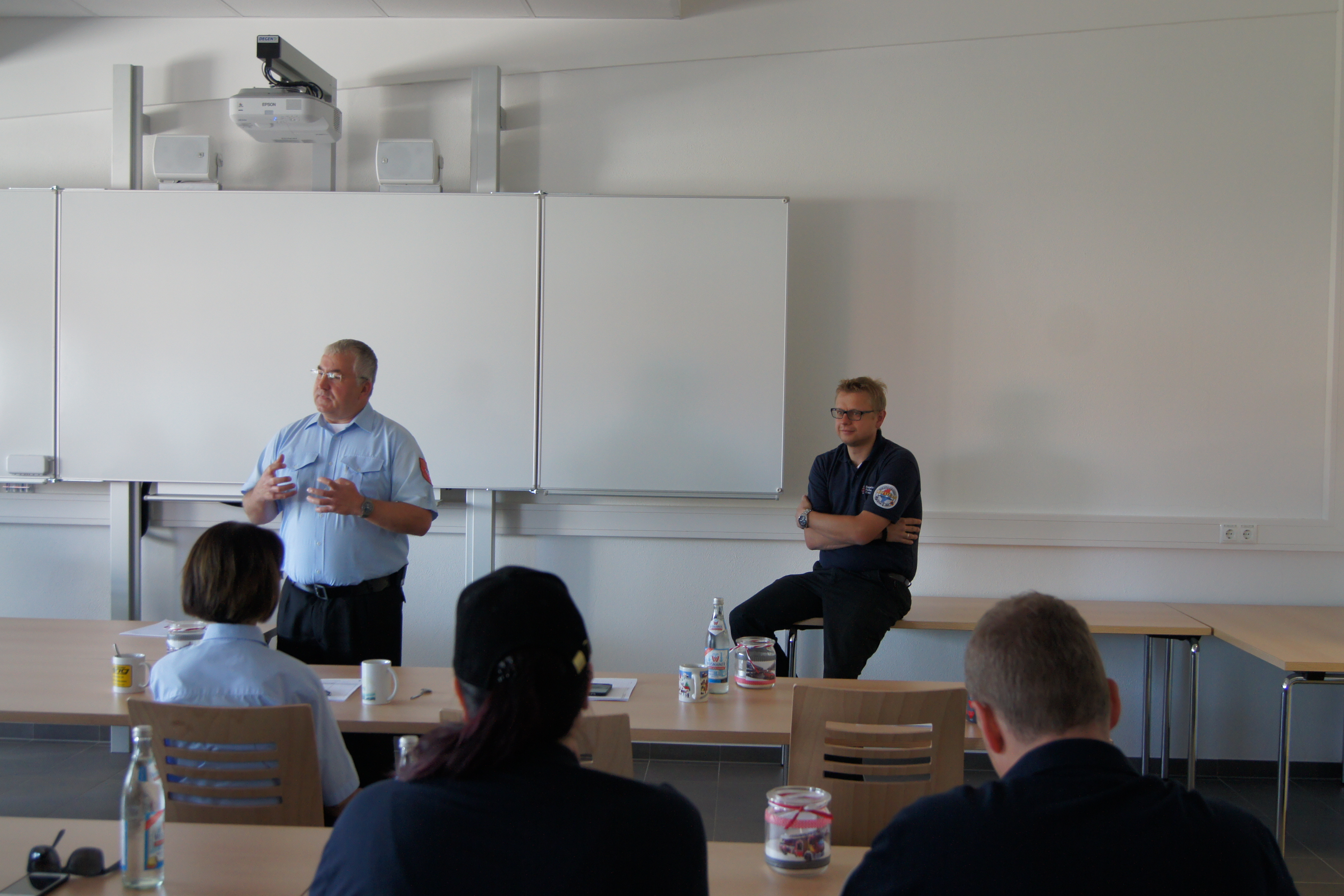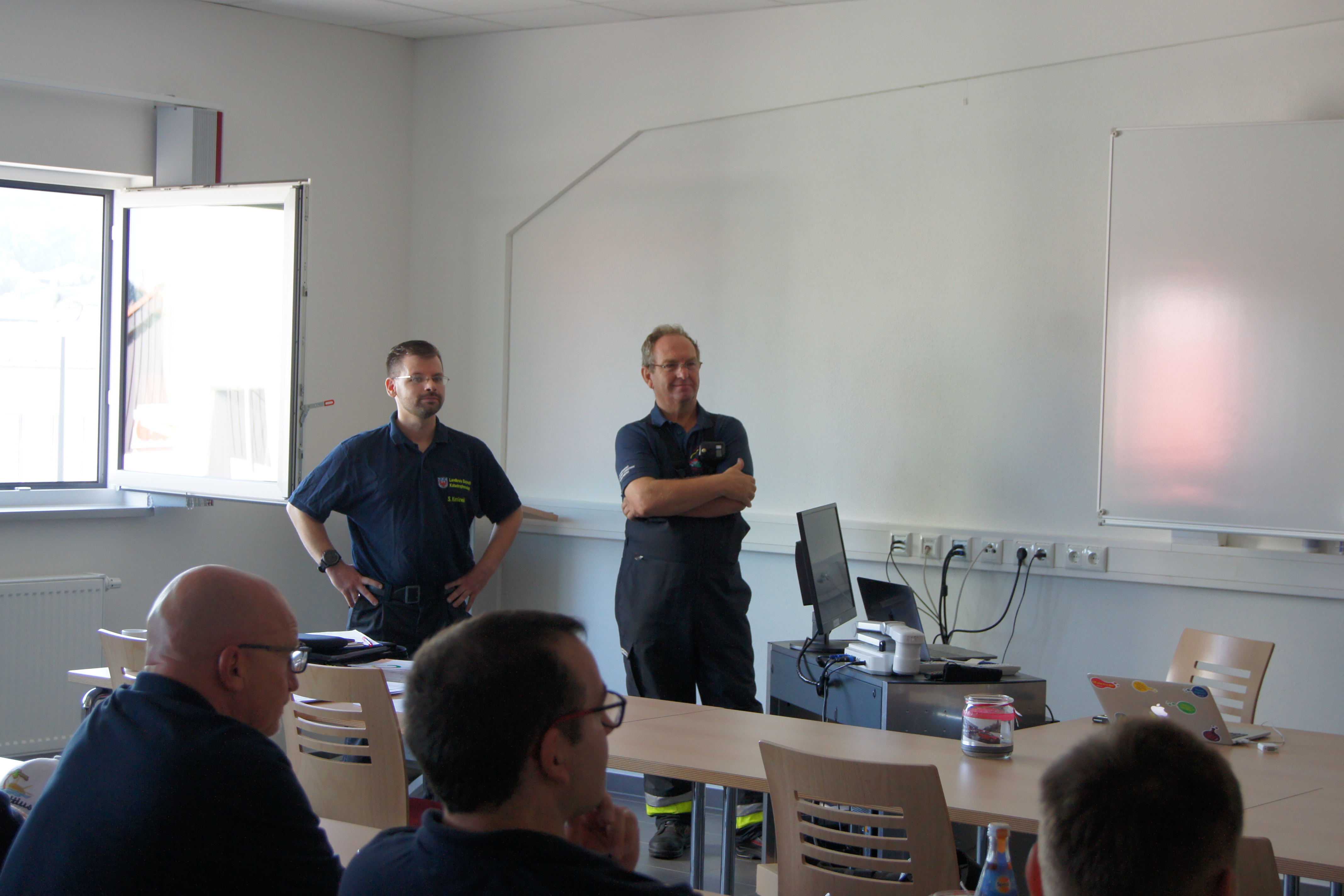 Leitstellenleiter Markus Ruckdeschel ging in einem theoretischen Teil auf die Strukturen sowohl des Ehrenamtes als auch der Integrierten Leitstelle ein und definierte die Erwartungen an die gemeinsame Veranstaltung. Informationsaustausch, Fahrzeug- und Gerätekunde, Kennenlernen von Einsatzabläufen, Verständnis für das Gegenüber, Entwickeln einer gemeinsamen Sprache und „Feuerwehr powered by Ehrenamt“. Diese Theorieeinheit von Leitstellenleiter Markus Ruckdeschel stellte sich auch für die anwesenden Feuerwehrleute interessant dar, da hier wesentliche Einblicke in die Arbeit der ILS geboten wurden. An der Ausbildung beteiligte Feuerwehrleute sollen daher auch weiterhin die Möglichkeit haben, an diesem Ausbildungsabschnitt teilzunehmen.