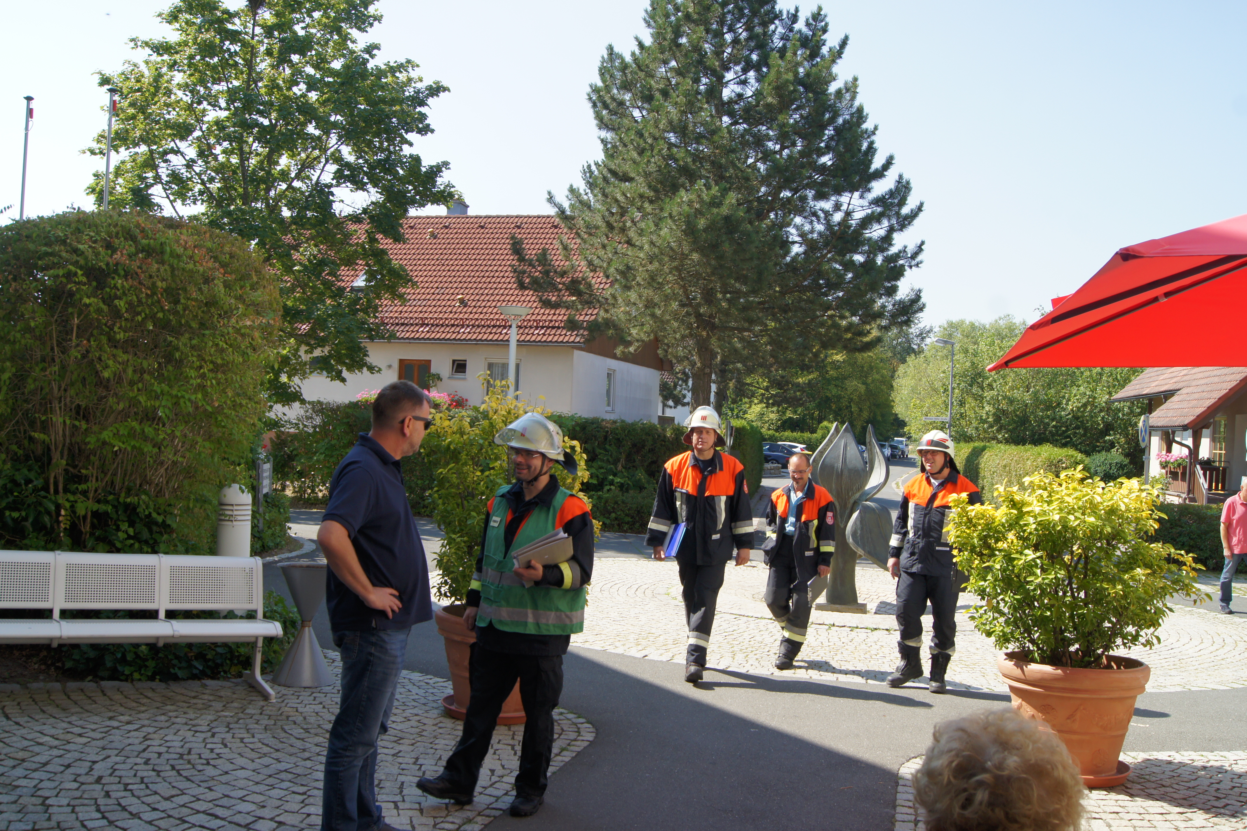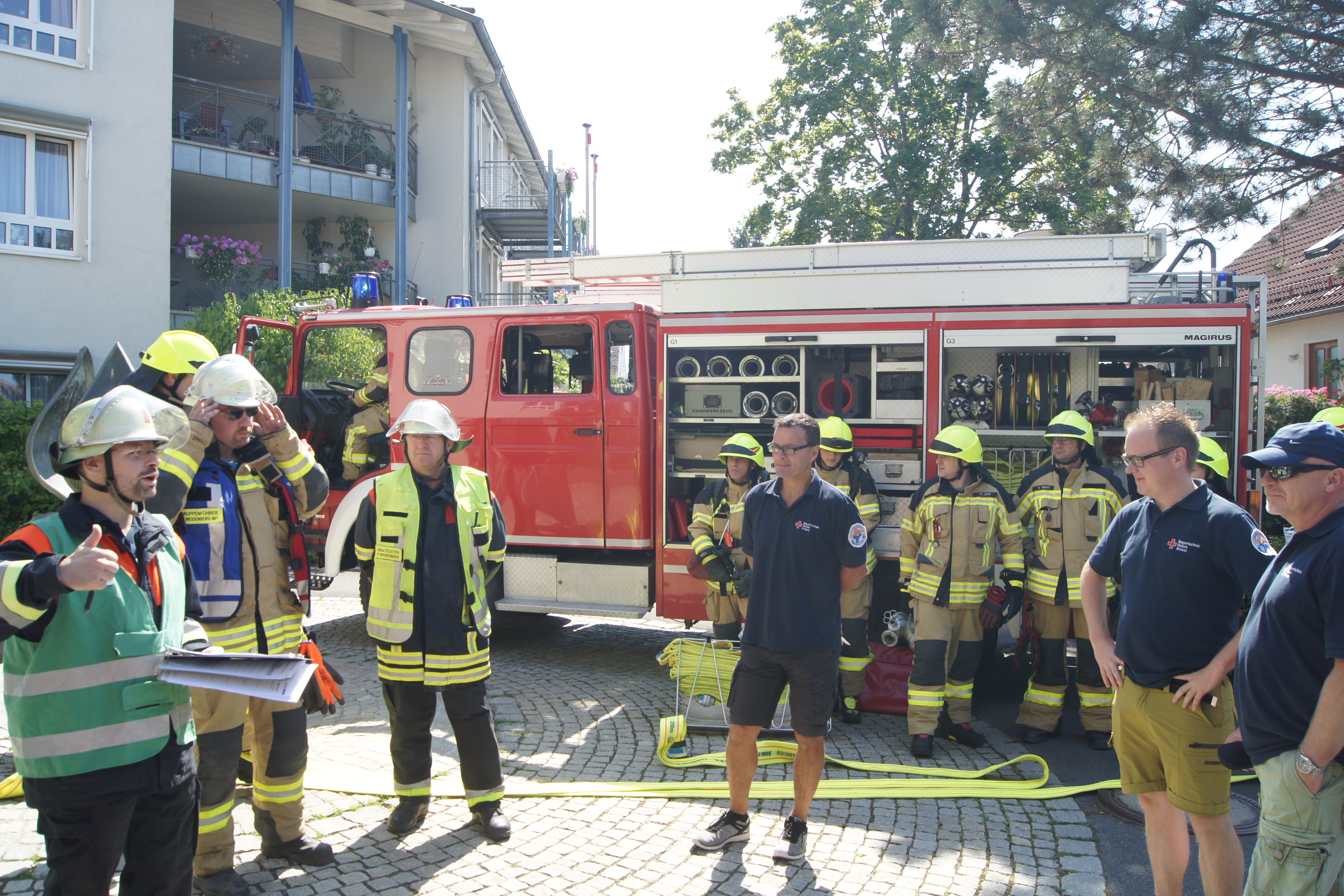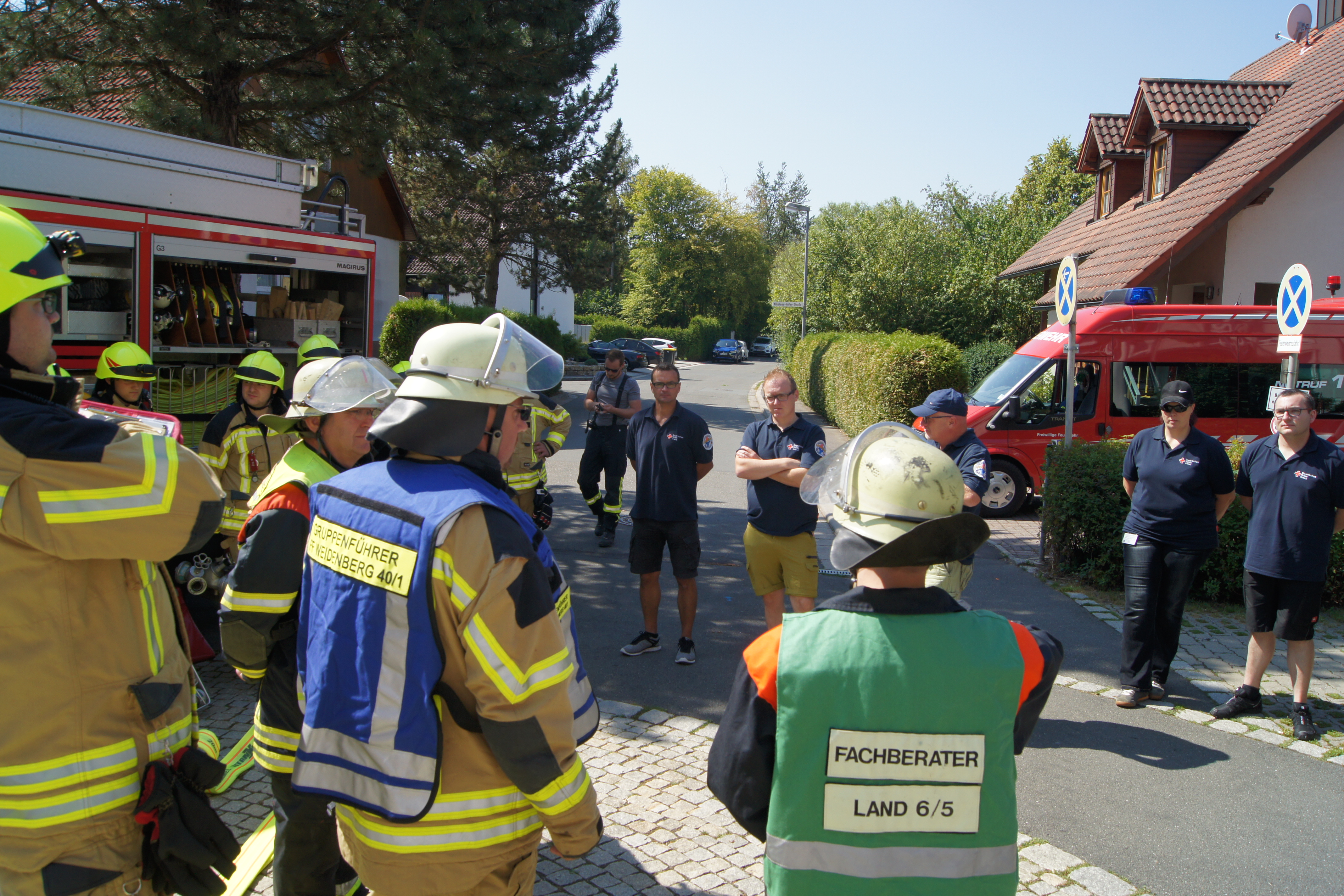 Bei der ersten Übung im AWO-Seniorenheim war für die ILS-Teilnehmer besonders aufschlussreich, wie schnell sich eine zunächst vermeintlich harmlose Lage „BMA-Alarm“ in ein komplexes Szenario entwickeln kann und mit welchen umfangreichen Fragestellungen und Problemen der Einsatzleiter vor Ort binnen kürzester Zeit konfrontiert wird (z.B. Einsatzabschnittsbildung, Raumordnung, Bereitstellungsräume, Kräfteeinteilung …). Besonders interessant zu sehen war für die Teilnehmer, dass der Kommandant der Feuerwehr Weidenberg mit einer speziellen Bereit- und Aufstellung arbeitet, nach der stets bei einem BMA-Alarm gearbeitet wird. Auch die Aufstellung der Drehleiter war sehr lehrreich.