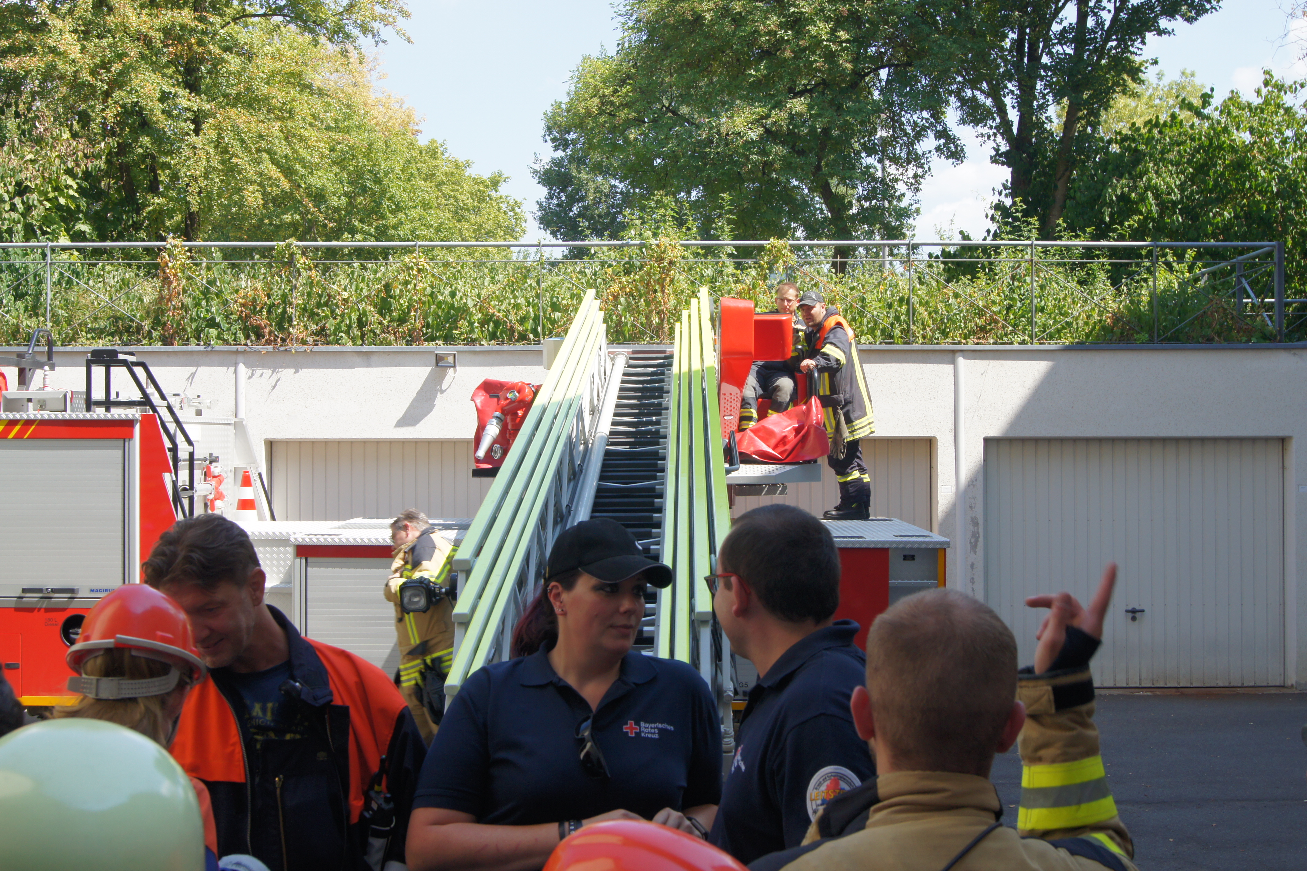 Bei der zweiten Übung „Höhenunfall in einem Betonwerk“ wurde ein ILS-Teilnehmer zum Einsatzleiter ernannt, der sich mit Unterstützung von KBI Kerstin Schmidt erfolgreich durch das Szenario gearbeitet hat. Hier hat sich gezeigt, dass das aktive Mitmachen für die ILS’ler besonders interessant ist. Dies soll auch künftig beibehalten werden. Schön war auch, dass sich vor Ort sehr viele Gespräche zwischen den Beteiligten ergeben haben und ein reger Austausch untereinander stattfand.