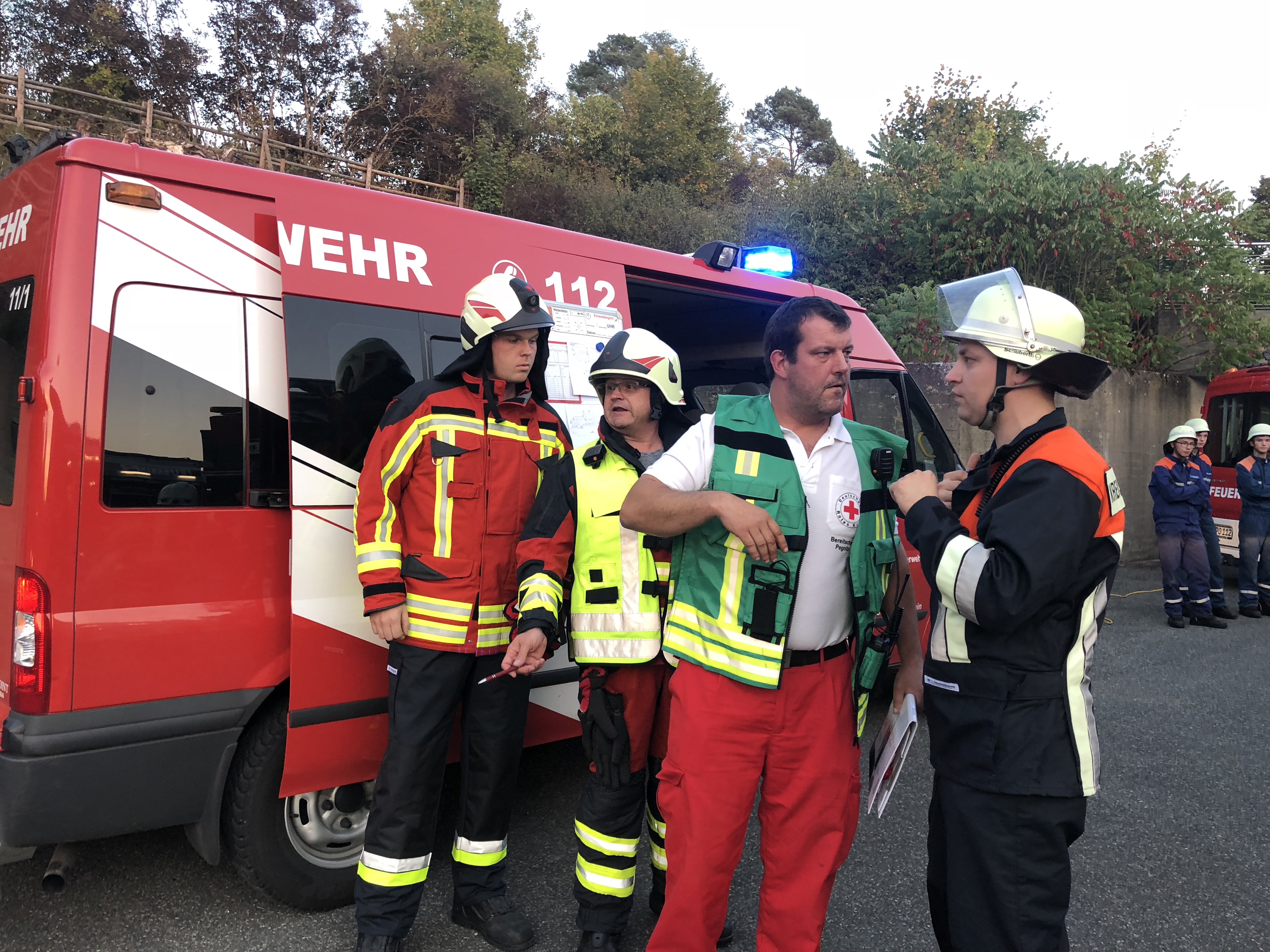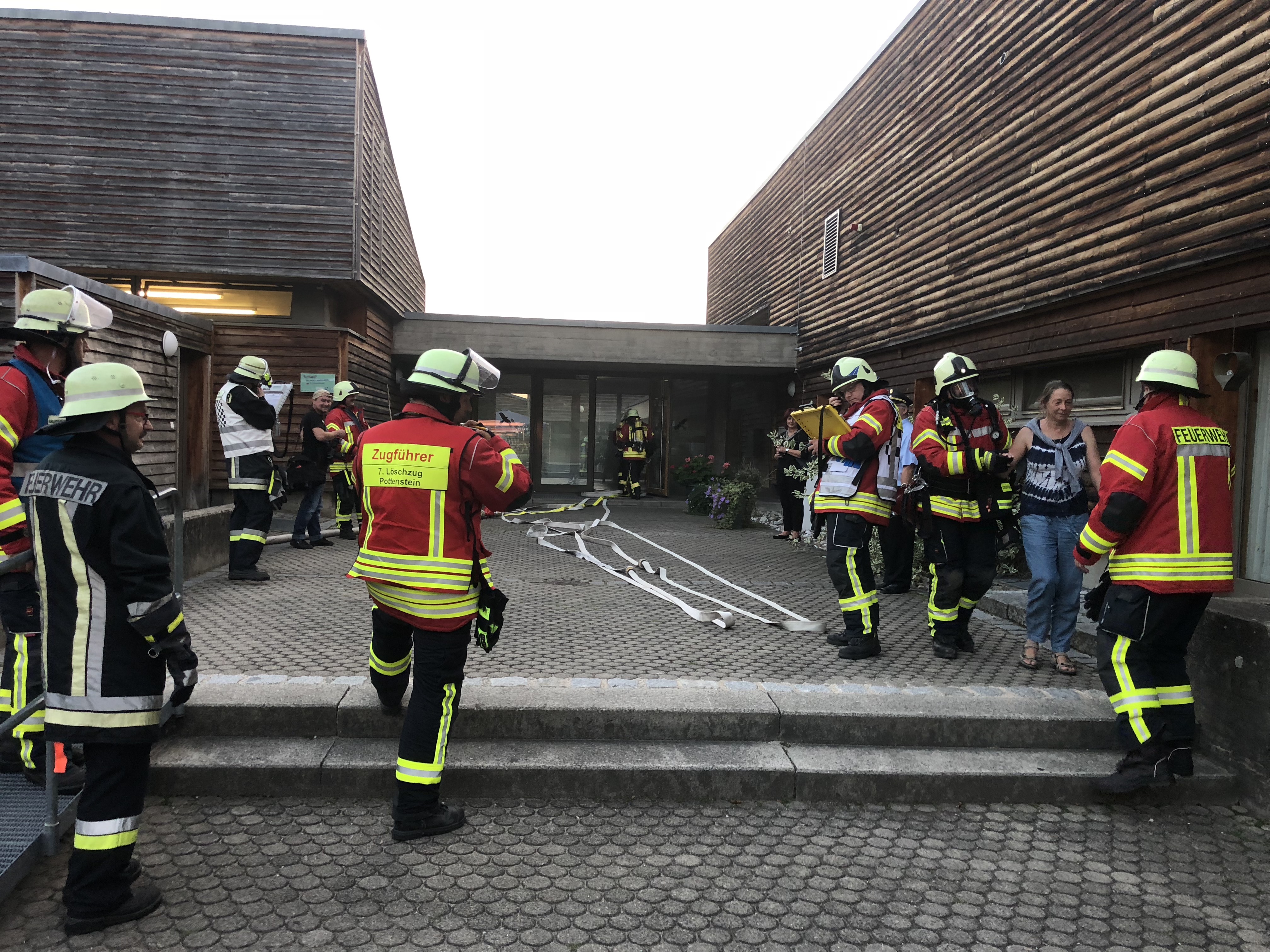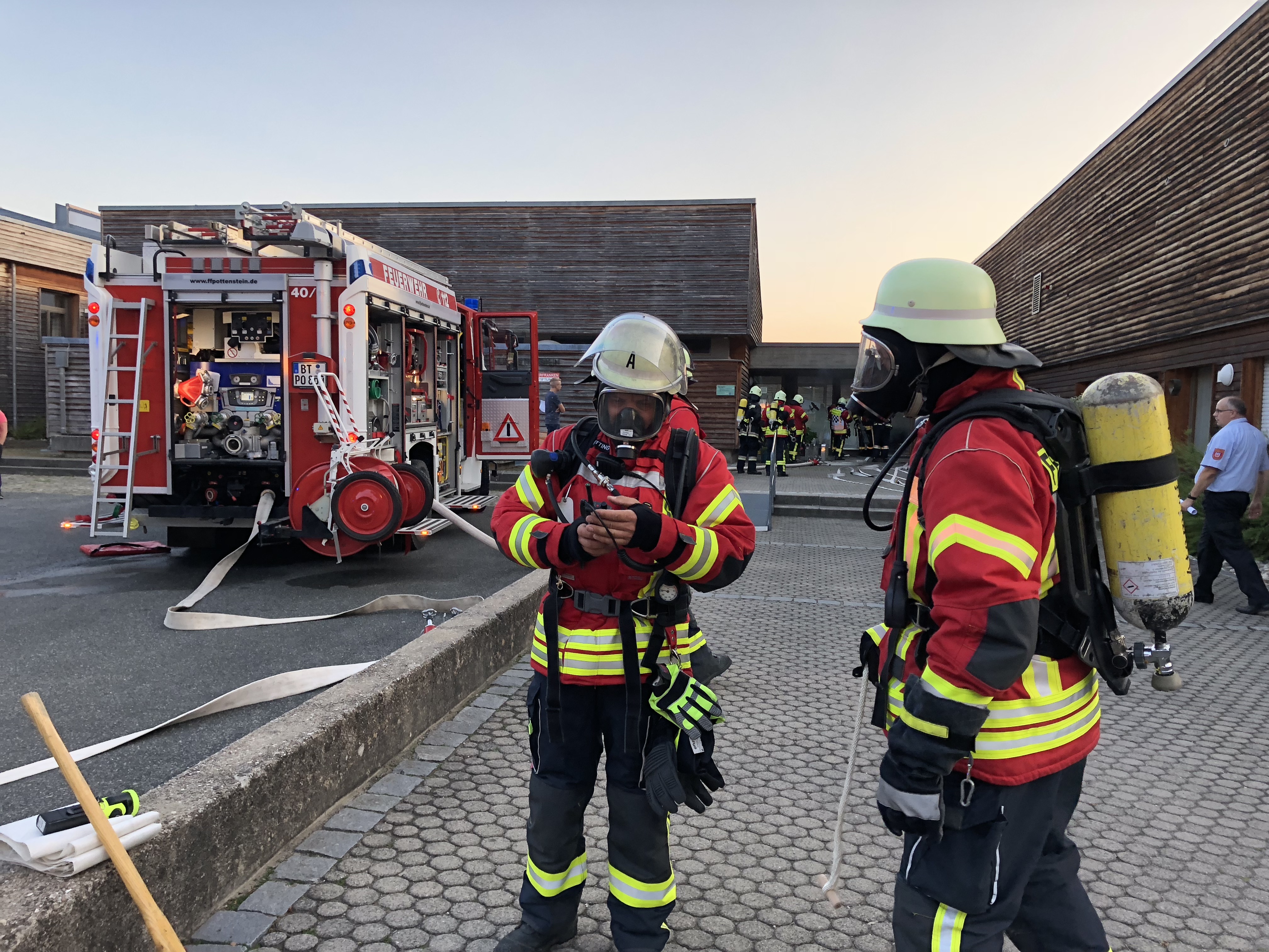 Am Mittwochabend (19. September 2018) fand in Pottenstein die Großübung der Inspektion III zur diesjährigen Feuerwehraktionswoche statt. Als Trainingsobjekt diente das Schullandheim auf dem Burgberg, das rund 120 Beherbergungsplätze umfasst. Die Planungen sahen vor, dass infolge eines technischen Defekts ein Brand im Heizungsraum ausbricht und sich im Folgenden auf weite Teile des Untergeschosses ausbreitet. Starker Rauch dringt durch die Treppen- und Eingangshalle, den Speisesaal sowie den Küchenbereich. Obwohl sich viele der Gäste bei Eintreffen der ersten Feuerwehrleute aus Pottenstein, die durch die Brandmeldeanlage alarmiert wurden, bereits ins Freie retten konnten, werden noch weitere Personen im Gebäude vermisst.