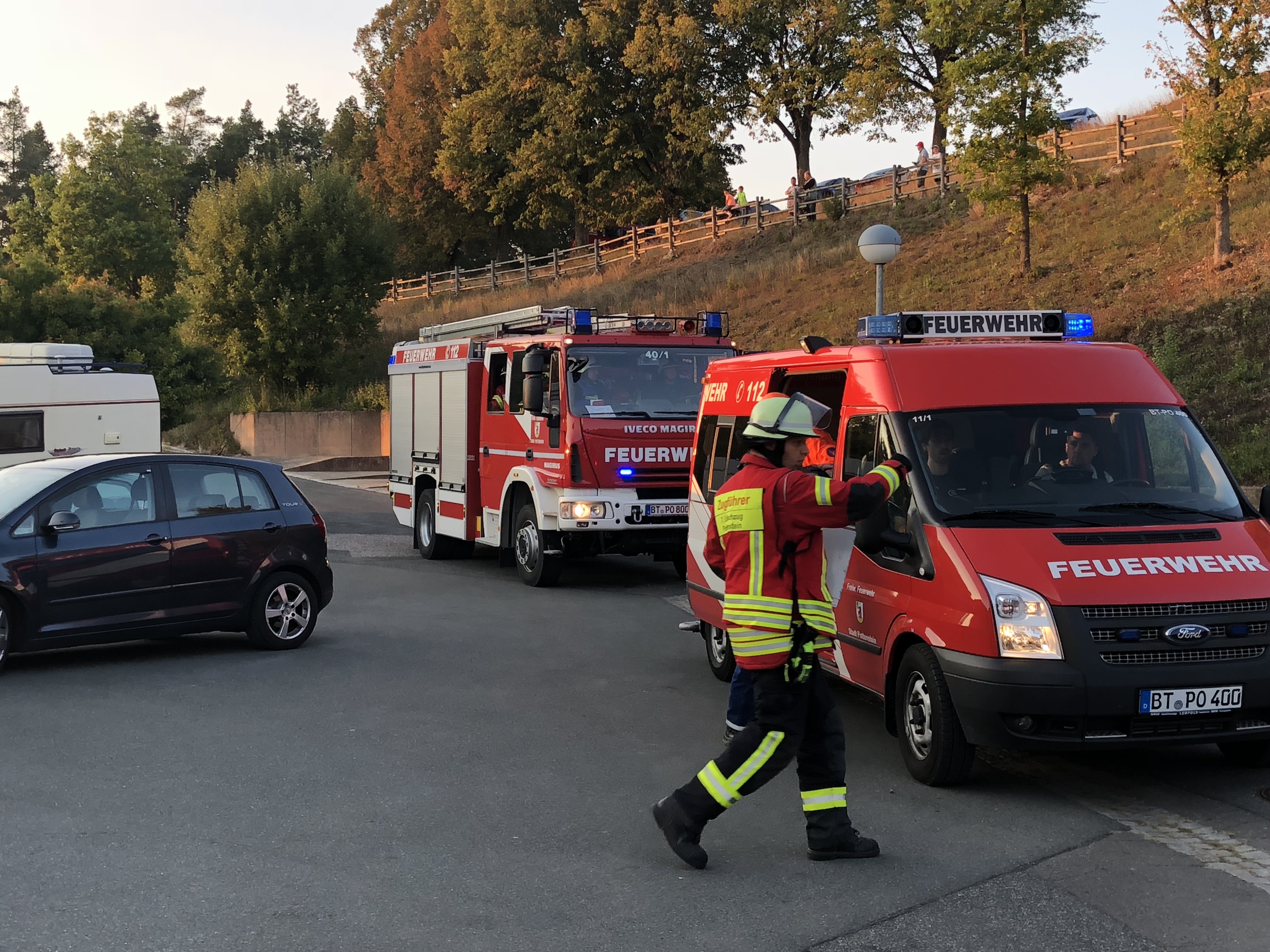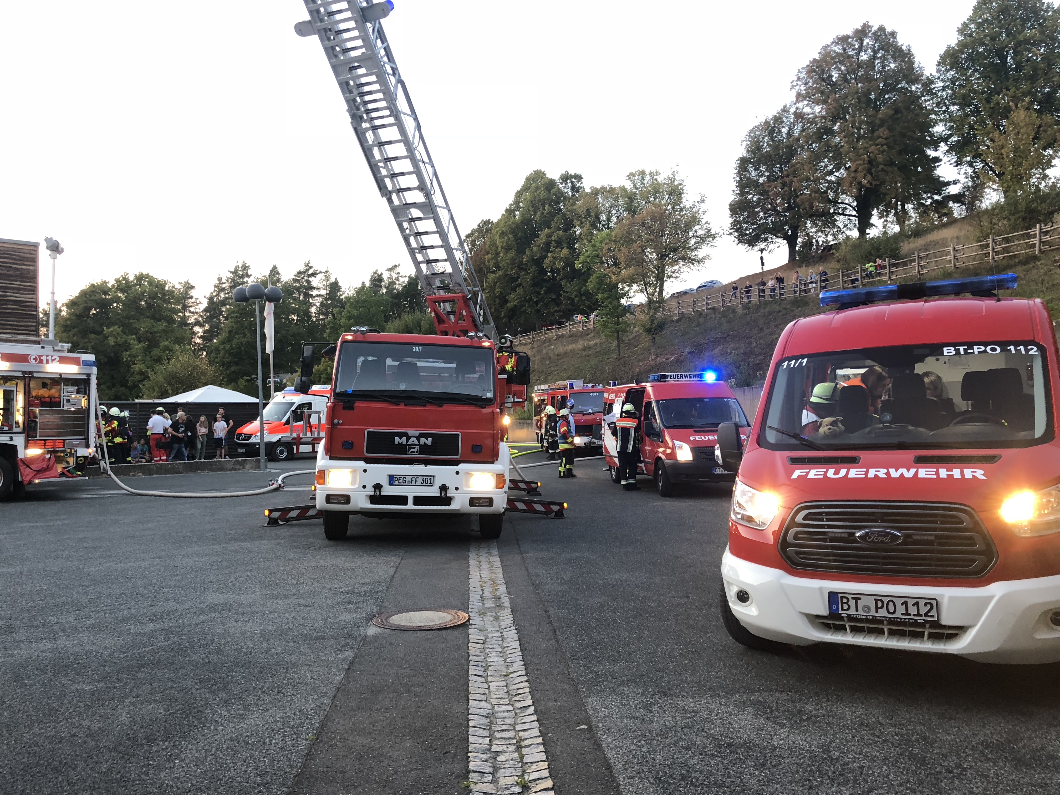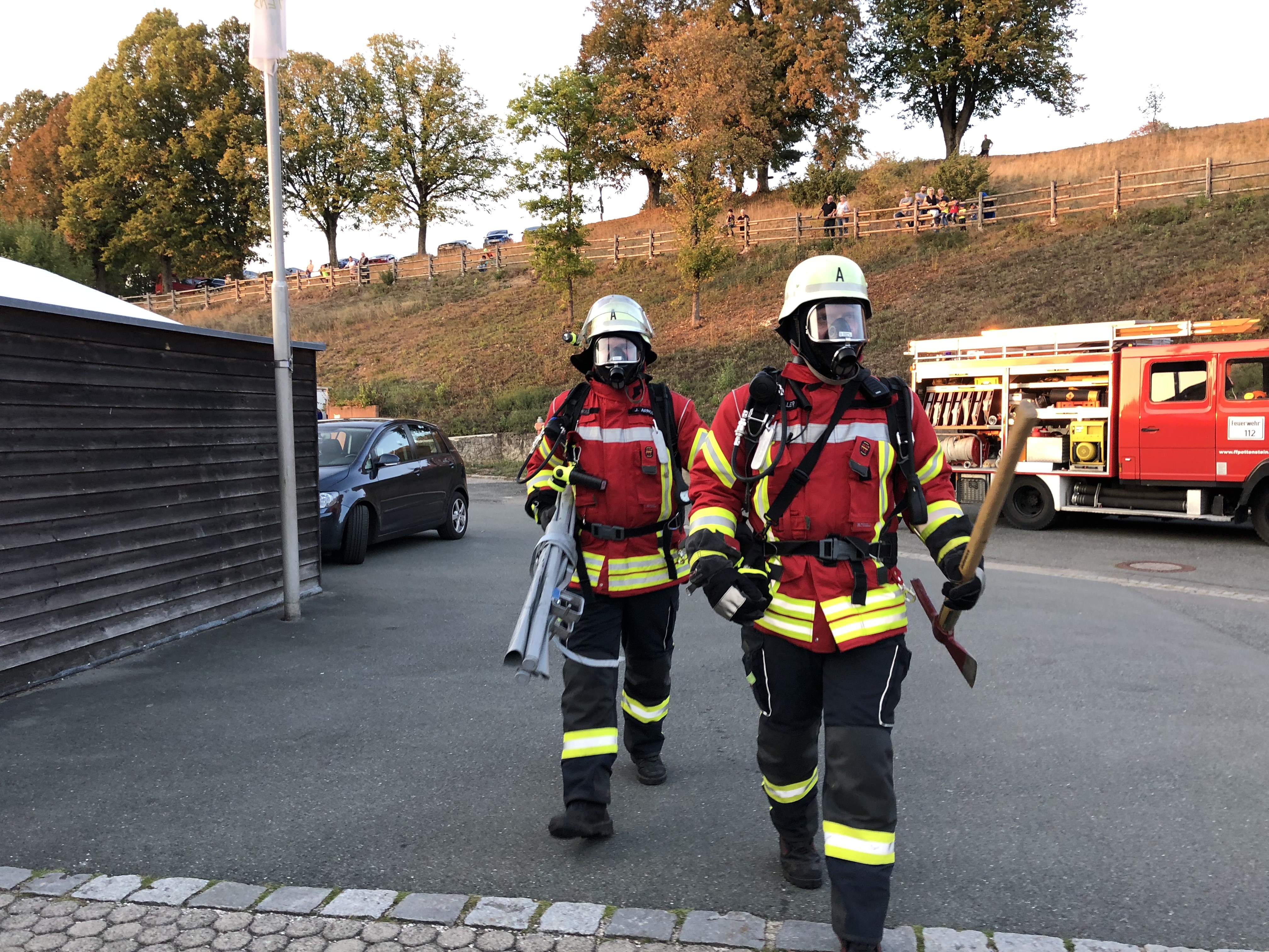 Am Mittwochabend (19. September 2018) fand in Pottenstein die Großübung der Inspektion III zur diesjährigen Feuerwehraktionswoche statt. Als Trainingsobjekt diente das Schullandheim auf dem Burgberg, das rund 120 Beherbergungsplätze umfasst. Die Planungen sahen vor, dass infolge eines technischen Defekts ein Brand im Heizungsraum ausbricht und sich im Folgenden auf weite Teile des Untergeschosses ausbreitet. Starker Rauch dringt durch die Treppen- und Eingangshalle, den Speisesaal sowie den Küchenbereich. Obwohl sich viele der Gäste bei Eintreffen der ersten Feuerwehrleute aus Pottenstein, die durch die Brandmeldeanlage alarmiert wurden, bereits ins Freie retten konnten, werden noch weitere Personen im Gebäude vermisst.