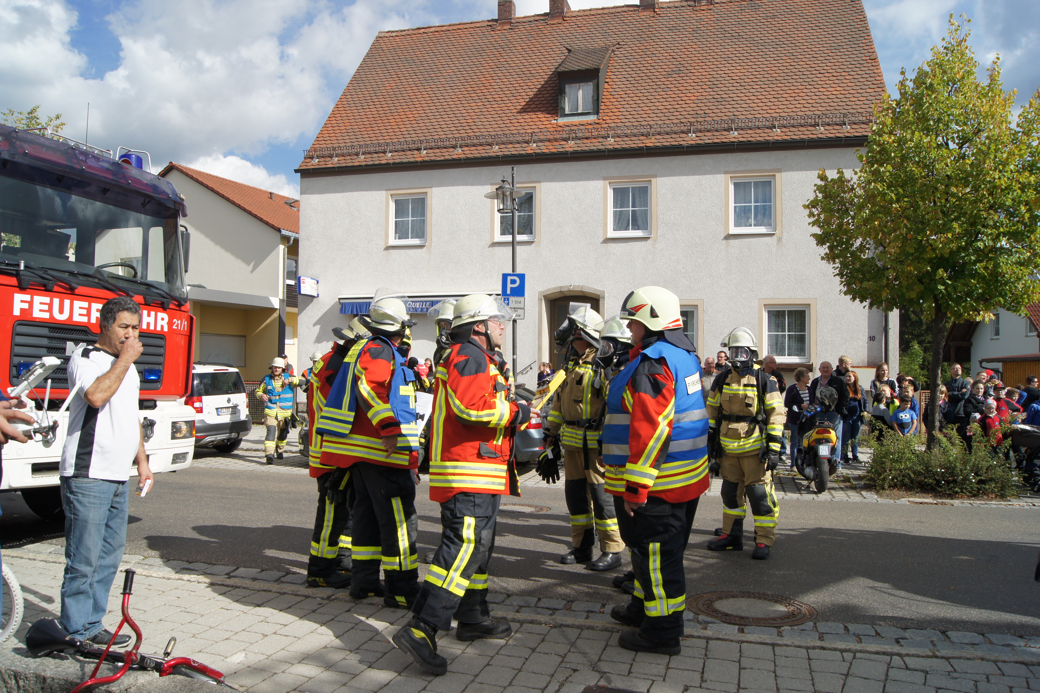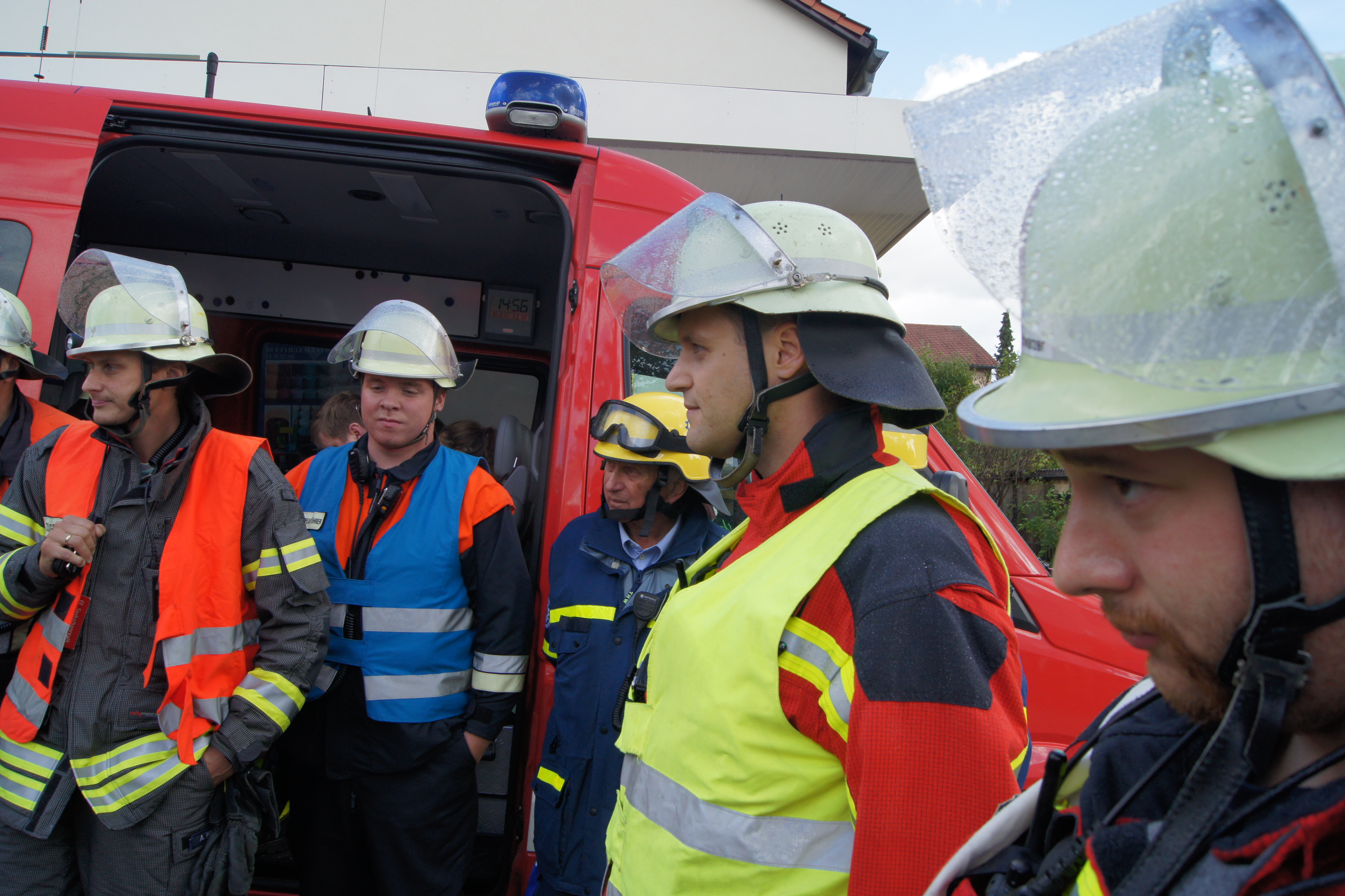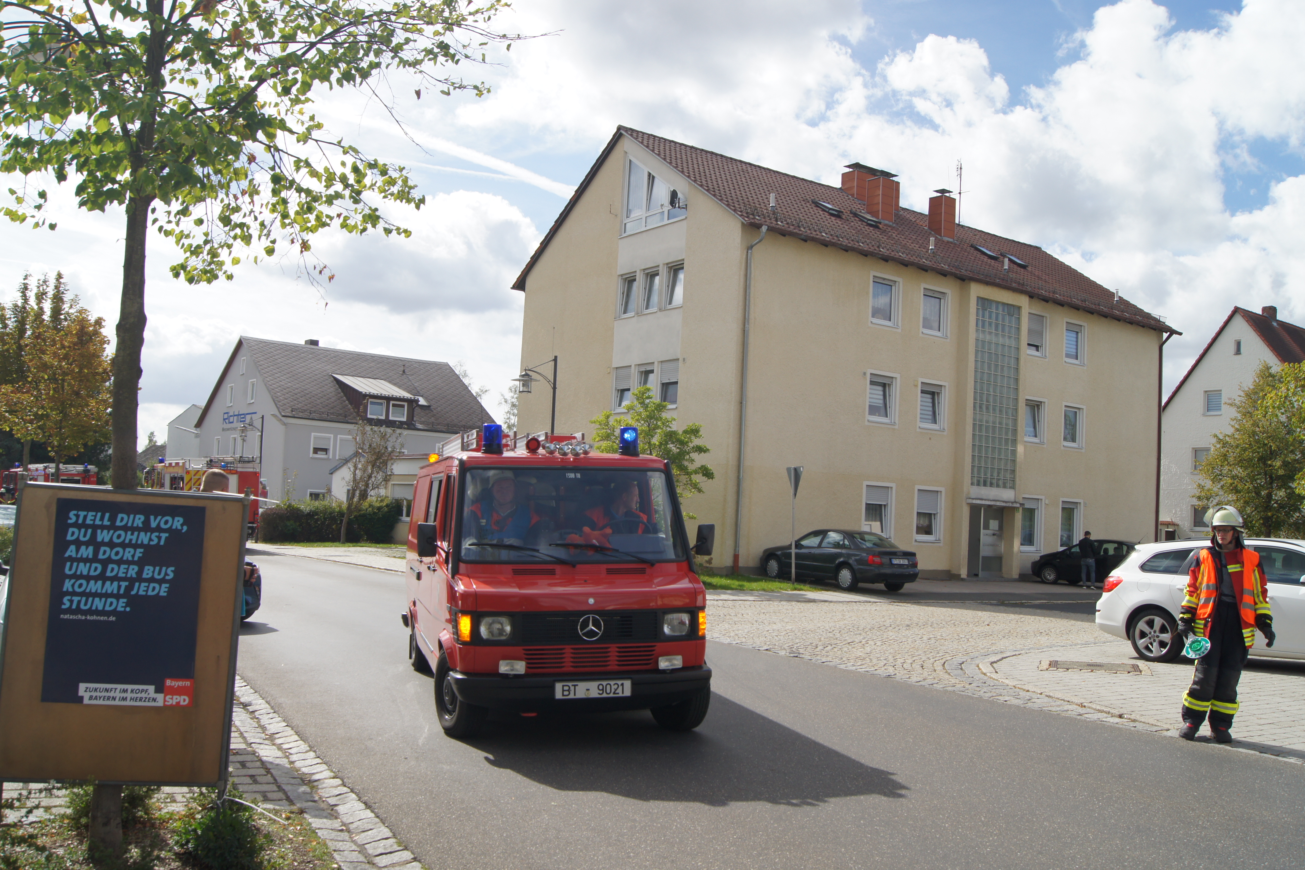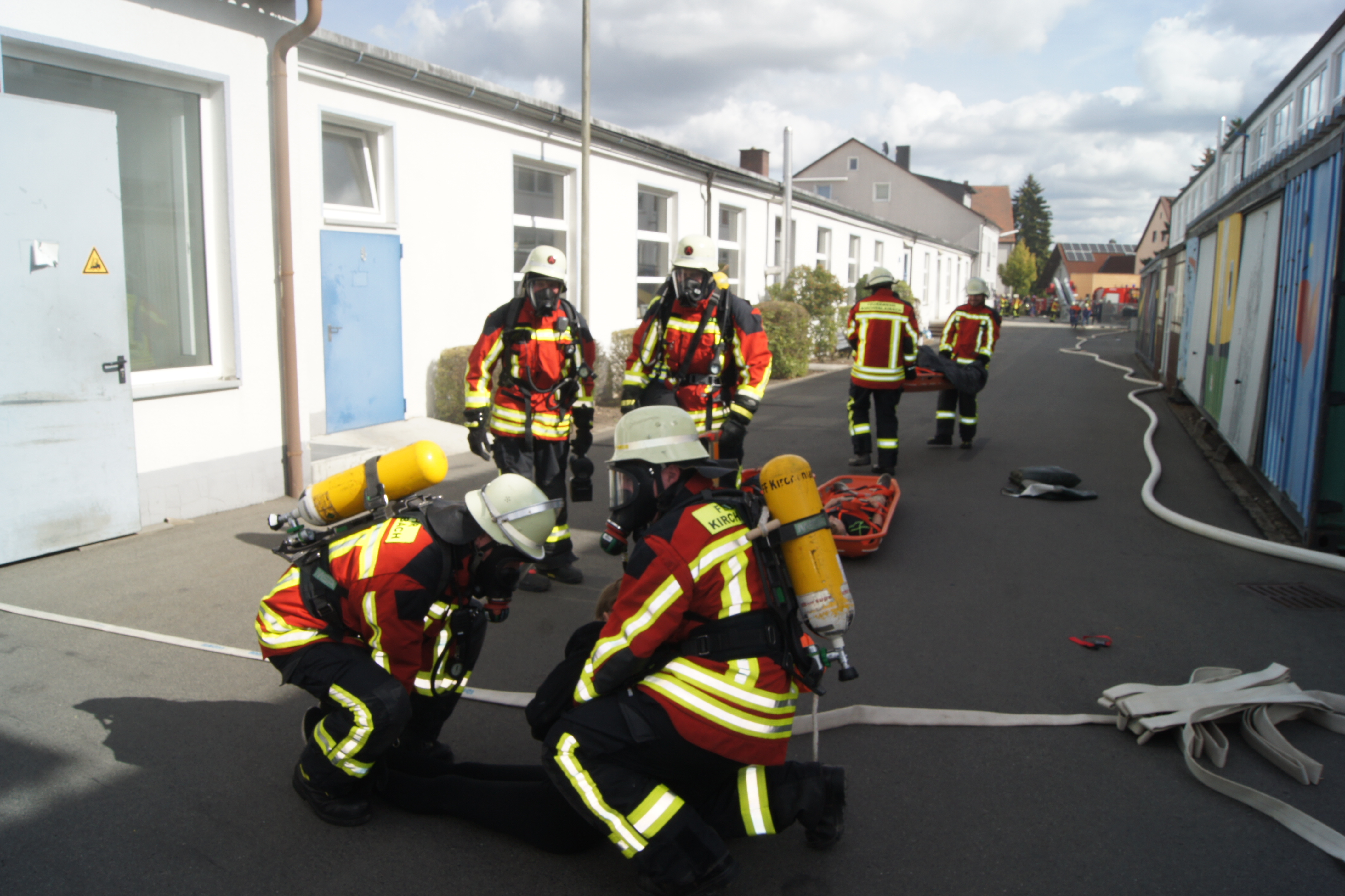 Die Übung im Rahmen der Feuerwehraktionswoche fand am Samstag Nachmittag in der Inspektion IV in Speichersdorf statt. Dort war man bei der Firma Friedrich Richter Meßwerkzeugfabrik GmbH & Co. KG in der Hauptstraße davon ausgegangen, dass es zu einem Unfall in der Färberei gekommen ist, in dessen Zuge es zu einem Feuer gekommen ist. Mehrere Mitarbeiter seien vermisst, das Feuer habe sich schnell auf weitere Teile der Firma ausgebreitet, zwei Hallen stünden in Vollbrand. Vermisst würden ca.5 Mitarbeiter, Chemikalien seien in größeren Mengen vorhanden, so das anspruchsvolle Szenario, das die Feuerwehren Speichersdorf, Kirchenlaibach, Weidenberg, Seybothenreuth, Kemnath, Tressau, Windischenlaibach, Göppmannsbühl, Plössen, Zeulenreuth, der Löschzug Frankenpfalz sowie die Fachberater des THW Pegnitz und die zuständigen Feuerwehrführungskräfte abzuarbeiten hatten. Landrat Hermann Hübner und Bürgermeister Manfred Porsch machten sich zusammen mit Kreisbrandrat Hermann Schreck und Kreisbrandinspektorin Kerstin Schmidt vor Ort ein Bild von der Lage. Die Einsatzleitung hatte Speichersdorfs Kommandant Volker Hammon inne, der von allen Seiten Lob für die Einsatzabarbeitung erhielt.