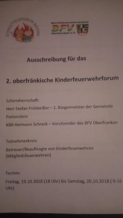 Nach dem erfolgreichen Kinderfeuerwehrforum 2016 in Altenkunstadt fand diesmal ein zweitägiges Seminar in der Jugendherberge Pottenstein für die oberfränkischen Kinderfeuerwehrbetreuer statt.