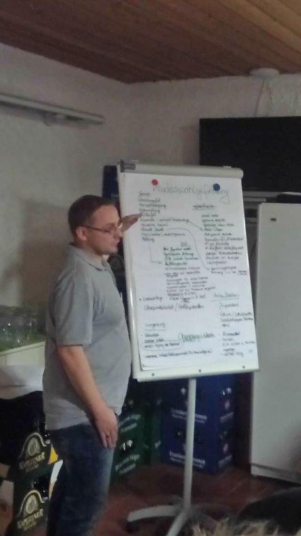 Nach dieser kurzen und informativen Begrüßung wurden die Betreuer spielerisch in Gruppen eingeteilt und es kam zur ersten Aktion – dem „Worldcafe“ dabei wurden die Themen Kindeswohlgefährdung, Gruppenstunde , Ausflüge und Übertritt Kinderfeuerwehr zur Jugendfeuerwehr behandelt. Die Männer und Frauen befassten sich sehr interessiert mit diesen Themen und am Ende kam ein buntes Potpourri an Ideen und Anregungen heraus, sowie fand unter den Leuten eine sehr anregende Diskussion statt!