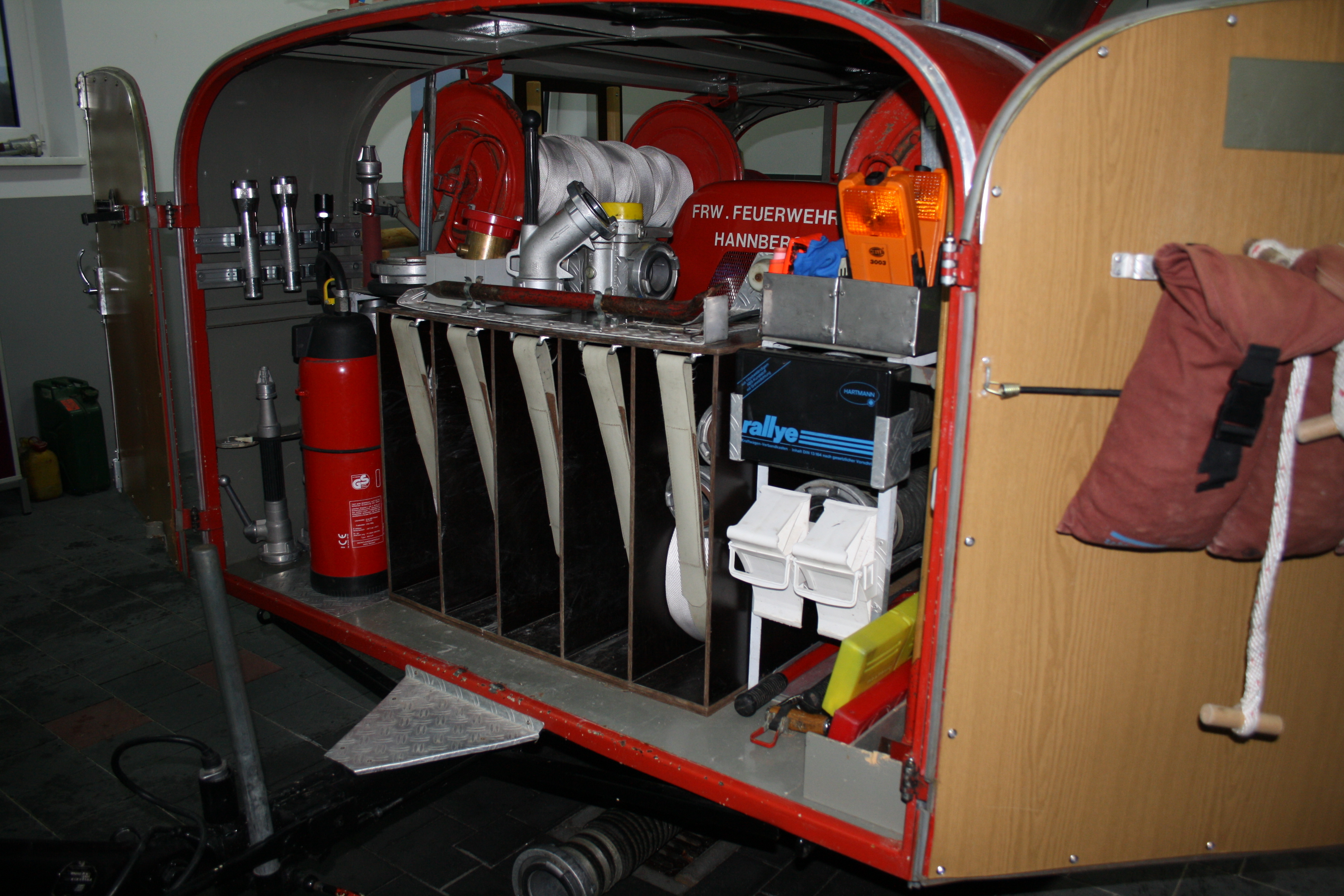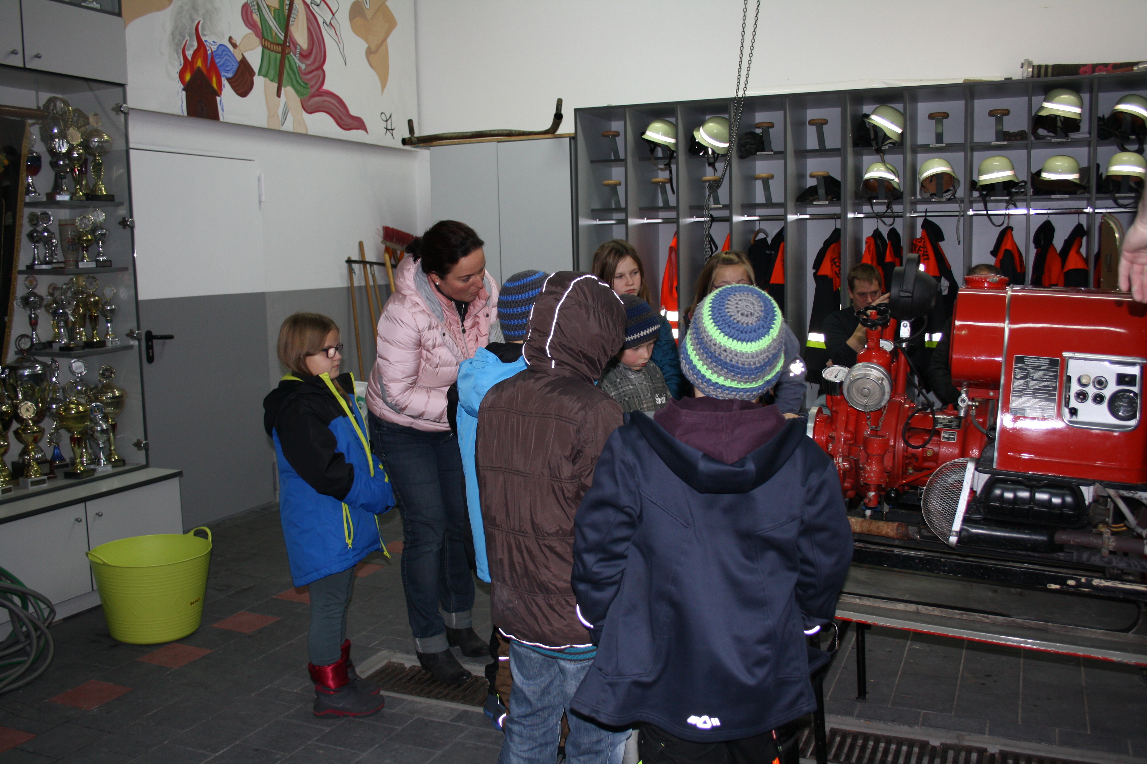 Die Kinder hatten sichtlich Freude und Spaß als die beiden Kommandanten mit ihnen zusammen den TSA Anhänger erkundeten. Natürlich durften die Kinder mit einem D-Strahlrohr den Befehl „Wasser marsch“ geben.