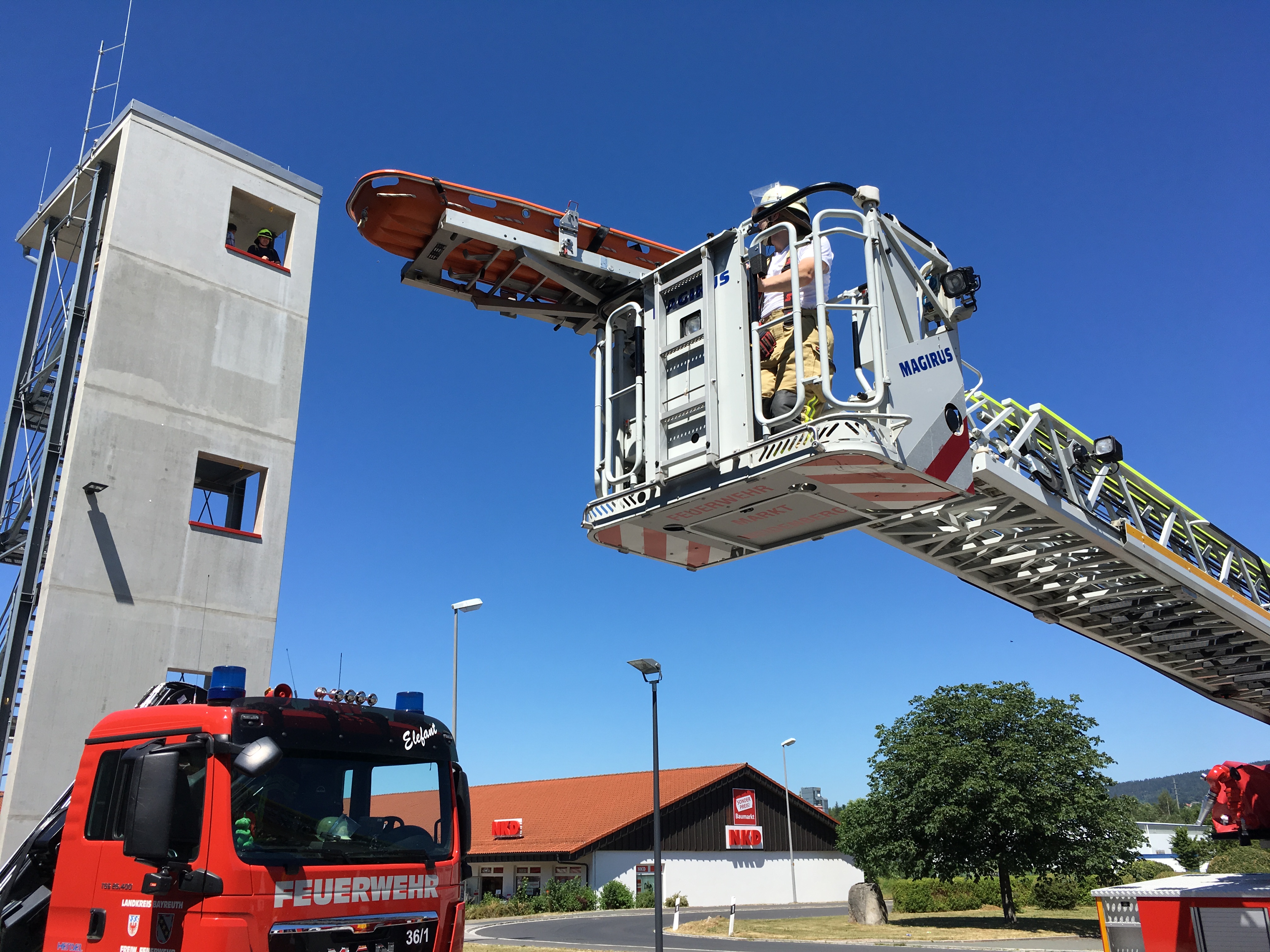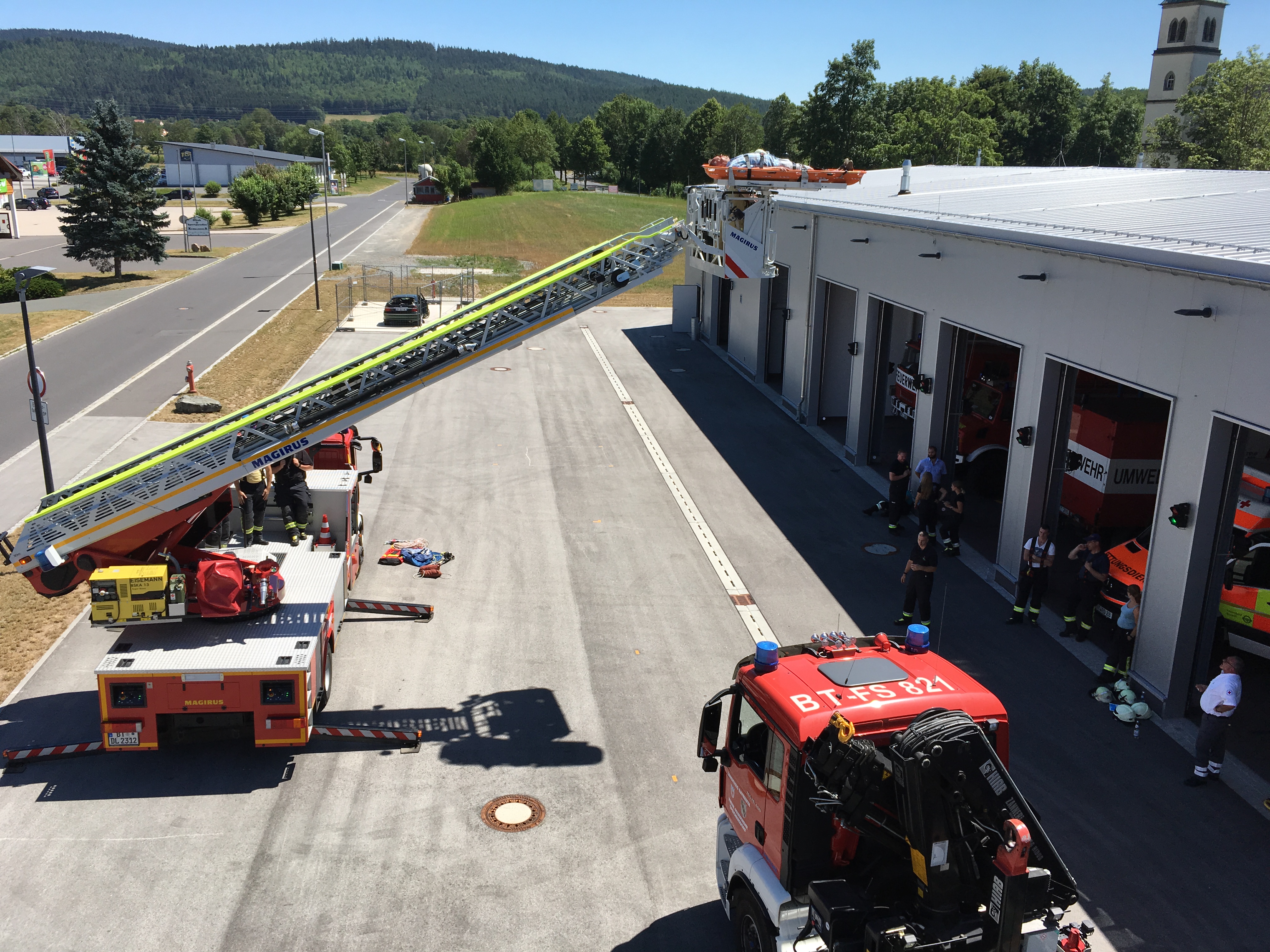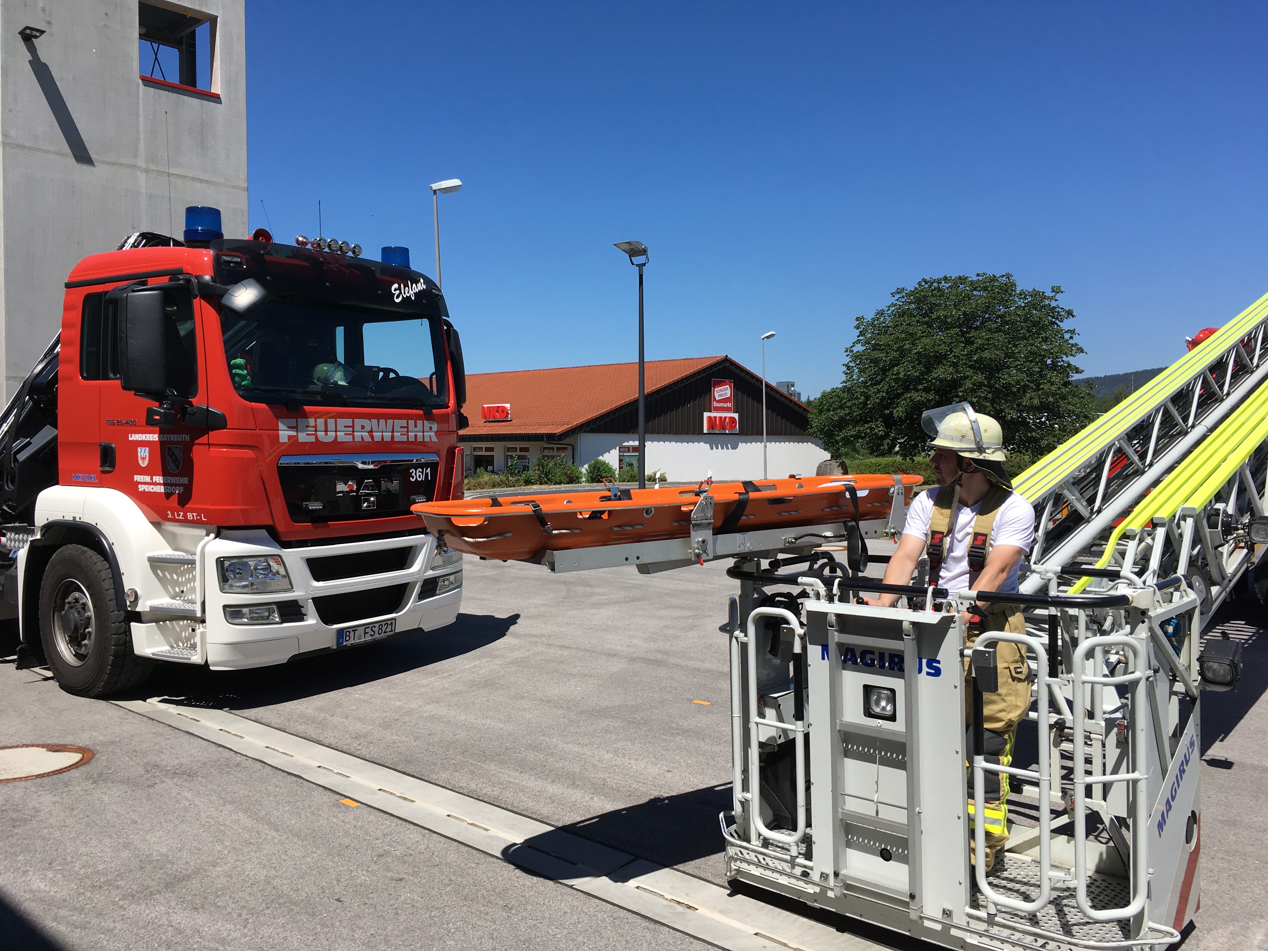 Herzlicher Dank gilt der Feuerwehr Weidenberg unter der Leitung von 1.Kdt. Heinrich Schmidt, die mit Spezialgerät den Lehrgang unterstützt und die Räumlichkeiten, inkl. Bewirtung zur Verfügung gestellt haben. Weiterer Dank gilt dem Kreisfeuerwehrarzt Dr. Stefan Eigl, der die Ausbildungsinspektion schon jahrelang mit seinem Fachwissen unterstützt und Ausbildungsveranstaltungen mit durchführt, auch der FF Speichersdorf gilt Dank., die mit dem Wechsellader Kran den Ausbildungstag unterstützen und dem BRK Bayreuth, welche mit dem Schwerlast RTW vor Ort waren.
