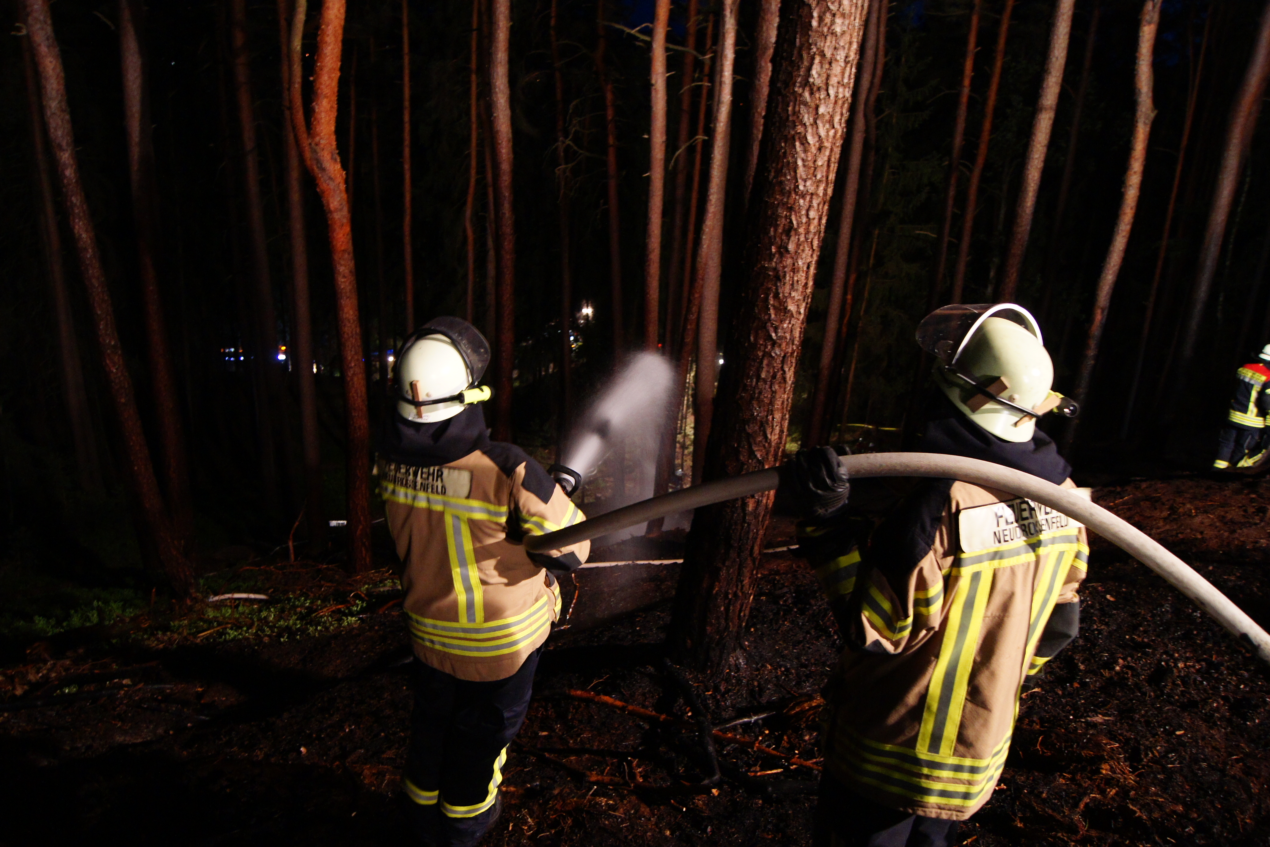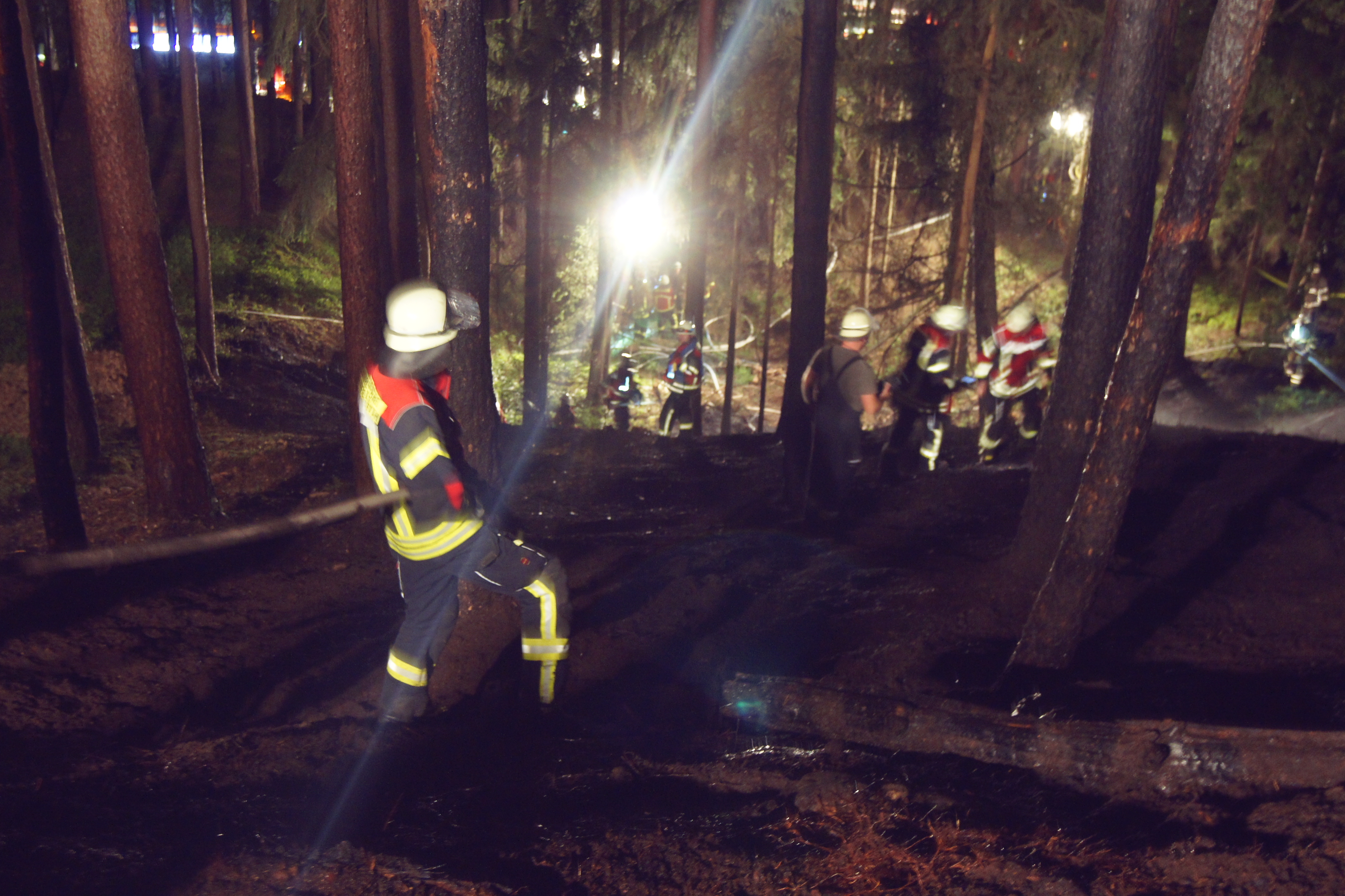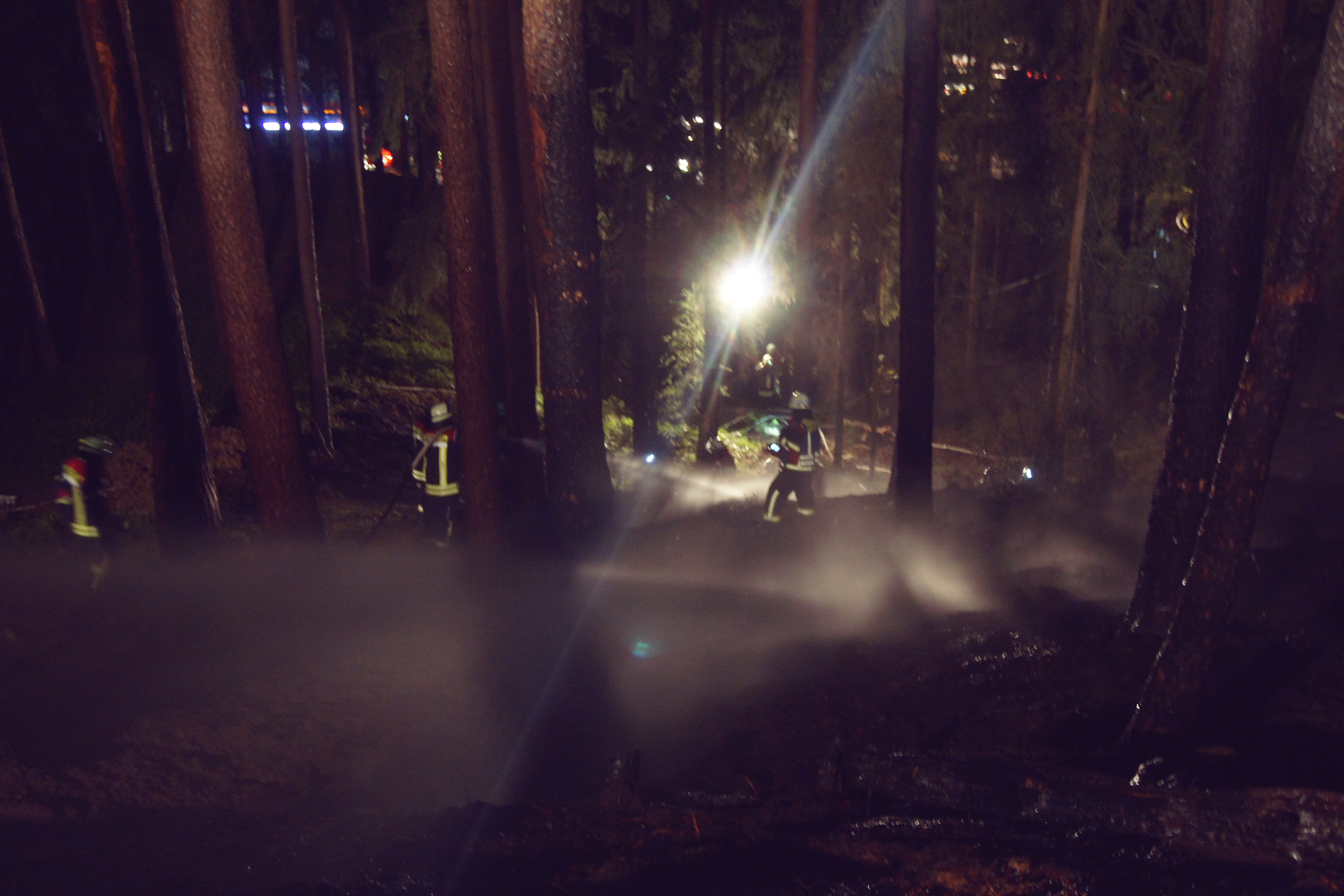 Ein Hubschrauber der Polizei überflog zur Sicherheit gegen Einsatzende das Waldstück, um mittels Wärmebildkamera nach weiteren Glutnestern zu suchen. Einheiten der Feuerwehr untersuchten das abgelöschte Areal vom Boden aus mit Wärmebildkamera. Der Einsatz dauerte bis nach Mitternacht, noch in der Nacht und am Morgen danach wurden Brandnachschauen durchgeführt, die jedoch keine weiteren Auffälligkeiten ergaben.
