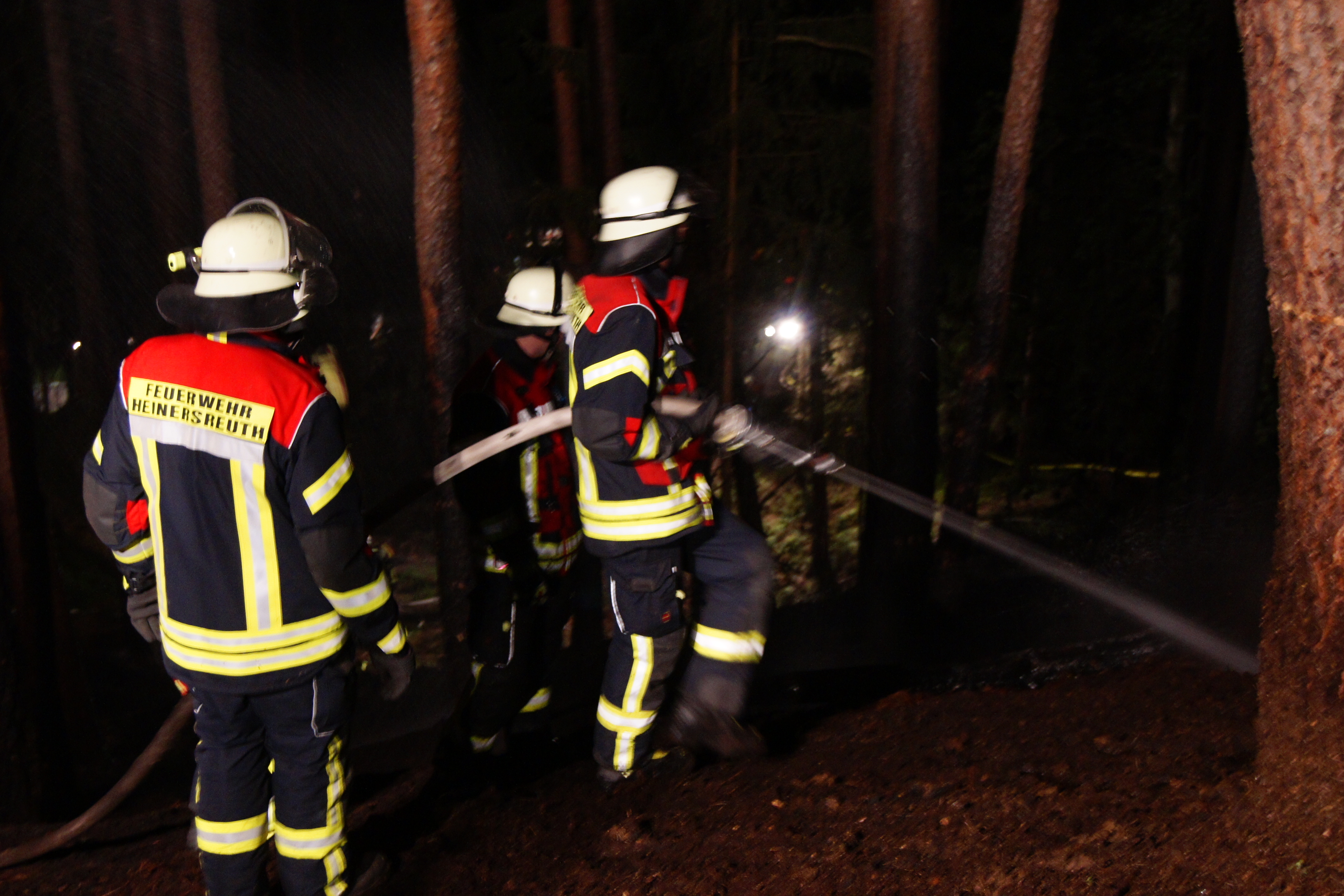 Gerade noch rechtzeitig Schlimmeres verhindern konnte die Feuerwehr bei einem Waldbrand nahe Theta. Am Abend des 09.07.2019 gegen 21 Uhr war einem aufmerksamen Beobachter eine Rauchwolke nördlich von Bayreuth im Wald aufgefallen. Nach erster Erkundung durch die alarmierten Einsatzkräfte bestätigte sich ein Waldbrand zwischen Theta und Hochtheta.