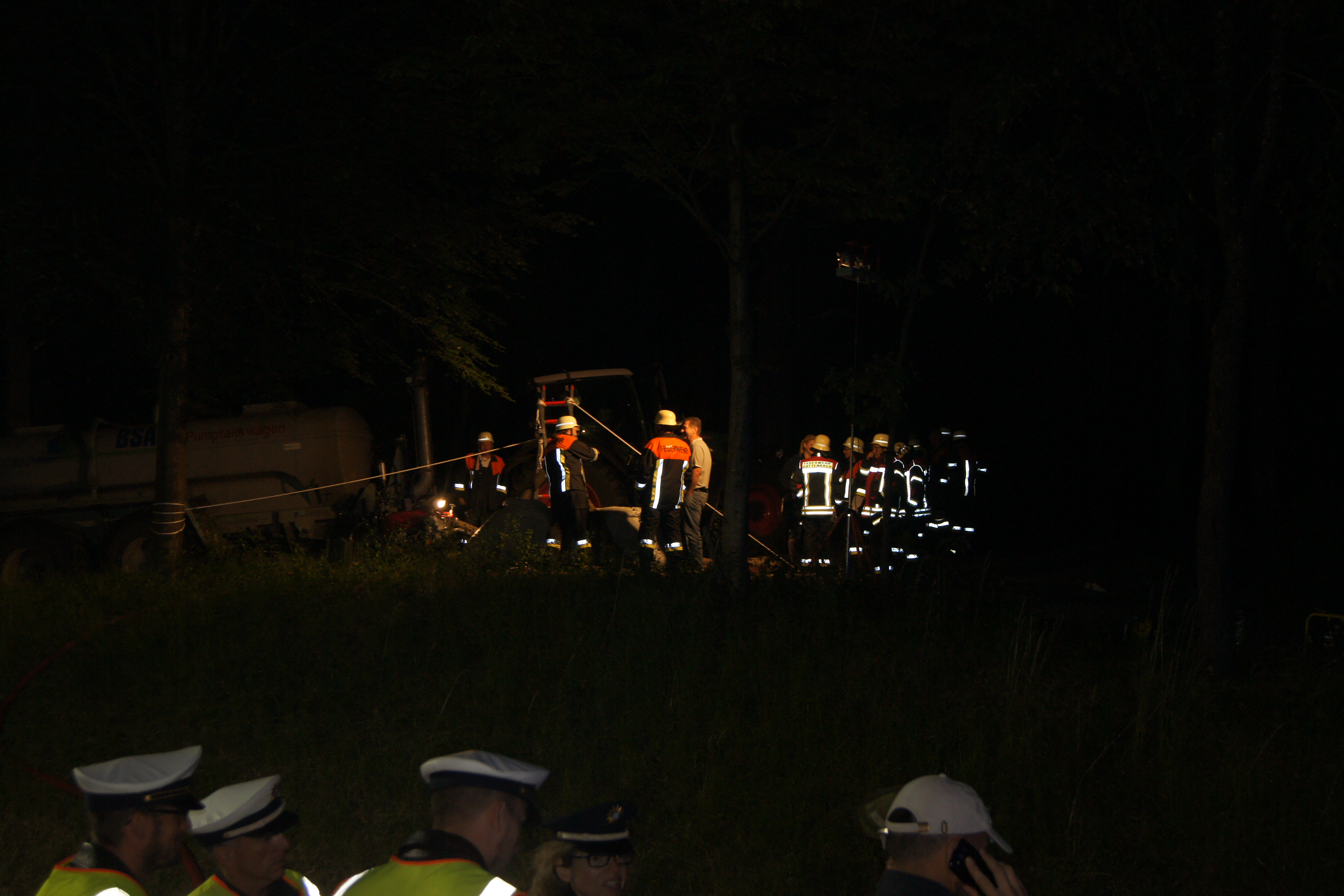 Den Lagemeldungen folgte die Alarmierung eines Großaufgebotes an Einsatzkräften aus Stadt und Landkreis Bayreuth, dem Landkreis Kulmbach, Großtanklöschfahrzeugen sowie mit Wasser befüllten Güllefässern. Zur Brandbekämpfung erschwerend kam hinzu, dass es sich bei dem betroffenen Areal größtenteils um einen steilen Hang handelte. Dank des schnellen Eingreifens und massiven Einsatzes von Löschwasser, insgesamt mussten über 100.000 Liter gefördert werden, konnte der Brand auf einer Fläche von rund 2000m² effektiv gelöscht werden.