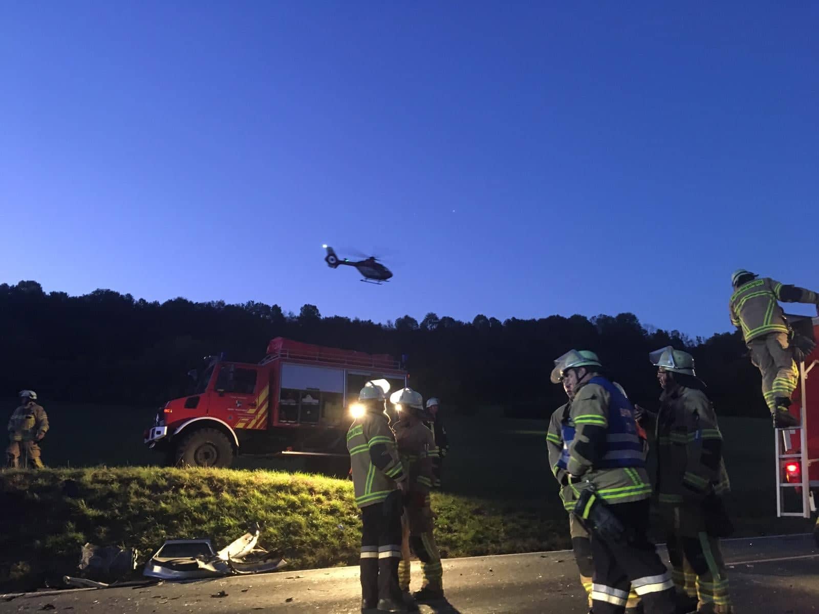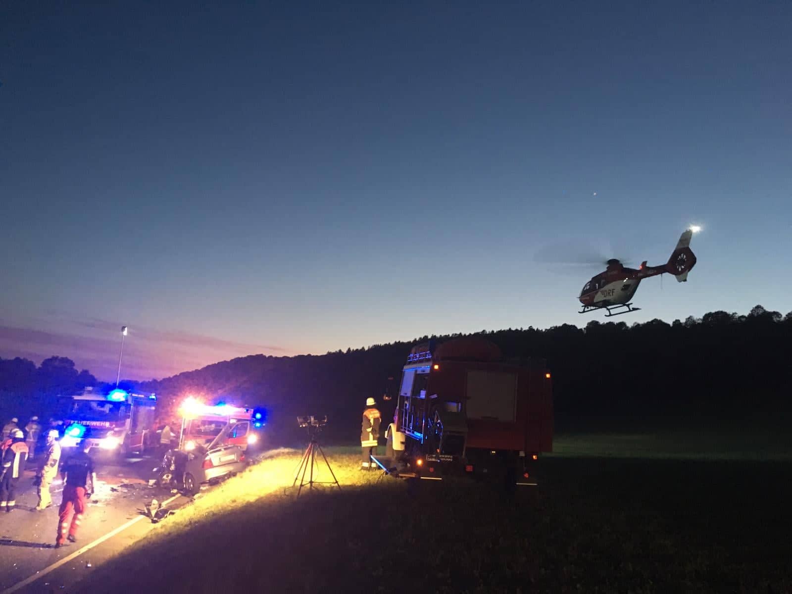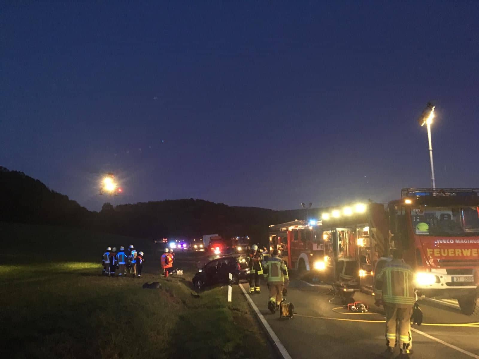 Erneut ist es zu einem schweren Verkehrsunfall auf der Staatsstraße 2181 nahe Döhlau gekommen. Kurz vor 19 Uhr alarmierte die Integrierte Leitstelle BT/KU die Einsatzkräfte auf die Staatsstraße zwischen Bayreuth und Weidenberg mit der Meldung, dass nach einem Unfall mit mehreren beteiligten Fahrzeugen mindestens zwei Personen eingeklemmt seien. Diese Meldung bestätigte sich nach Eintreffen der Retter: zwei Personen waren in jeweils einem verunfallten PKW schwerst eingeklemmt und mussten von der Feuerwehr befreit werden. Ein Fahrzeug wurde bei dem Aufprall von der Straße geschleudert und landete direkt neben den Bahngleisen. Der Regionalzug konnt die Unfallstelle jedoch langsam passieren.
