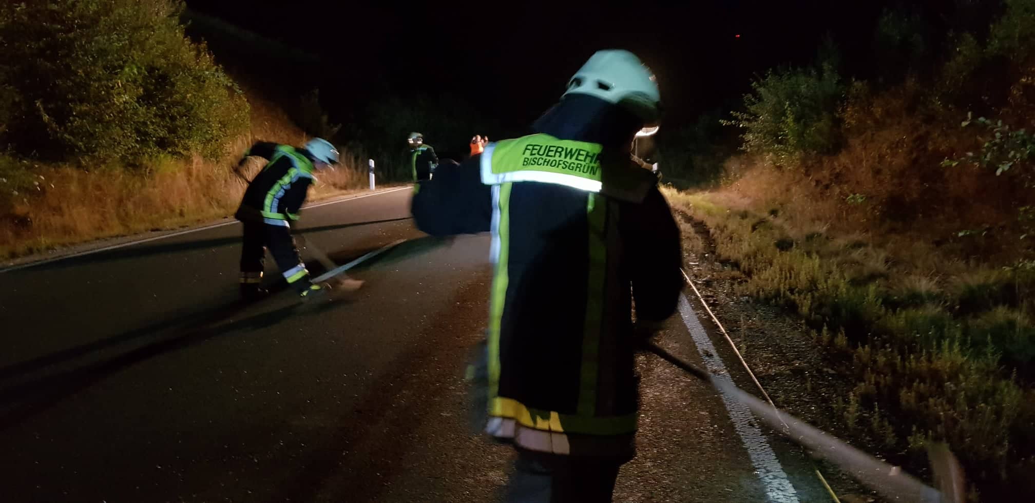 Nur etwa eineinhalb Stunden später wurden die Feuerwehren Bischofsgrün/Birnstengel zu einem Verkehrsunfall auf die B303 alarmiert. Hier waren zwei PKWs kollidiert, es gab zwei Leichtverletzte. Ein kleiner Hund aus einem der verunfallten Fahrzeuge lief in Panik davon und wird seitdem vermisst. Die Feuerwehr sicherte die Einsatzstelle, band auslaufende Betriebsstoffe, reinigte die Fahrbahn und regelte den Verkehr. Einsatzleiter war Michael Kandziora.