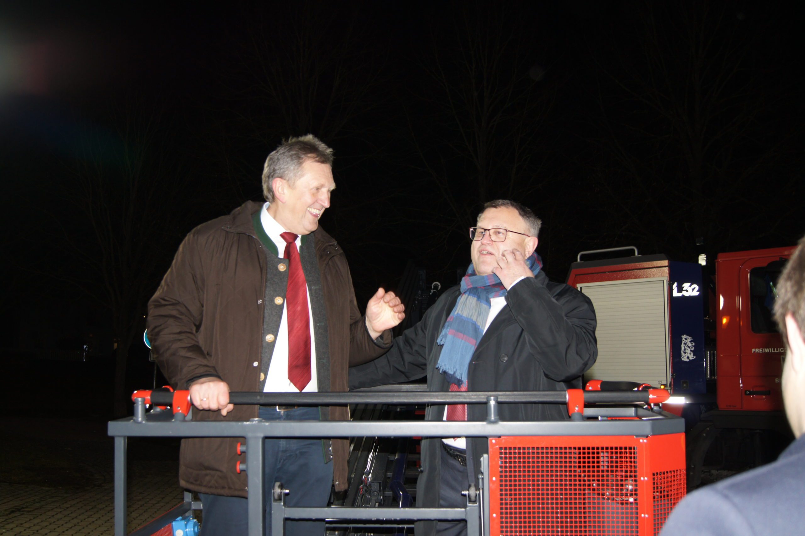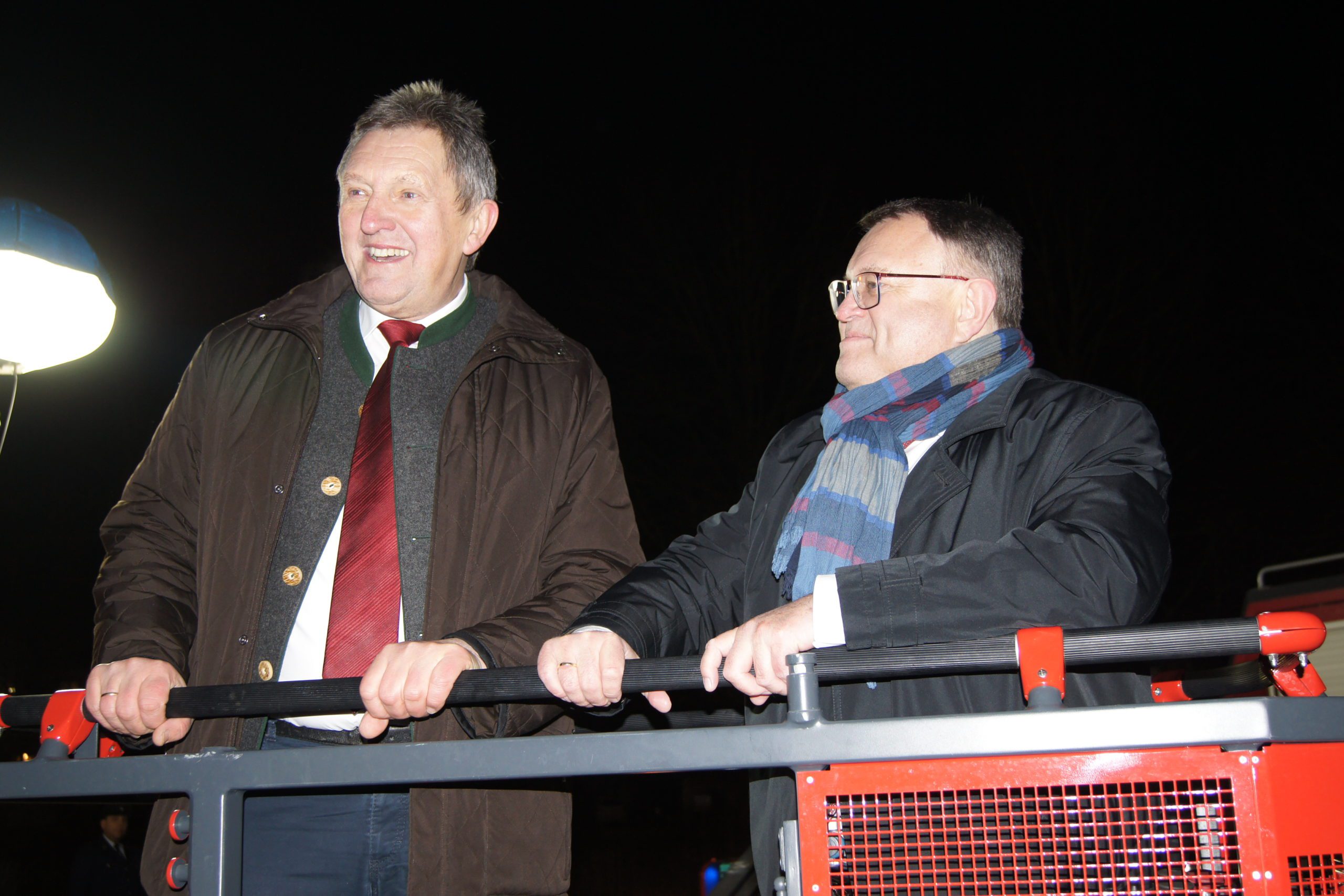 So waren es denn auch Landrat Hermann Hübner, Bürgermeister Gerald Kolb und Kreisbrandinspektor Winfried Prokisch, die anlässlich der Übergabe am 30.01.2020 nochmals eine Lanze für die Beschaffung der Drehleiter, vor allem aber für das Ehrenamt „Feuerwehr“ brachen. Es gehe nicht um finanzielle Geldsummen, sondern um Leben, so die Grußredner unisono. Landrat Hübner mahnte jedoch auch die Belastbarkeit des Ehrenamtes an: „was hier geleistet wird, ist unglaublich. Das Ehrenamt stößt an seine Grenzen! Wir müssen weiter versuchen, die Rahmenbedingungen zu verbessern!“