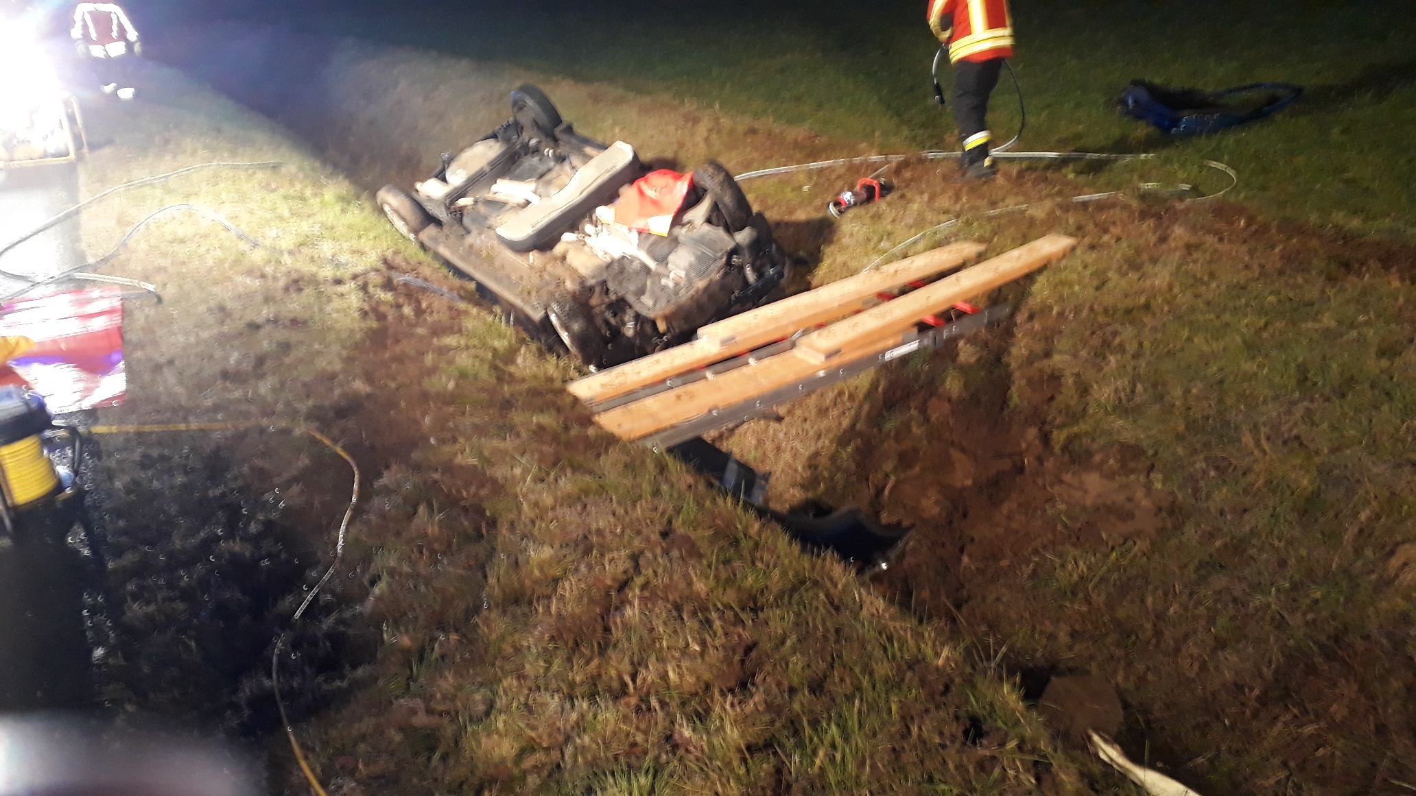 Am Sonntag, den 5. Januar 2020, wurden gegen 4.40 Uhr die Feuerwehren Leups, Buchau und Trockau zu einem Verkehrsunfall auf der BT23 alarmiert. Vor Ort stellte sich die Situation so dar, dass ein mit vier Personen besetztes Fahrzeug auf dem Dach im Graben lag. Die Insassen konnten sich nicht alleine befreien. Die Feuerwehr Trockau verschaffte sich mittels Rettungsschere und -spreizer einen Zugang, die Fahrzeugtüre wurde dabei herausgenommen. Mit Hilfe dieser Rettungsöffnung konnten die vier Verletzten befreit werden. Die Feuerwehren Buchau und Leups übernahmen die Verkehrsabsicherung. Das Bayerische Rote Kreuz sowie die Polizei waren ebenfalls vor Ort.