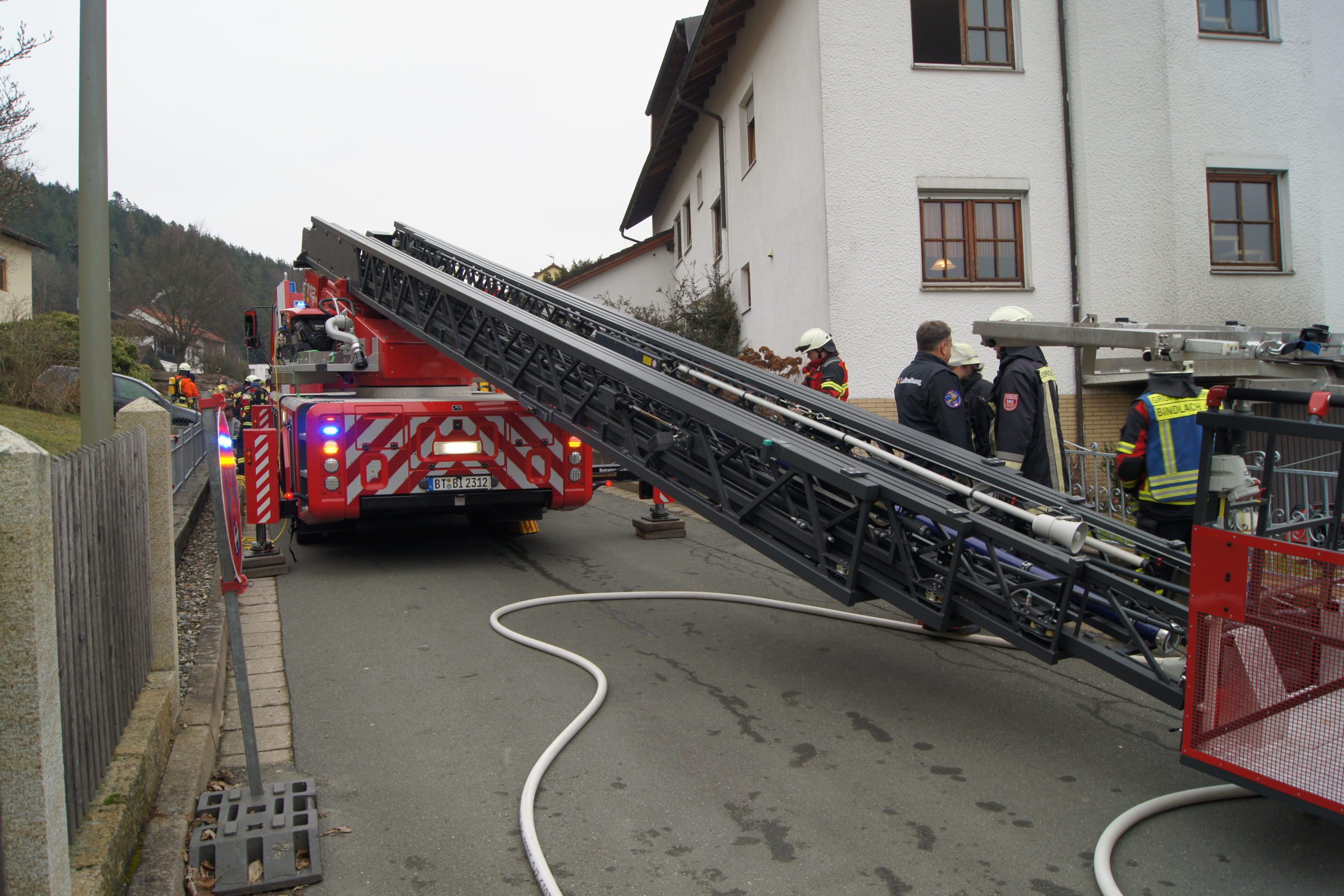 Am Morgen des 07.02.2020 wurden die Einsatzkräfte gegen 8:14 Uhr zu einem Brand in einem Mehrfamilienhaus in Goldkronach alarmiert. In der Straße „Am Stadtwald“ hatte es im Keller des Gebäudes gebrannt. Ein Nachbar hatte zuvor den Notruf gewählt, nachdem aus dem gesamten Gebäude Rauch drang. Den ersteintreffenden Kräften der Feuerwehr gelang es, drei der insgesamt acht Bewohner ins Freie zu retten. Mittels Steckleiter wurde eine Person vom Balkon gerettet, zwei Personen konnten von Atemschutzgeräteträgern mit einer Fluchthaube aus dem Haus geleitet werden. Fünf Personen hatten das Haus bereits vorher verlassen. Auch ein Hund und zwei Nymphensittiche wurden gerettet.