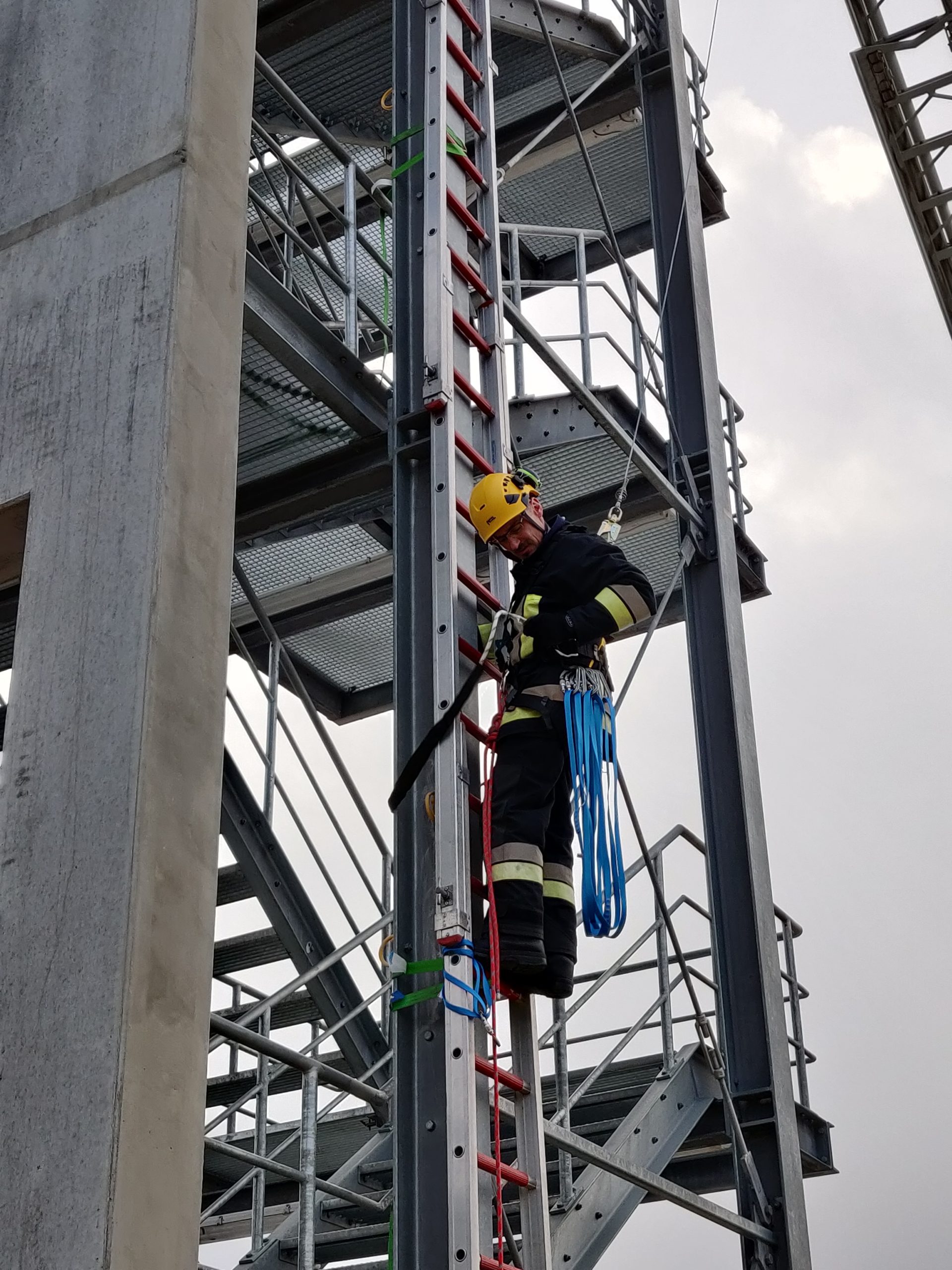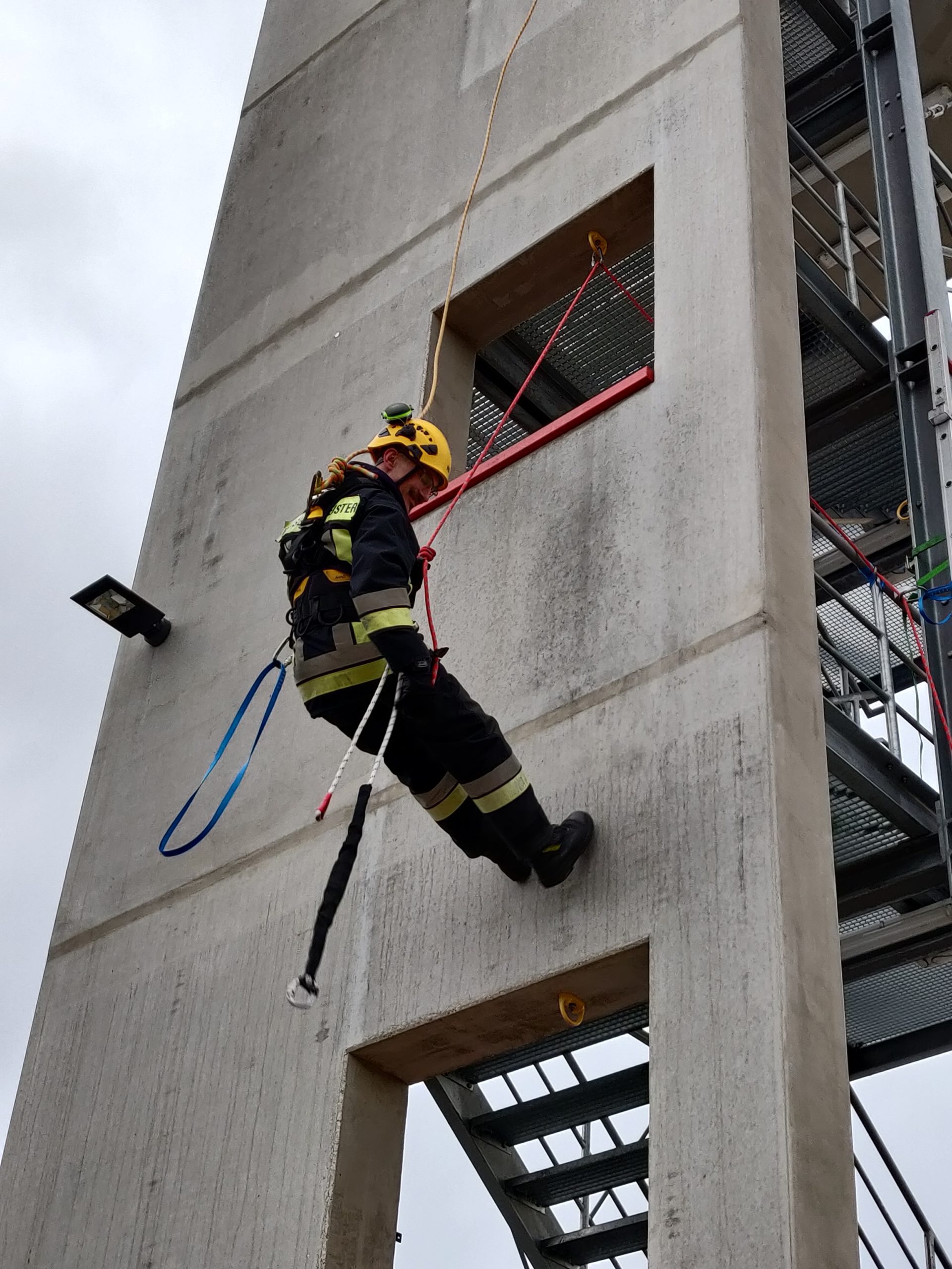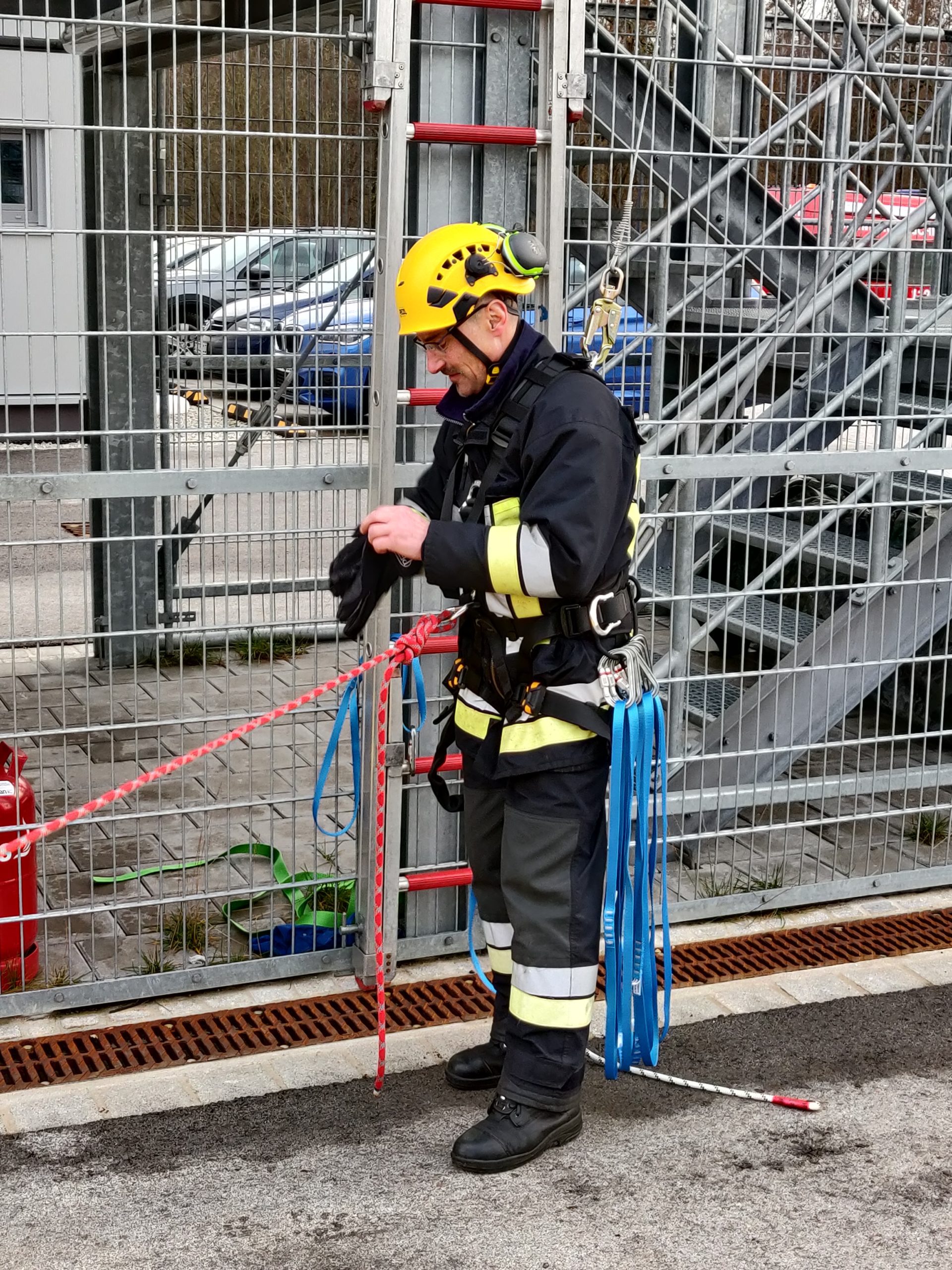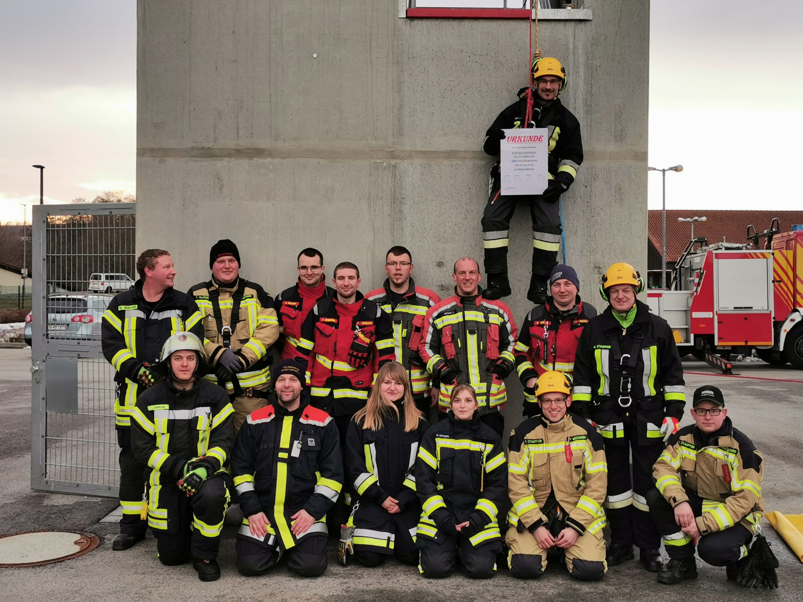 Eine wichtige Ausbildung im Katalog der landkreiseigenen Ausbildungsinspektion ist der Lehrgang „Absturzsicherung / Gerätesatz Absturzsicherung“. Dabei sollen die Teilnehmer theoretisch und praktisch die Anwendung des Haltegurtes und der Feuerwehrleine zum „Halten und Rückhalten“, das „Retten und Selbstretten“ sowie das sichere Arbeiten in absturzgefährdeten Bereichen erlernen und richtig durchführen.