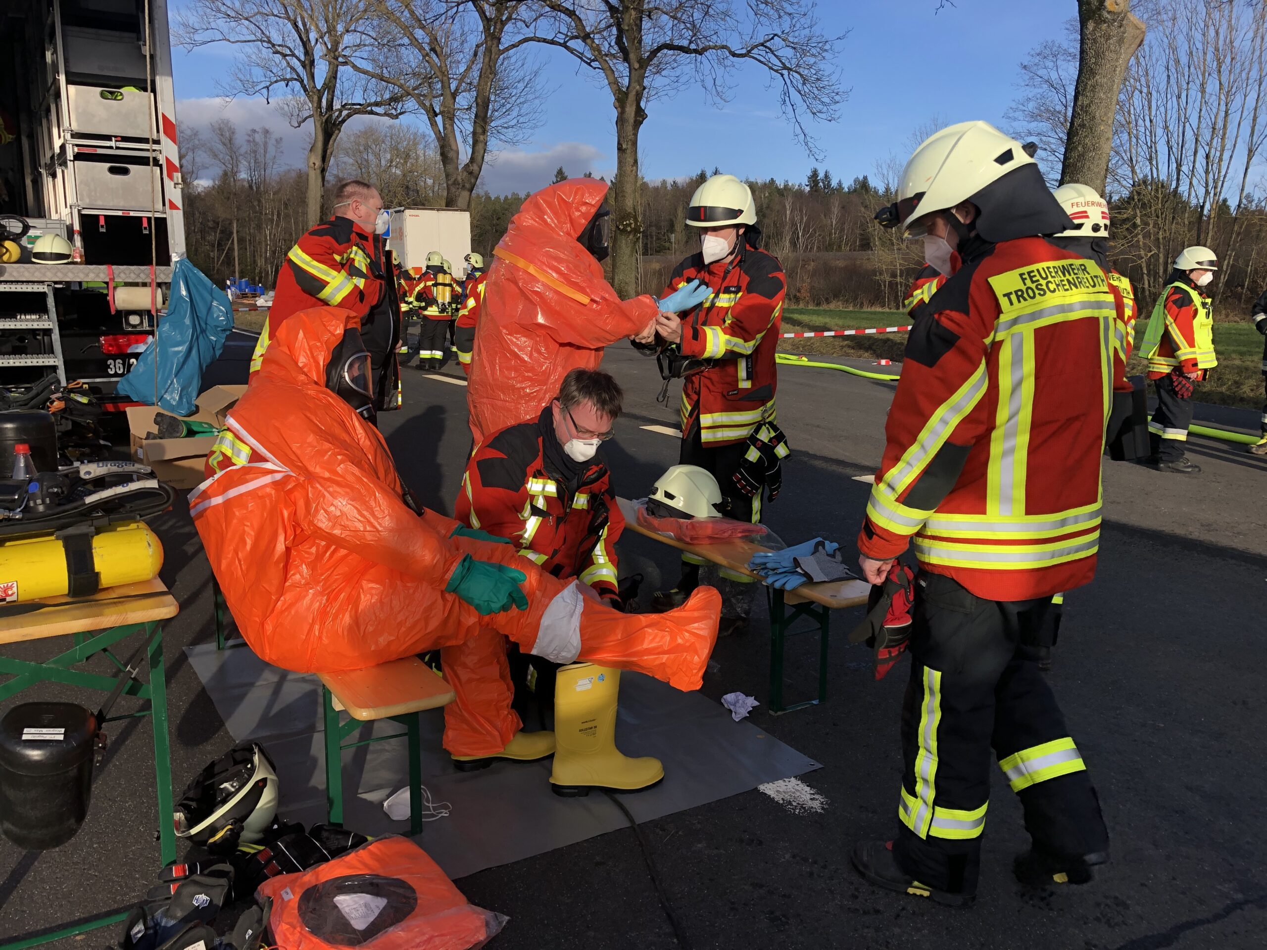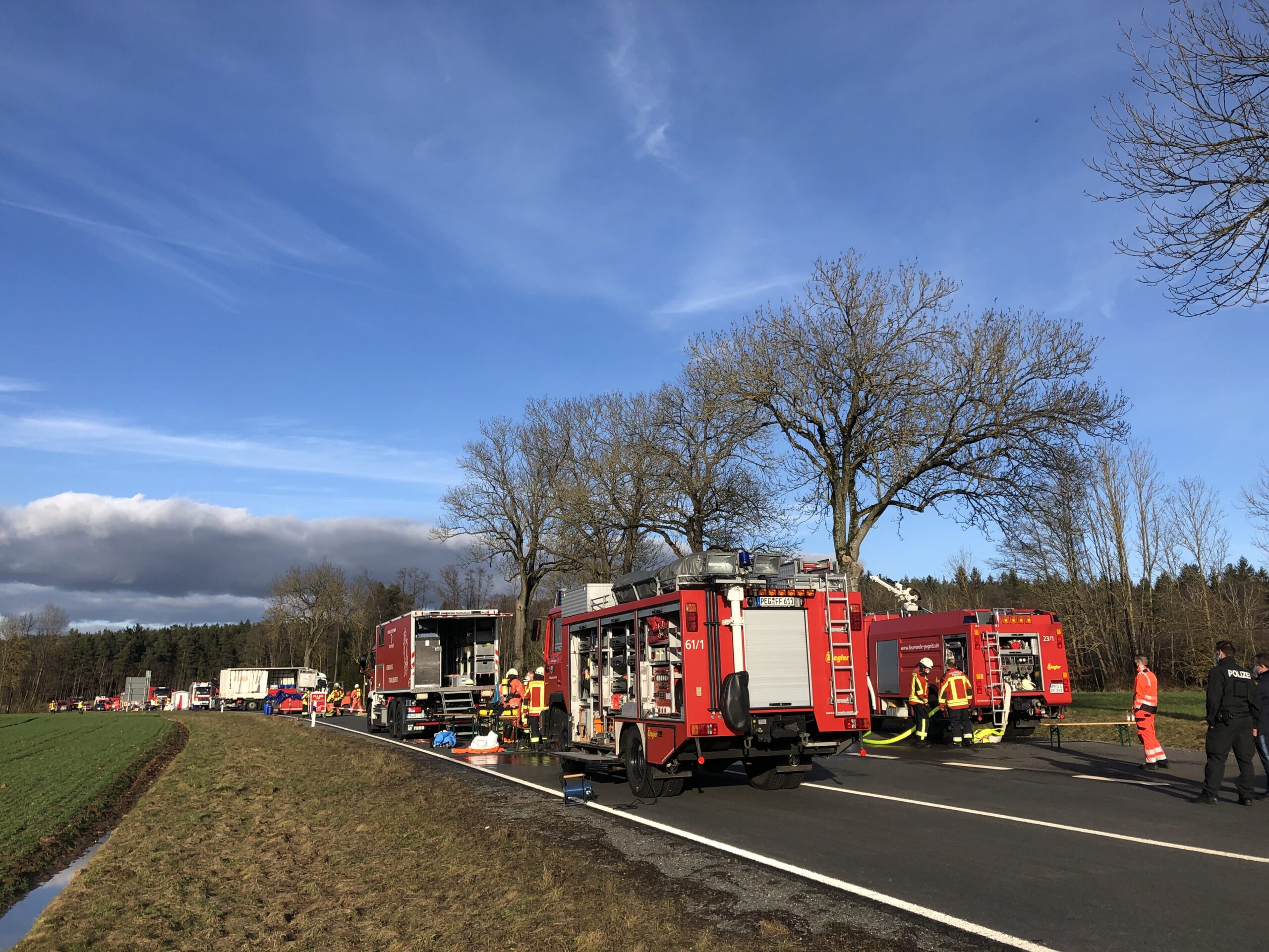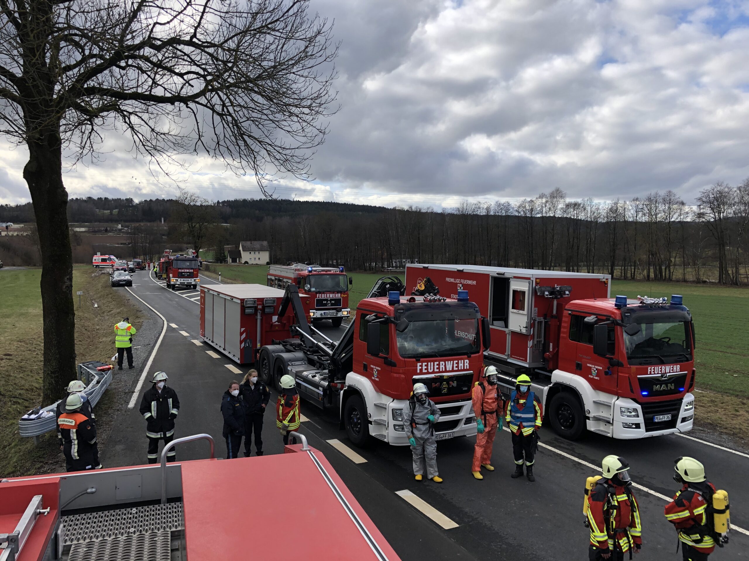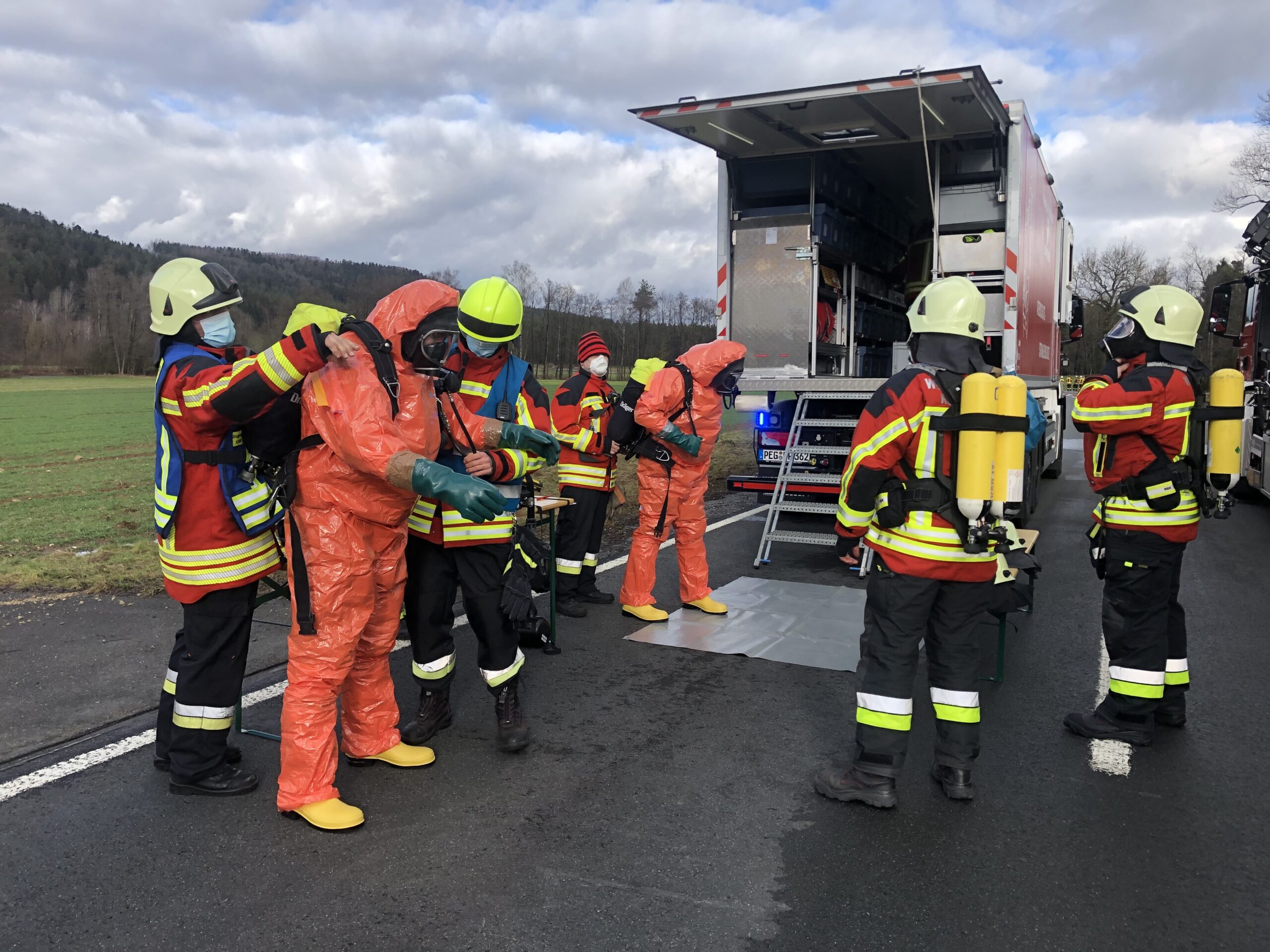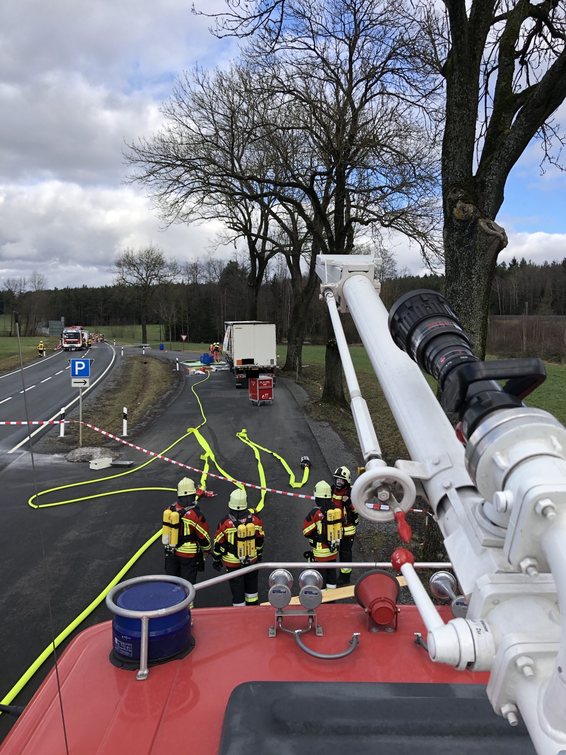 Am Vormittag des 04. Februar 2021 kam es zu einem Gefahrguteinsatz mit einem Natronlauge transportierenden LKW auf der B85 zwischen Pegnitz und Schnabelwaid. Auf Höhe von Zips traten aus bislang unklaren Gründen aus einem 60-Liter-Kanister rund 30 Liter der ätzenden, farblosen Flüssigkeit aus. Der Großteil davon verteilte sich auf der Ladefläche des LKW, etwa 2 Liter tropften auf die Teerfläche eines dortigen Parkplatzes.