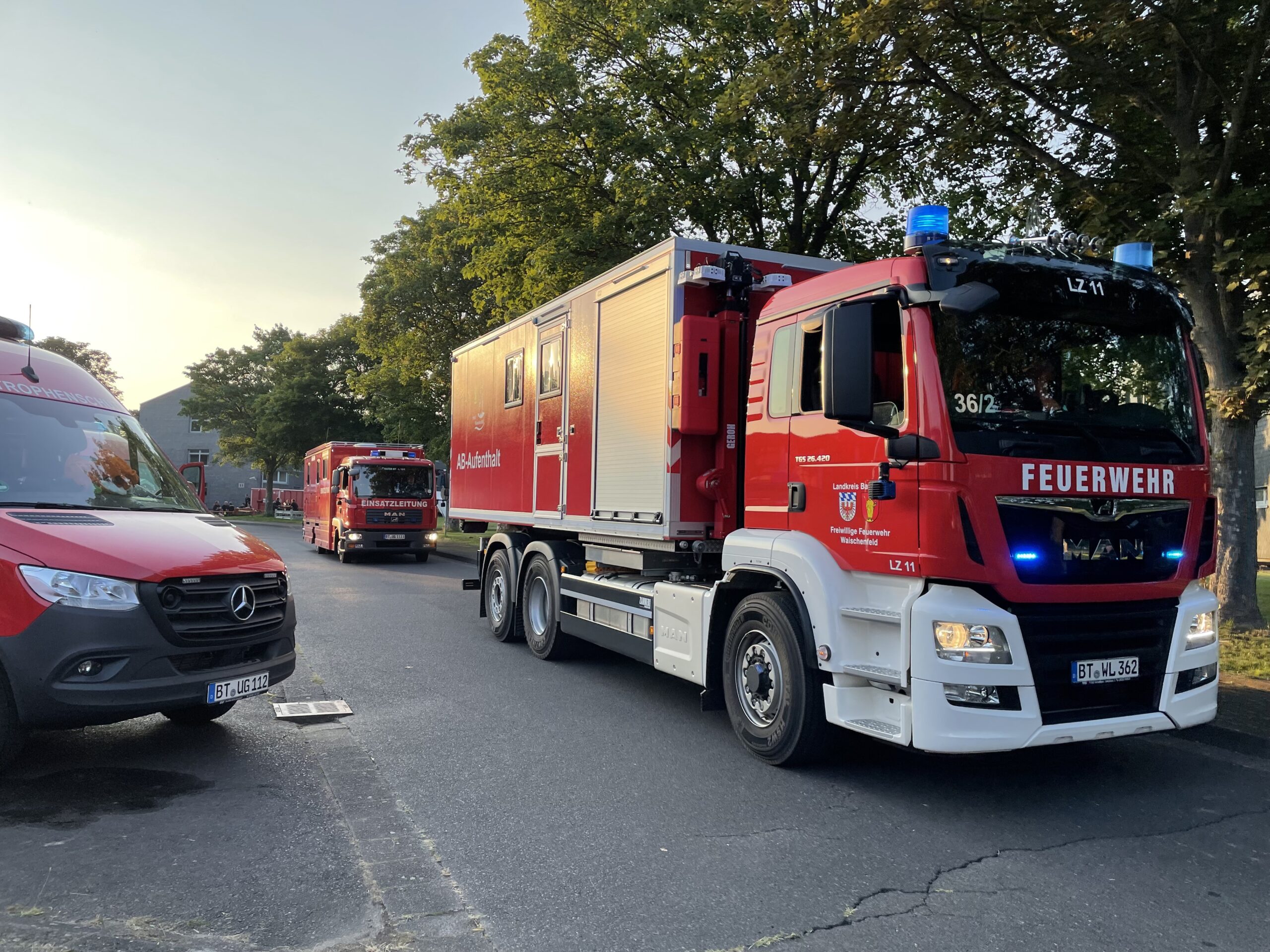 Im mit grünem Blinklicht gekennzeichneten Kater Bayreuth-Land 12/1 wurde fortlaufend organisiert. Beinahe idyllisch ging es in die Nacht, bevor in der Frühe zu den Einsatzstellen aufgebrochen wurde. Mehr dazu im nächsten Bericht.