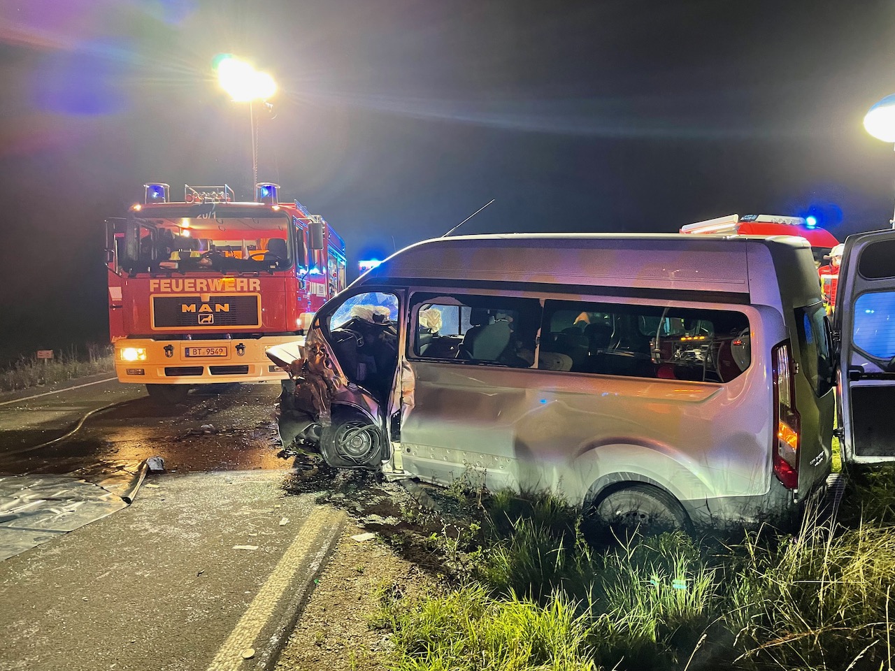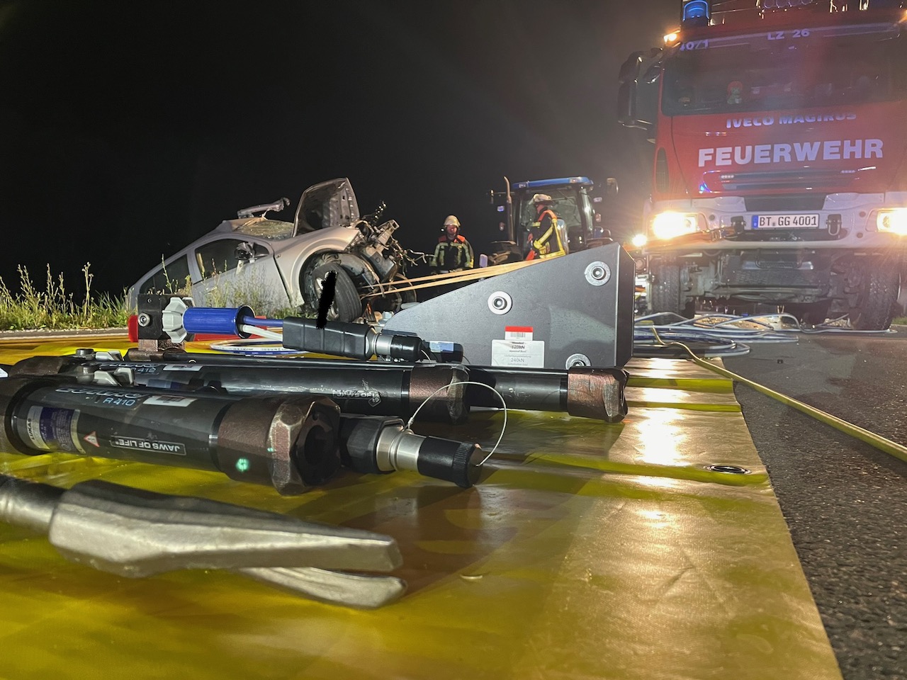 Nach den polizeilichen Feststellungen fuhr hierbei ein 52-Jähriger mit seinem Opel Astra auf der Staatsstraße von Obernsees in Richtung Bayreuth. Kurz nach der Abzweigung nach Frankenhaag überholte er in einer langgezogenen Rechtskurve einen Ackerschlepper, den ein 63-Jähriger lenkte. Während des Überholmanövers kam es aus bislang unbekannter Ursache zum Frontalzusammenstoß mit einem entgegenkommenden Ford Transit. Beide Fahrzeugführer waren bei Eintreffen der Feuerwehr in ihren massiv beschädigten Fahrzeugen eingeklemmt. Für den 52-Jährigen kam leider jede Hilfe zu spät. Er verstarb noch am Unfallort. Der verletzte Fahrer des Transit wurde von Feuerwehr und Rettungsdienst aus seinem Fahrzeug befreit und schließlich mit einem Hubschrauber in ein Krankenhaus geflogen. Der 63-jährige Landwirt blieb unverletzt.