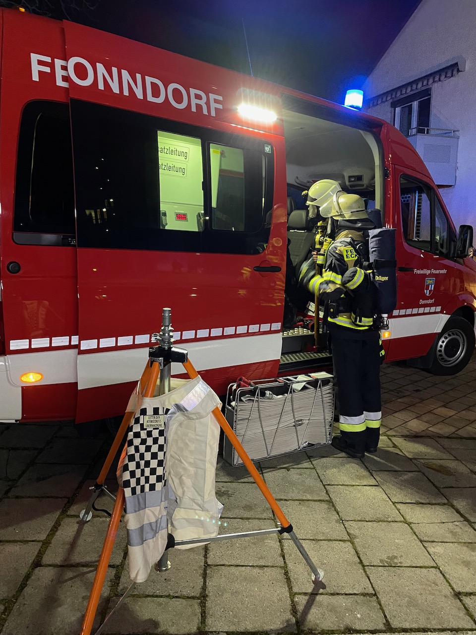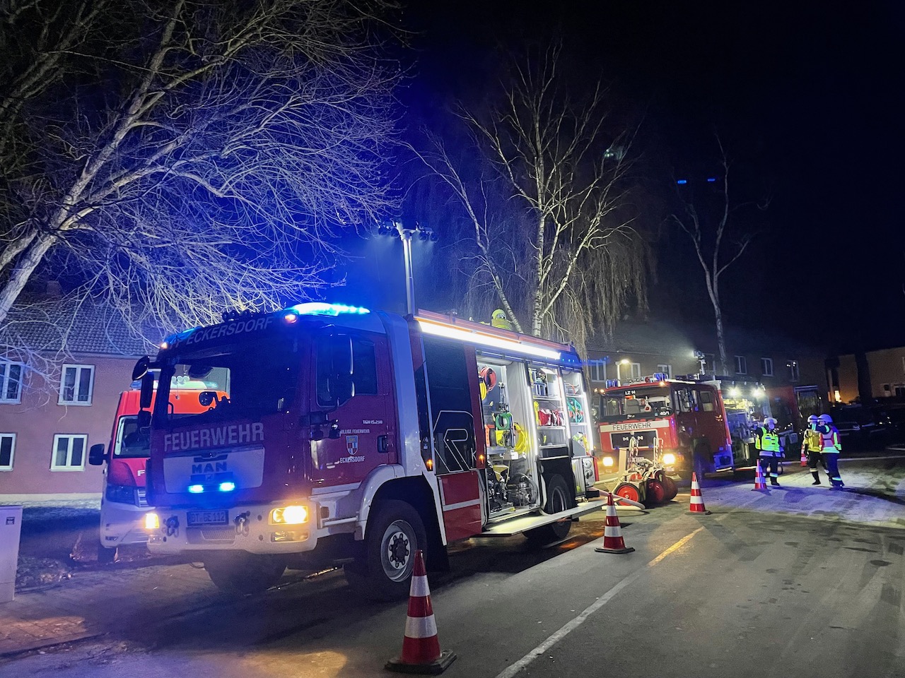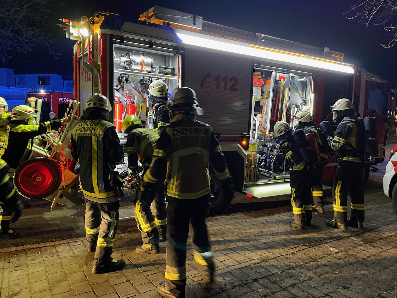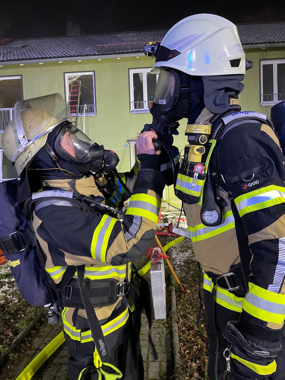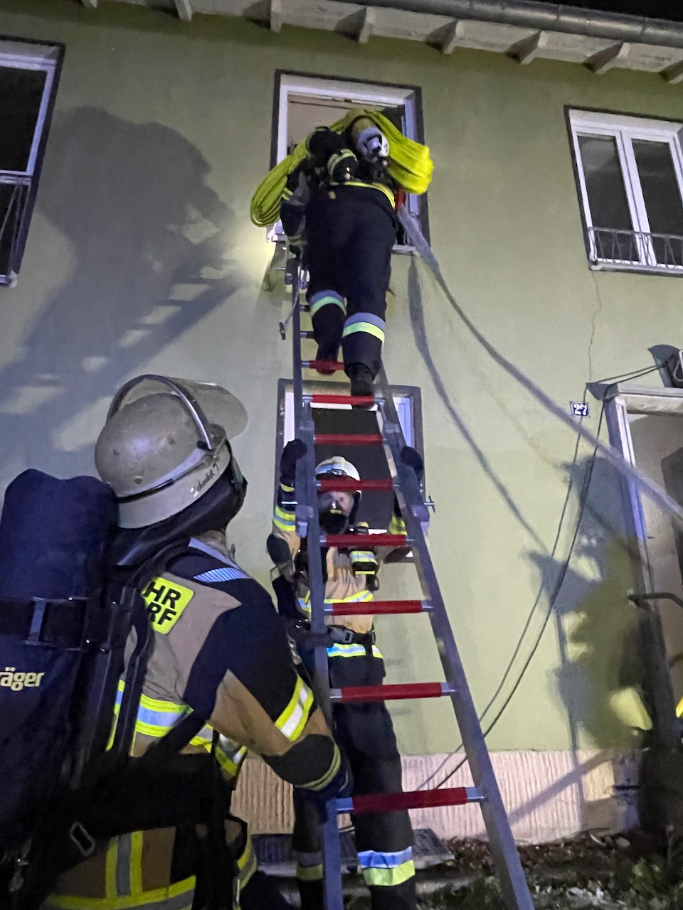Mit einer durchaus anspruchsvollen Übung warteten die Verantwortlichen der Feuerwehren Eckersdorf, Donndorf und der Abteilung Innere Stadt der Feuerwehr Bayreuth am Abend des 03. Dezember 2021 auf. Es bot sich nämlich in einem zum Abbruch stehenden Mehrfamilienhaus in Bayreuth die gerne in Anspruch genommene Möglichkeit, sehr realitätsorientiert und praxisgerecht zu üben. Ausgehend von einem Brandgeschehen im Keller sollte sich „Feuer und Rauch“ durch den ganzen Komplex entwickeln. Mit mehreren Nebelmaschinen, Lichteffekten, Verletztendarstellern und versteckten Übungspuppen wirkte das Szenario nicht nur ziemlich echt, sondern sorgte auch dafür, dass die Teilnehmer alle Hände voll zu tun hatten.