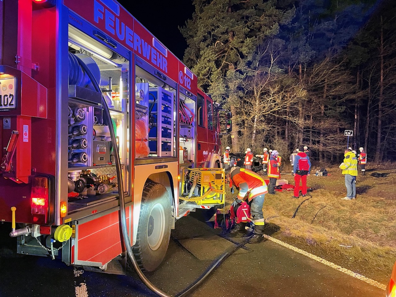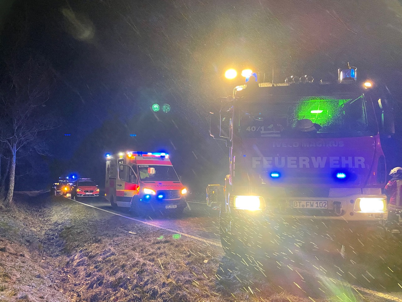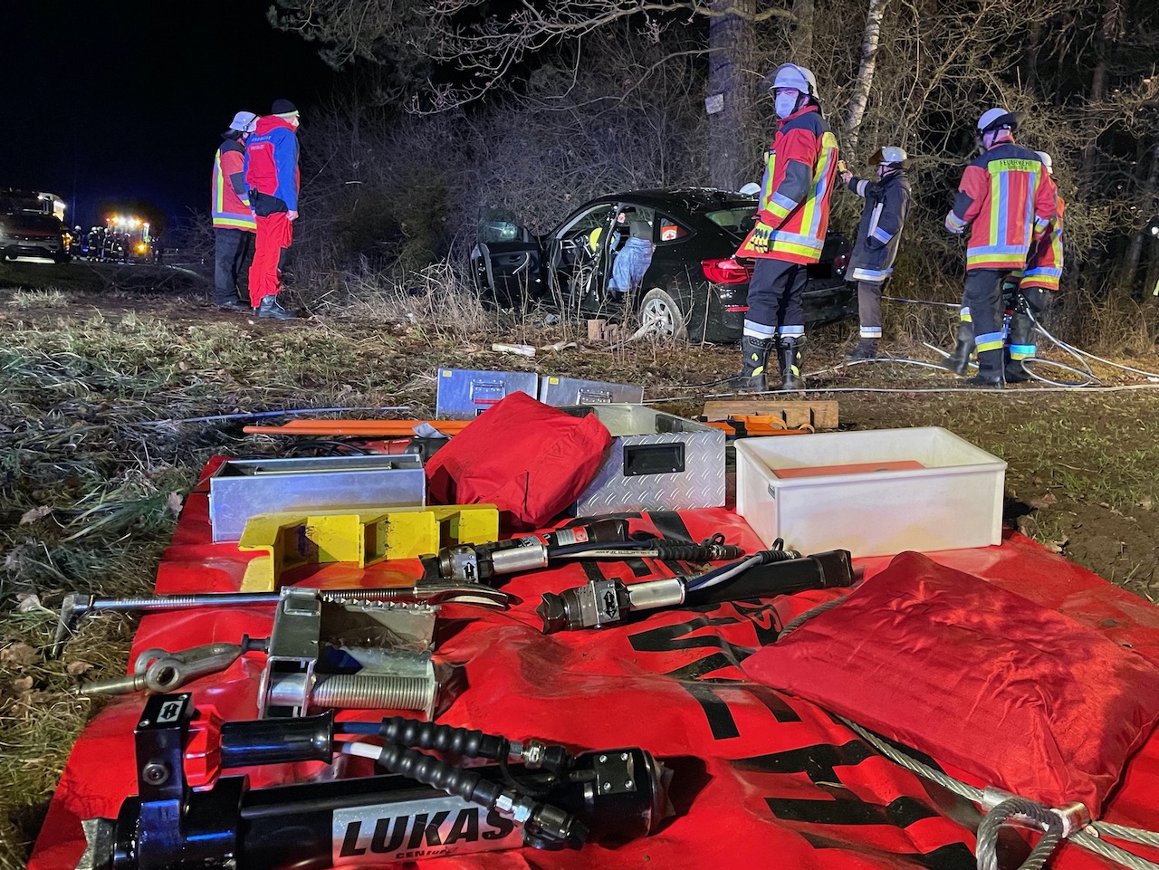 Schwerer Verkehrsunfall am frühen Sonntagmorgen (06. Februar 2022) bei Neuhaidhof. Aus bislang unklaren Gründen kam auf der Staatsstraße 2120 zwischen Creußen und Engelmannsreuth ein mit zwei Personen besetztes Fahrzeug von der Fahrbahn ab und prallte anschließend in eine Baumgruppe. Die Feuerwehren Creußen, Haidhof und Engelmannsreuth wurden gegen 04.20 Uhr von der Integrierten Leitstelle Bayreuth/Kulmbach dorthin zur patientengerechten Rettung alarmiert. Vor Ort sicherten die Feuerwehren die Unfallstelle weiträumig ab und leuchteten sie aus. Die Beifahrerin wurde in enger Zusammenarbeit zwischen Rettungsdienst und Feuerwehr in größtmöglich schonender Weise aus dem Unfallfahrzeug befreit. Neben dem Rettungsdienst waren rund 50 Feuerwehrleute im Einsatz, außerdem die Polizei sowie ein Abschleppunternehmen.