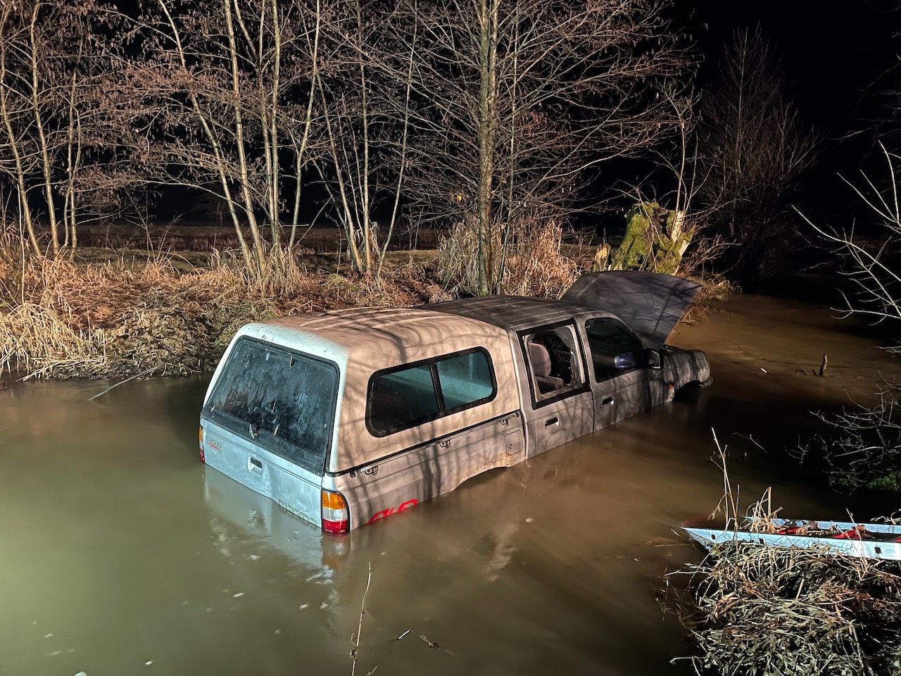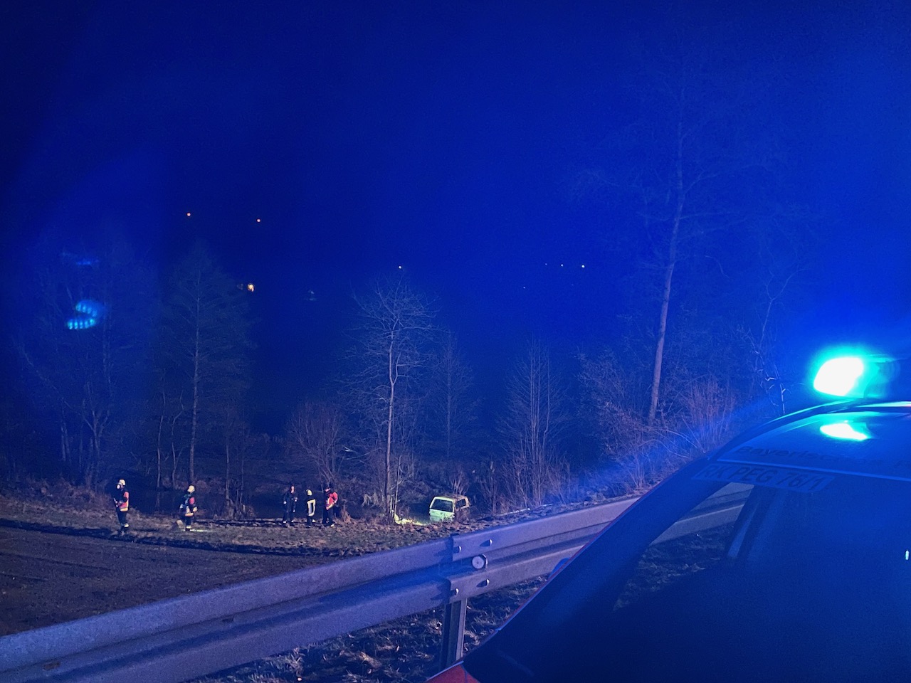 Am 03. Februar 2022 ereignete sich gegen 02.00 Uhr ein Verkehrsunfall an der B2 nahe Creußen. Aus bislang unklaren Gründen kam ein Fahrzeug von der Fahrbahn ab und landete nach einer Fahrt über ein Feld im Roten Main, wo das Fahrzeug steckenblieb. Der Fahrer konnte mit Unterstützung der Feuerwehr aus dem Gewässer befreit und dem Rettungsdienst übergeben werden. Die Einsatzstelle wurde großflächig ausgeleuchtet, das Fahrzeug gegen ein Wegschwimmen gesichert und Ölsperren errichtet. Die Bergung wird in Rücksprache mit den zuständigen Fachbehörden durchgeführt. Der Verkehr wurde für die Dauer der notwendigen Maßnahmen örtlich umgeleitet. Eingesetzt waren die Wehren aus Creußen und Gottsfeld sowie die besonderen Führungskräfte KBI Kerstin Schmidt und KBM Uwe Jacobs. Die Polizei hat die Ermittlungen aufgenommen.