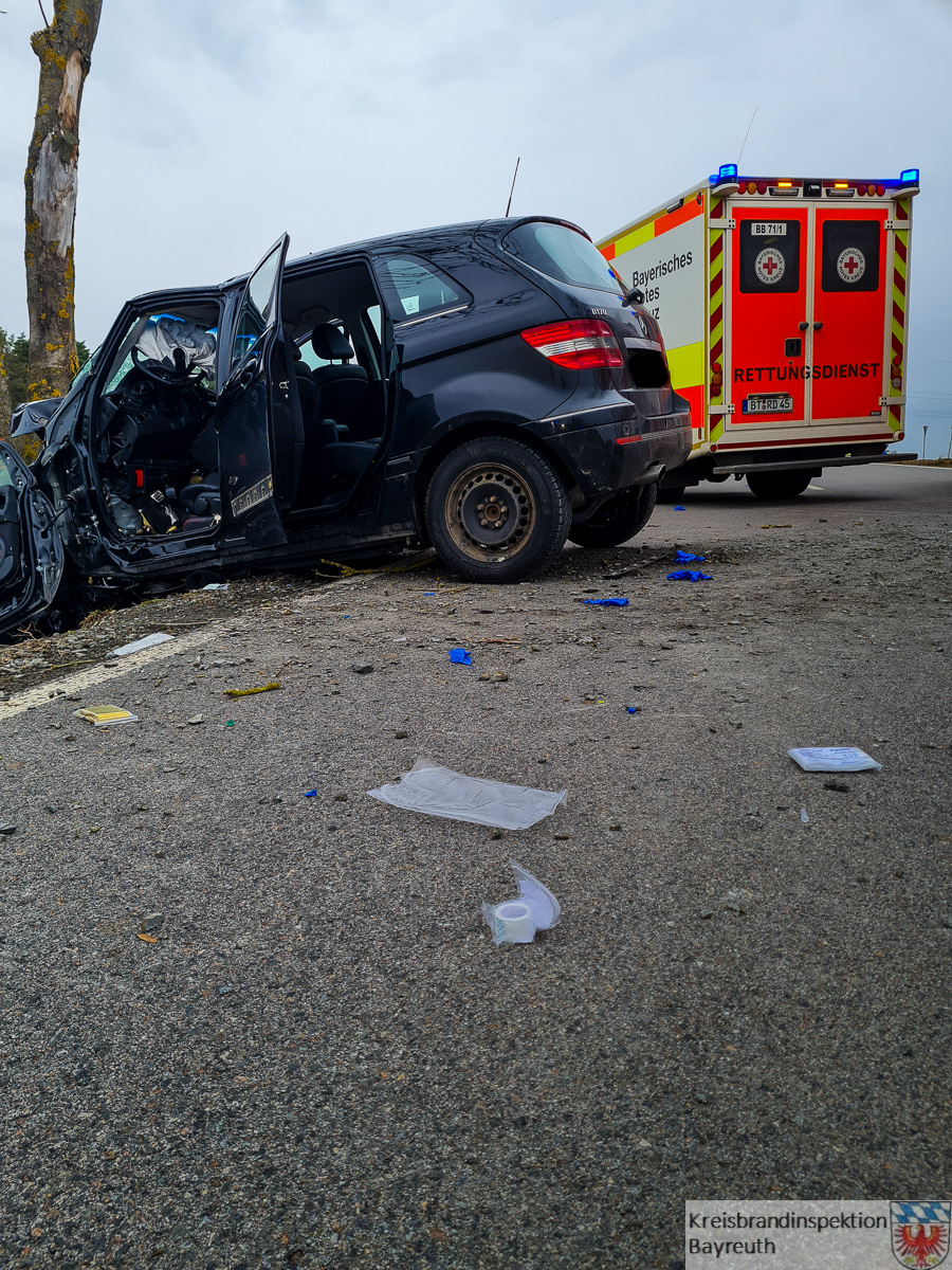 Am Dienstag, den 15.03.2022, wurden die Feuerwehren Benk, Bindlach, Dressendorf und Deps gegen 12:15 Uhr zu einem schweren Verkehrsunfall auf die BT 46 alarmiert. Bei Eintreffen der ersten Feuerwehren fanden sie vom Bindlacher Berg in Richtung der Autobahnauffahrt Bindlacher Berg einen PKW vor, der frontal mit einem Baum kollidiert war. Der alleinbeteiligte Fahrer war schwerverletzt und eingeklemmt. Mittels hydraulischen Rettungssatz musste er aus seinem PKW befreit werden, bevor er an den Rettungsdienst übergeben und in eine umliegende Klinik transportiert werden konnte. An der Einsatzstelle befanden sich neben circa 40 Feuerwehrkräften zwei Rettungswägen, ein Notarzt, ein Einsatzleiter Rettungsdienst und der Pressesprecher des BRK, Thomas Janovsky. Die Polizei hat die Ermittlungen zu der noch unklaren Ursache des Unfalls aufgenommen. Nachdem der PKW von einem Abschleppunternehmen von der Unfallstelle abtransportiert wurde, konnte über die Polizei die von der Feuerwehr durchgeführte Straßenvollsperrung wieder aufgehoben werden.