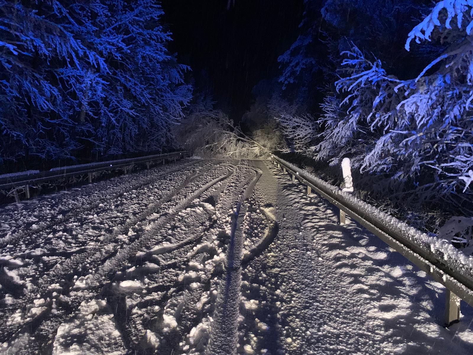 Baum über Straße, Landkreis Bayreuth, Schnee