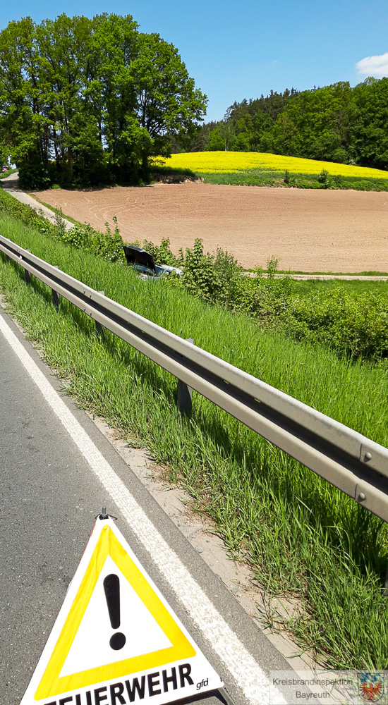 Bereits am Sonntag, den 15.05.2022, ereignete sich auf der B2 in Fahrtrichtung Creussen auf Höhe Lankenreuth, in einer langezogenen Linkskurve ein Unfall. Aus bisher unbekannten Gründen, kam das Fahrzeug auf die linke Fahrbahn und fuhr in Folge dessen, die Leitplanke hoch, drehte sich dabei quer zur Fahrbahn und schliderte noch ca. 100 Meter an der Fahrbahnböschung entlang. Ersthelfer kümmerten sich um die Fahrzeuginsasen. Bei Eintreffen der Feuerwehr, haben sich die Verunfallten bereits selbst aus dem PKW befreien können. Die Feuerwehr stellte den Brandschutz her und Sicherte das Fahrzeug gegen Wegrutschen. Der Verkehr wurde umgeleitet. Im späteren Verlauf des Einsatzes konnte der Verkehr zumindest halbseitig wieder an der Unfallstelle vorbei gelassen werden. Desweiteren im Einsatz befand sich neben dem Rettungsdienst auch ein Hubschrauber und die Polizei.