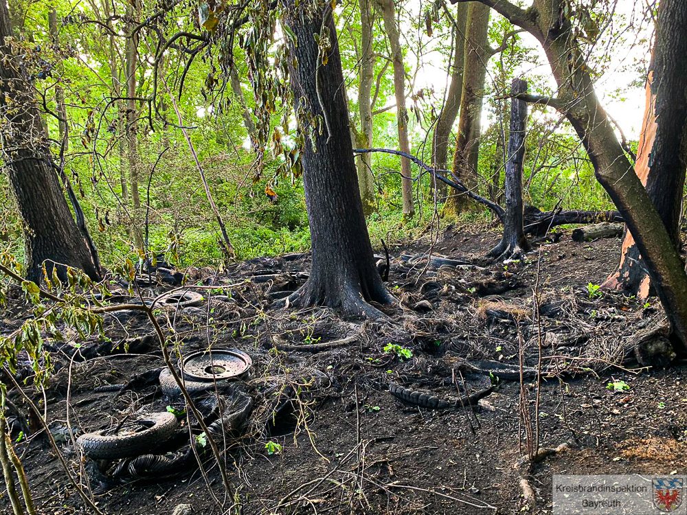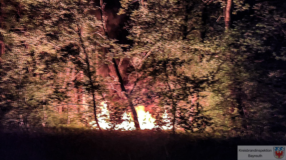 So ist es auch vergangene Nacht passiert. In der Nacht von Samstag auf Sonntag, den 28.05.2022 hat gegen 23:45 Uhr, ein sehr aufmerksamer Mitteiler den Notruf abgesetzt, indem er ein Feuer an der Verbindungsstraße zwischen Speichersdorfer Ortsteilen Plössen und Guttenthau meldete. Die alarmierten Einsatzkräfte der umliegenden Ortswehren Speichersdorf, Kirchenlaibach, Plössen, Guttenthau/Roslas und überörtlich die Feuerwehr Kemnath lokalisierten das Feuer sehr schnell und begannen umgehend mit den Löscharbeiten. Das Feuer hatte sich nicht nur auf den Waldboden und den Baumbestand ausgebreitet, sondern entzündete auch mehrere illegal abgelagerte Reifen, die während der weiteren Erkundung und den Löscharbeiten gefunden wurden. Insgesamt geriet ein 400 Quadratmeter großes Waldstück in Brand. Dank des resoluten Eingreifens der Feuerwehr konnte Schlimmeres verhindert werden. Von mehrern Seiten gleichzeitig, auch „aus der Luft“ mittels Drehleiter, wurde das Feuer bekämpft. Die Brandursache ist momentan noch Gegenstand polizeilicher Ermittlungen.