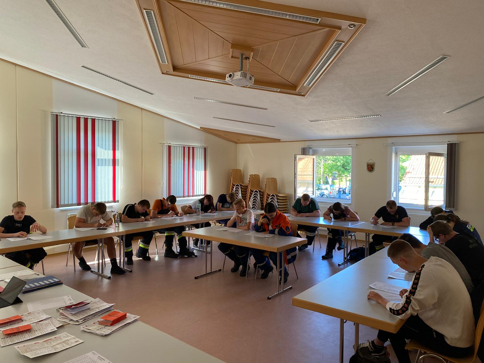 Insgesamt 42 Feuerwehrleute aus 20 Wehren des südlichen Landkreises Bayreuth schlossen am 16. und 23. Juli 2022 mit einer schriftlichen und praktischen Prüfung das Basismodul der Modularen Truppausbildung erfolgreich ab. Zwei weitere Feuerwehrleute aus Betzenstein und Kühlenfels konnten das Ausbildungs- und Übungsmodul absolvieren.