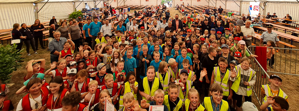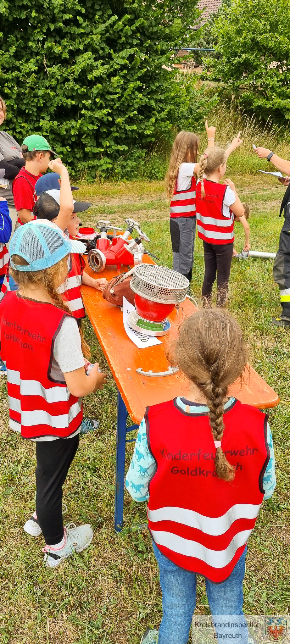 Mit vor Ort waren neben Kreisbrandinspektor Jürgen Wunderlich auch die Kreisbrandmeister Danny Hieckmann, Johannes Geisler und Christian Heidenreich, sowie natürlich die Kinderfeuerwehrbeauftragte für die Inspektion I Melanie Walter. Auch unser Landrat Florian Wiedemann lies es sich nicht nehmen, die Veranstaltung zu besuchen, wie auch der zuständige erste Bürgermeister Christian Brunner. In ihren Grußworten an die Kinder lobten sie deren Engagement für und in der Feuerwehr. Bei der Siegerehrung überreichte der Landrat zusammen mit dem zuständigen Bürgermeister und von der Inspektion I der Kreisbrandinspekor zusammen mit der Kinderfeuerwehrbeauftragten die Pokale, Medallien und Urkunden sowie kleine Give – Aways für die Kinder. Als Besonderheit in der Inspektion I gilt es zu erwähnen, dass bei Veranstaltungen für die Kinder, sei es die Kinderolympiade oder der Kinderflamme bewusst auf Ranglistenplatzierungen verzichtet wird. Jede teilnehmende Kinderfeuerwehr, jedes teilnehmende Kind ist gleichermaßen Sieger. Es geht nicht um den Wettkampfgedanke sondern um die spielerische Art und Weise im Umgang mit feuerwehrspezifischen Themen, welche bei so einer Veranstaltung den Wissens- und Fähigkeitenstand, altersgerecht für die teilnehmenden 6 bis 12 jährigen Kinder abfragt. Wir gratulieren den Kinderfeuerwehren Bindlach, Nemmersdorf, Bad Berneck, Unterlind, Goldkronach, Laineck, Heinersreuth, Brandholz, Bischofsgrün, Bärnreuth, Escherlich, Ramsenthal sowie den beiden Gastmannschaften den Kinderfeuerwehren Trebgast und Neuenmarkt zu ihrem jeweiligen Sieg. Freudestrahlend und mega stolz wurden die Pokale, Medallien und Urkunden von den teilnehmenden Kindern aber auch ihren Betreuern in Empfang genommen.