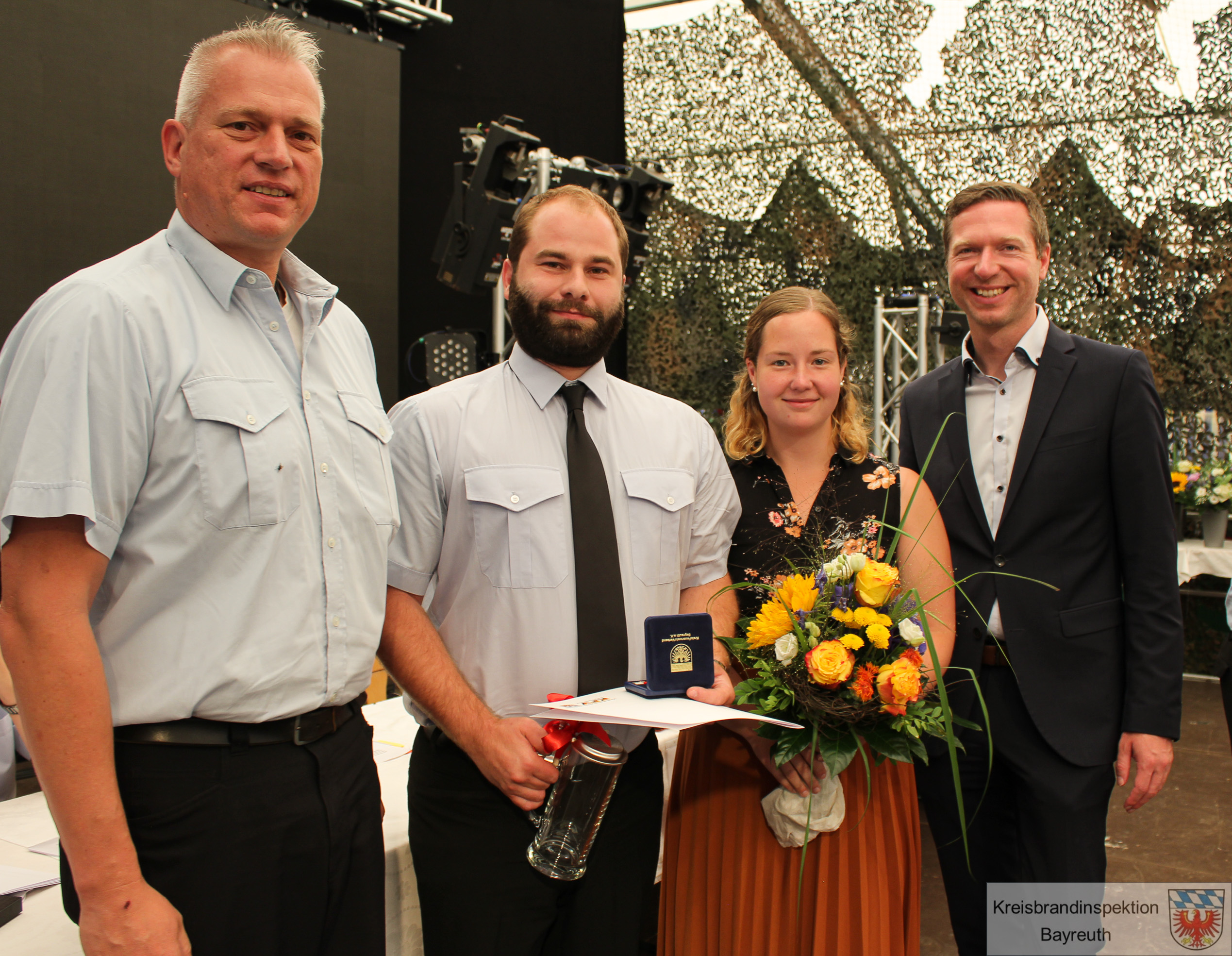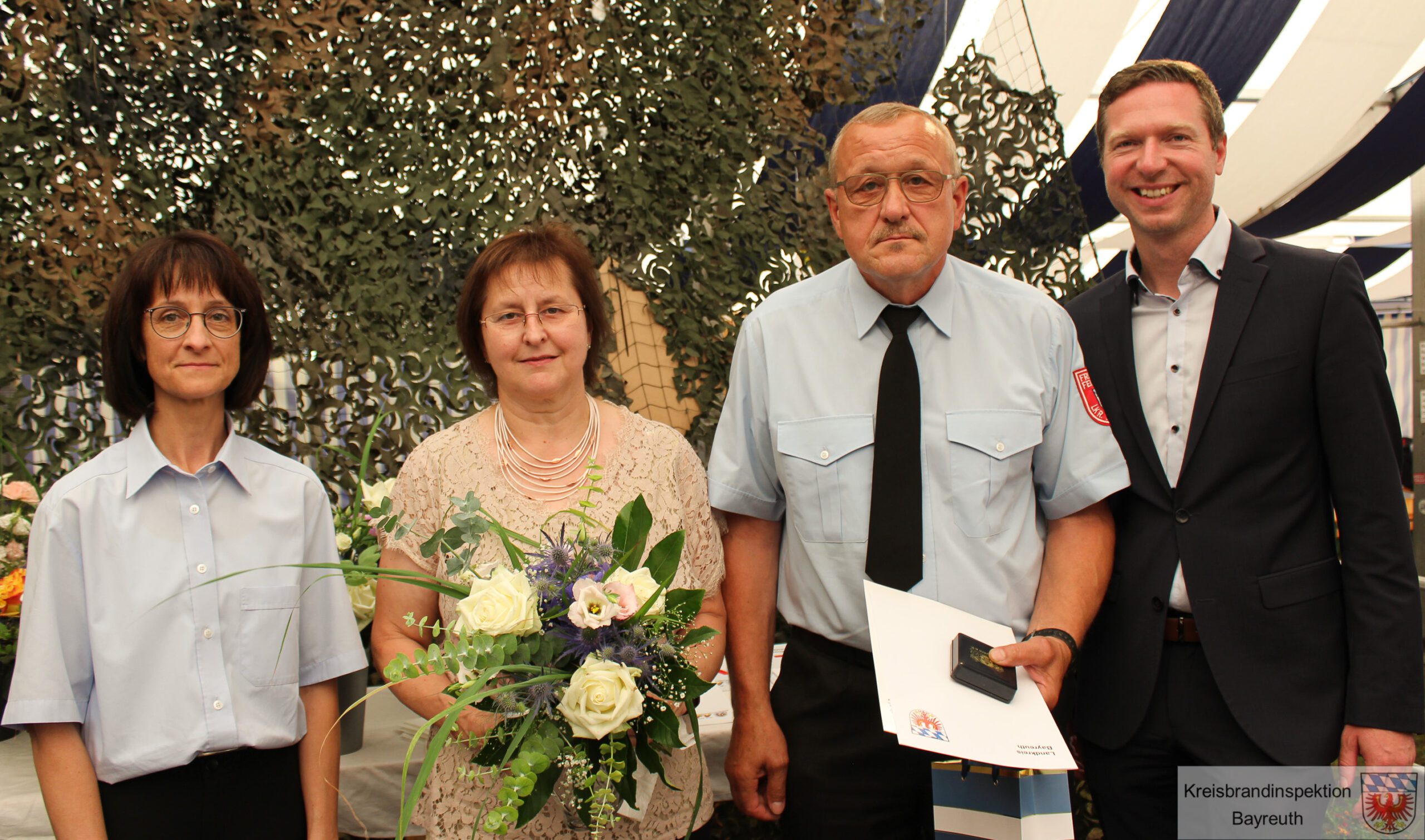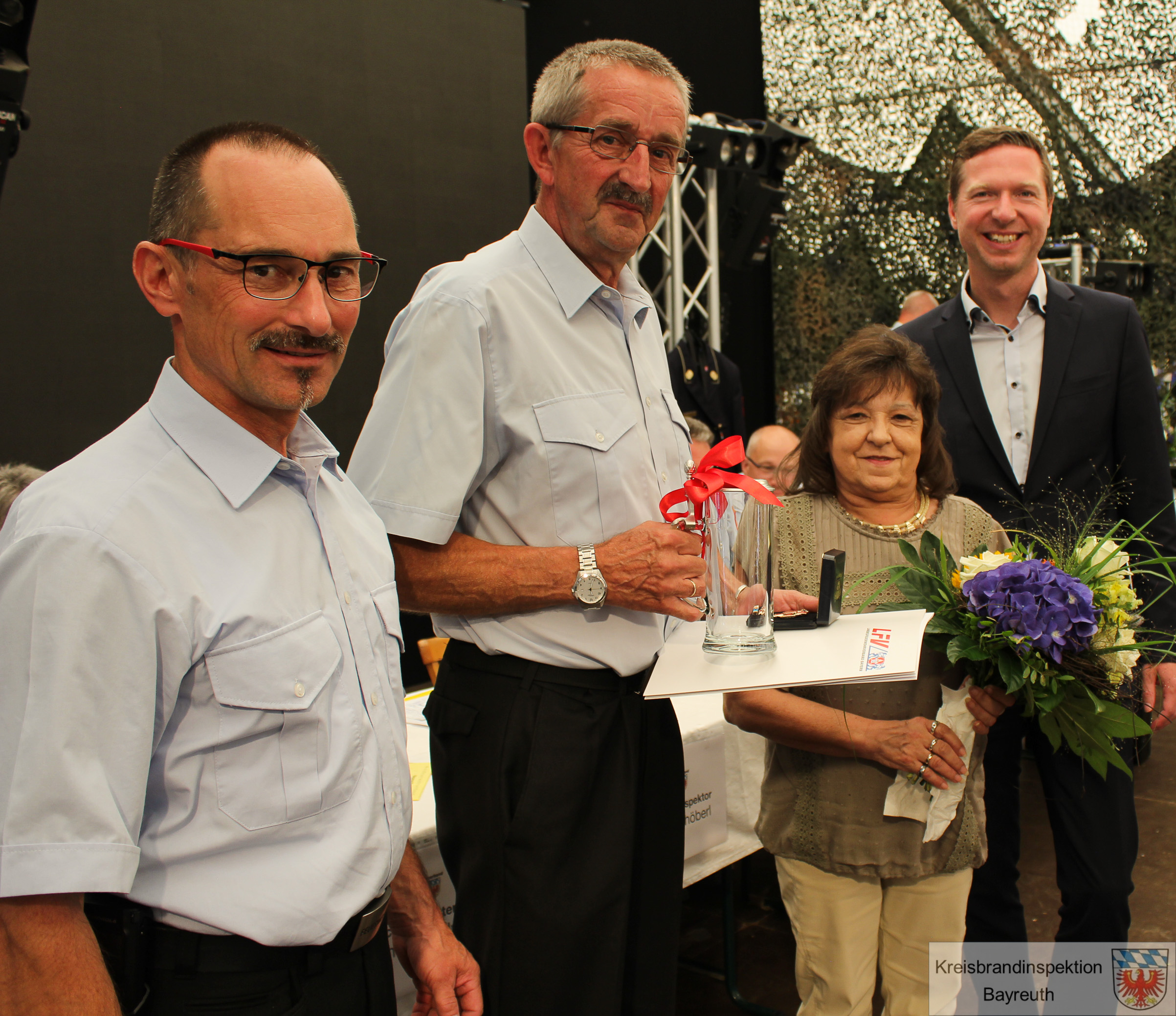 Vier Firmen wurden durch die jeweils zuständigen Kreisbrandinspektoren mit der Auszeichnung des Kreisfeuerwehrverbandes Bayreuth e.V. für ihren besonderen Verdienste um das Feuerwehrwesen im Landkreis Bayreuth geehrt. KBI Jürgen Wunderlich nahm die Ehrung für die Firma Schneider & Ozga GmbH&Co.KG. in Bindlach vor. Den Geschäftsführern Ingrid Schneider-Pfaffenberger und Jörg Ozga dankte er für ihre Unterstützung der Feuerwehren der Gemeinde Bindlach mit Geld und Sachspenden, wann immer die Feuerwehr nachfragt, wird eine Möglichkeit gefunden, um Anschaffungen für die Ortswehren zu tätigen oder die Nachwuchsarbeit zu fördern. Auch mehrere Mitarbeiter der Firma, darunter auch der stellv. Kommandant, sind bei umliegenden Feuerwehren im aktiven Dienst tätig. Ihnen wird es zu jeder Zeit ermöglicht, diesen Dienst auch auszuüben.