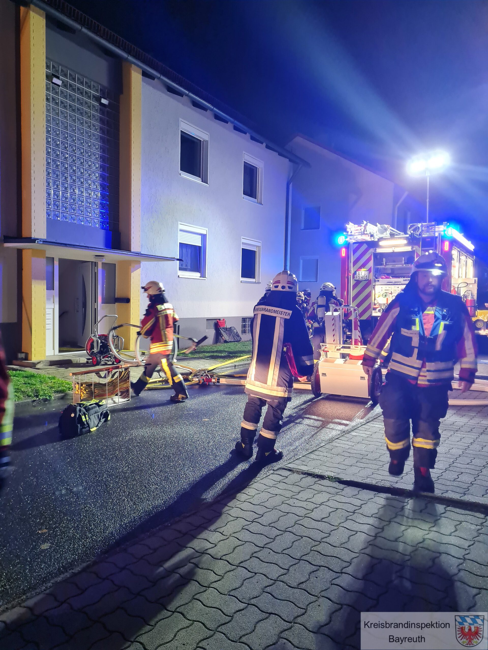Am Sonntag, den 02.10.2022, wurden gegen 20:40 Uhr die Feuerwehren Speichersdorf, Wirbenz und Kirchenlaibach, zusammen mit der Feuerwehr Kemnath aus dem Landkreis Tirschenreuth, welche mit ihrer Drehleiter disponiert war, zu einem Zimmerbrand im Gebäude (Person in Gefahr) alarmiert.