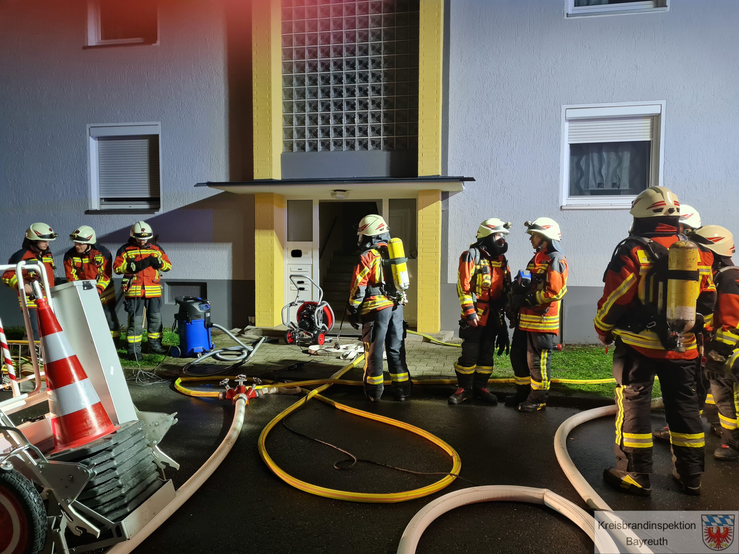 Bei Eintreffen der ersten und zugleich örtlich zuständigen Wehr Speichersdorf konnte eine Lage auf Sicht „Rauch dringt aus dem Gebäude“ an die Leitstelle übermittelt werden. Bei der weiteren Erkundung stellte sich heraus, dass alle Personen das Haus bereits eigenständig verlassen konnten. In der Küche der betroffenen Wohnung brannte ein Elektroherd lichterloh. Die sich bereits auf Anfahrt ausgerüsteten Atemschutztrupps konnten umgehend mit dem Innenangriff beginnnen. Der brennende E-Herd wurde durch das Küchenfenster ins Freie befördert und dort gezielt mit Schaum abgelöscht. In der Küche selbst fanden kleinere Nachlöscharbeiten statt. In der betroffenen Wohnung konnten die Atemschutztrupps die sich dort befindlichen Reptilien (Geckos) wohlbehalten an deren Eigentümer übergeben.