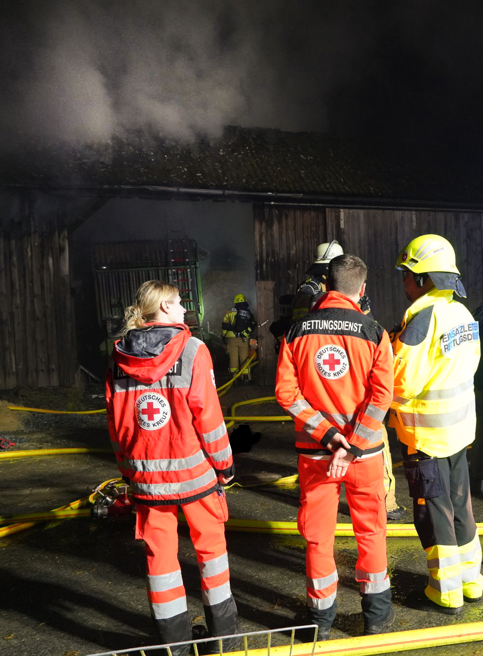 Die erst eintreffenden Feuerwehren konnten die Alarmmeldung bestätigen. Eine Maschinenhalle stand in Vollbrand. Die eingesetzten Feuerwehren gingen unter schwerem Atemschutz zur Brandbekämpfung im Innenangriff vor. Die eingesetzte Drehleiter übernahm die Löscharbeiten von außen. Des Weiteren wurden mehrere Schlauchleitungen zur Einsatzstelle gelegt. Zum Einsatz kam auch der Abrollbehälter Wasser der Feuerwehr Speichersdorf welcher 10.000 Liter Wasser mit sich führt. Federführend durch den Einsatzleiter sind die anrückenden Feuerwehren koordiniert und zügig eingesetzt worden. Ein übergreifen auf direkt angrenzende Gebäude konnte so verhindert werden. Neben den Feuerwehren Kirchenlaibach, Lankendorf/Ützdorf, Neunkirchen a.M., Seybothenreuth, Speichersdorf, dem Löschzug Ölschnitztal und Löschzug Weidenberg, sowie der Löschgruppe Lessau der Weidenberger Feuerwehr wurden die Kameraden der Stadt Bayreuth sowie aus dem angrenzenden Nachbarlandkreis die Freiwillige Feuerwehr Immenreuth alarmiert. Zusammen mit den eingesetzten Kräften des Rettungsdienstes, des THW Bayreuth und der Polizei eilten sie mit einer Gesamtstärke von 141 Kräften an die Einsatzstelle. Der Rettungsdienst war mit Kräften des BRK Bayreuth, dem Regelrettungsdienst, dem HvO, der Wache Bad Berneck sowie der SKS Ambulanz und einem Einsatzleiter Rettungsdienst sowie dem Pressesprecher vor Ort. Sie waren eingesetzt um die medizinische Versorgung der eingesetzten Feuerwehrkräfte sicher zu stellen. Menschen und Tiere waren keine in Gefahr. Gegen 01:30 Uhr konnte ein Großteil der eingesetzten Kräfte wieder zurück zu ihren Standorten fahren.