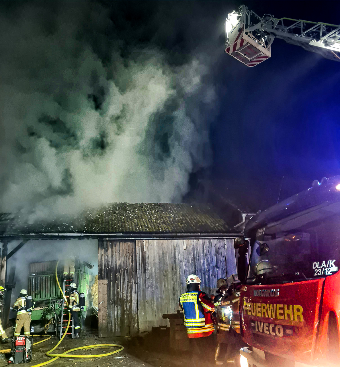 „B4 Brand Landwirtschaft Stall / Scheune“ war der Alarmtext mit dem unsere Kameraden am 01.04.2023 gegen 23:00 Uhr durch die Integrierte Leitstelle Bayreuth Kulmbach nach Lessau alarmiert wurden.