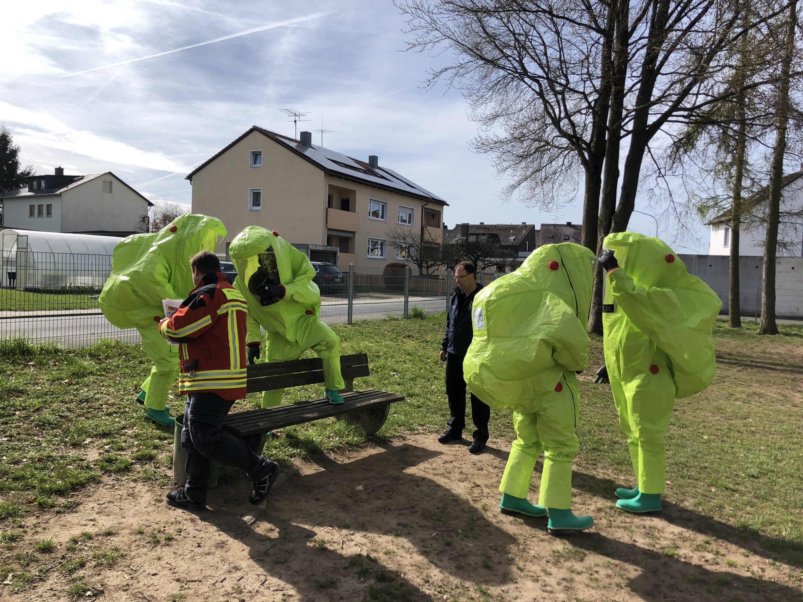 Am 22.04.2023 wurde der Lehrgang um 08:00 Uhr mit dem praktischen Teil fortgeführt. Die Teilnehmer durchliefen die Stationen „Ankleiden“, „Belastungsübung“, „Einsatzübung“ mit Erkundung & Auswertung und dem anschließenden „Dekontaminieren und Auskleiden“.