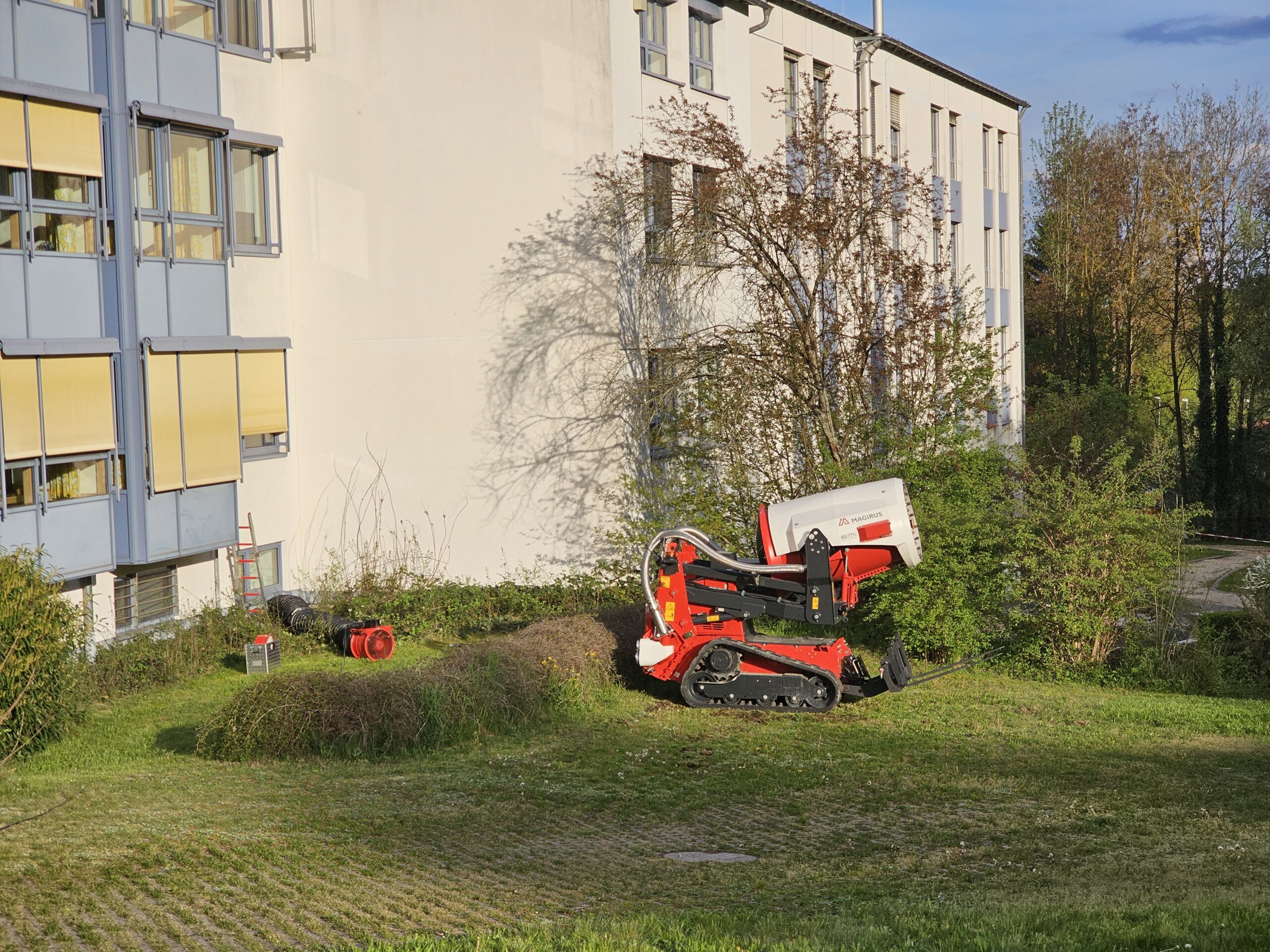 Durch diese Erkenntnis wurde ein weiterer Trupp ins Gebäude geschickt um einen Drucklüfter zu setzen um den nicht zu identifizierenden Stoff im betroffenen Raum zurückhalten, sodass er sich nicht weiter in der Klinik ausbreiten konnte. Gleichzeitig wurde für diese Maßnahme auch das Kettenlöschgerät der Air Core TAF 35 vom Außenbereich der Klinik da-für eingesetzt. Der komplette Kellerbereich des Klinikgebäudes wurde als direkter Gefahrenbereich ausgewiesen und durfte nicht mehr betreten werden. Die restlichen Stockwerke der Klinik wurden stetig auf Veränderungen der Raumluft zum Schutz der sich im Gebäude befindenden 40 Patienten und 15 Mitarbeiter kontrolliert.