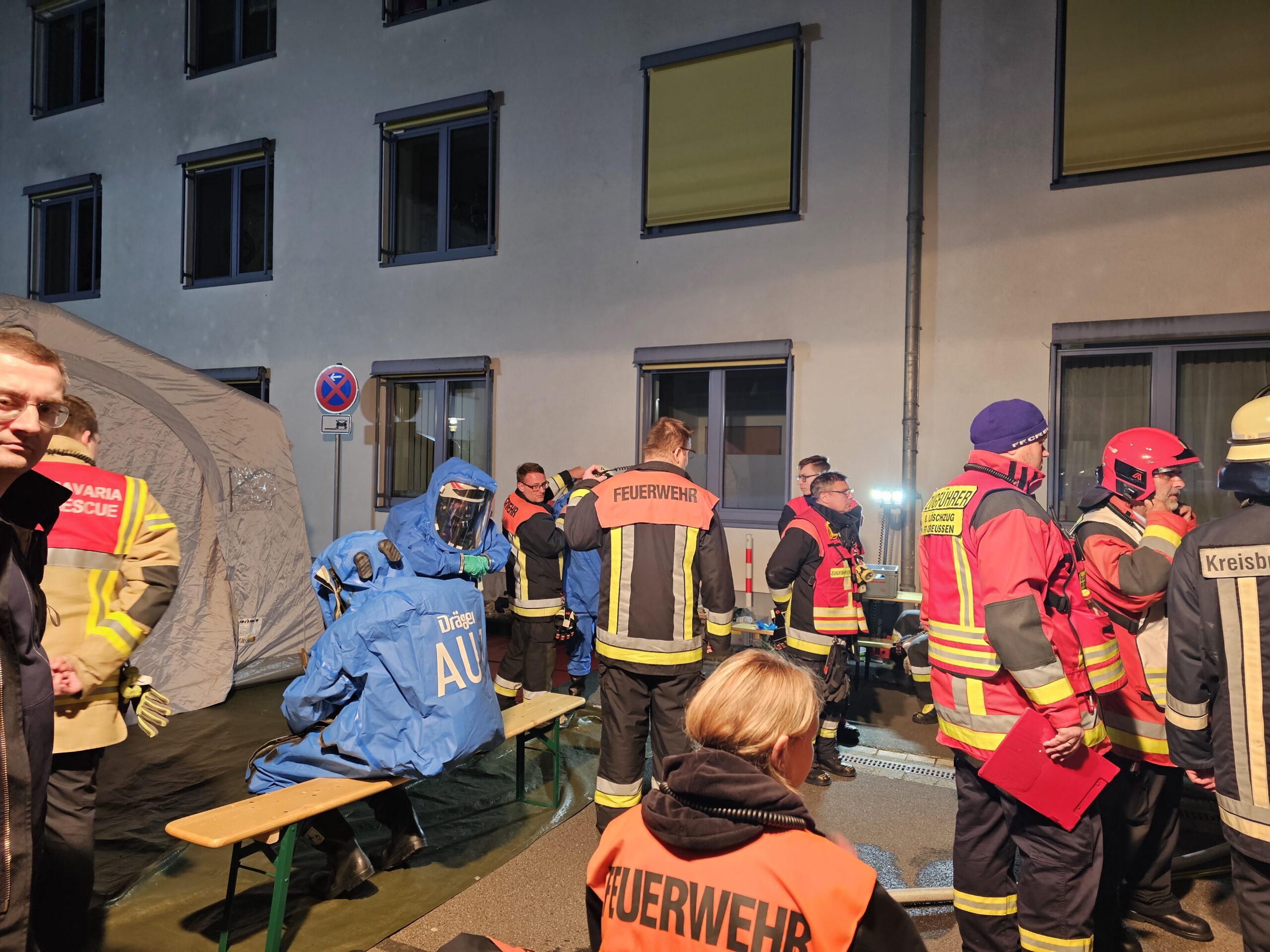 Vor dem Einsatz der Feuerwehrkräfte mittels Chemieschutzanzügen wurde durch den Rettungsdienst die medizinische Versorgung mit einem Notarzt und zwei Rettungswägen sichergestellt.