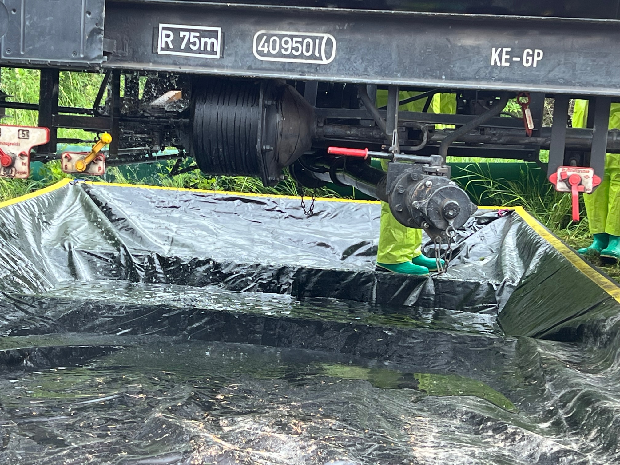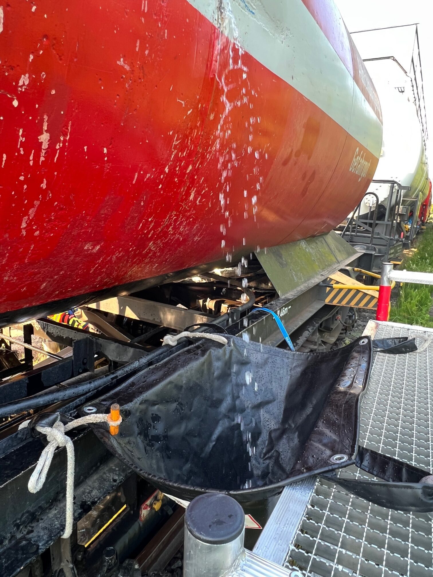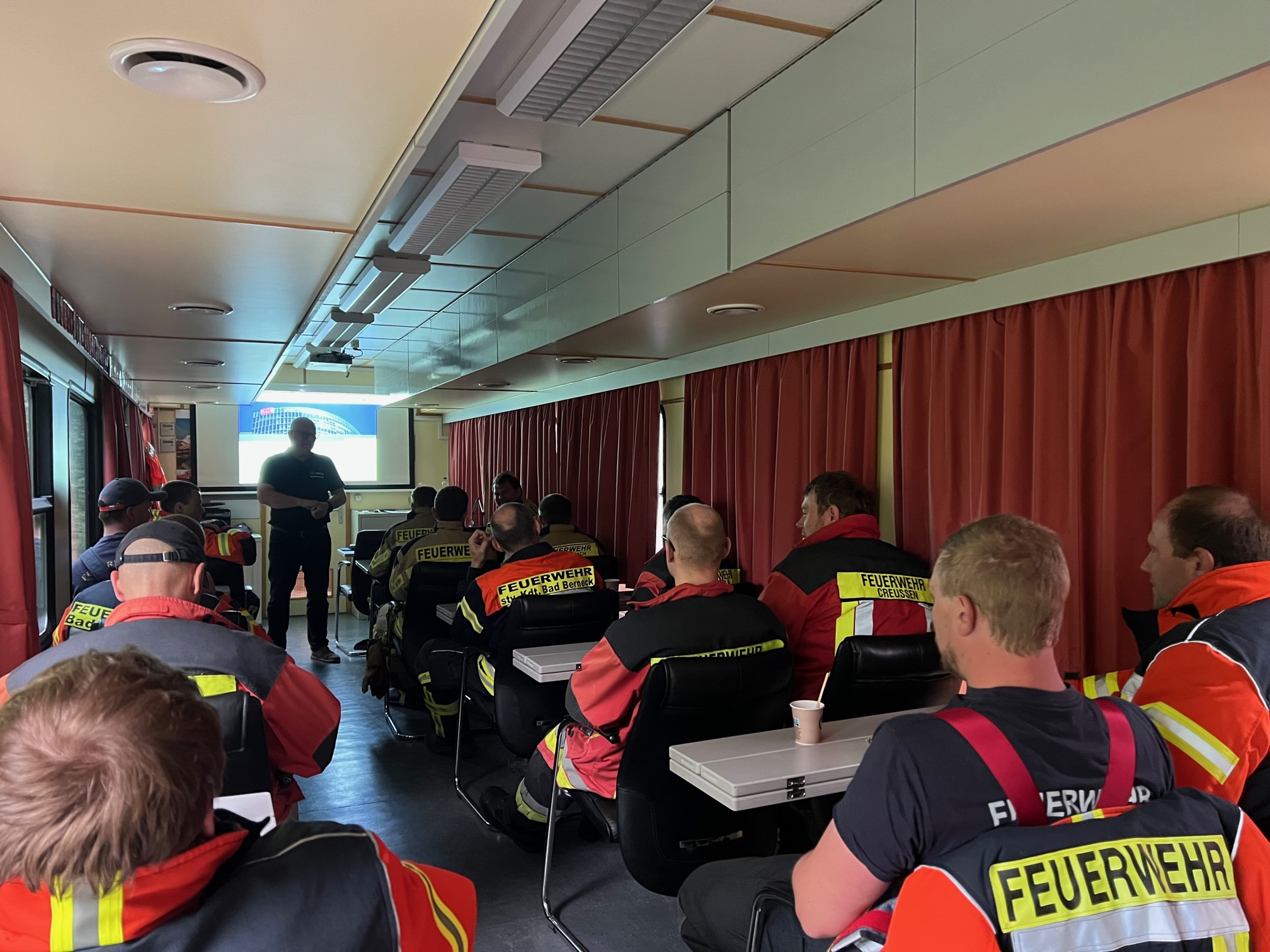 Vor den praktischen Übungen wurden die theoretischen Grundlagen vermittelt. Im Anschluss erfolgte eine Einweisung am Kesselwagen, bevor es in den praktischen Übungsteil ging.