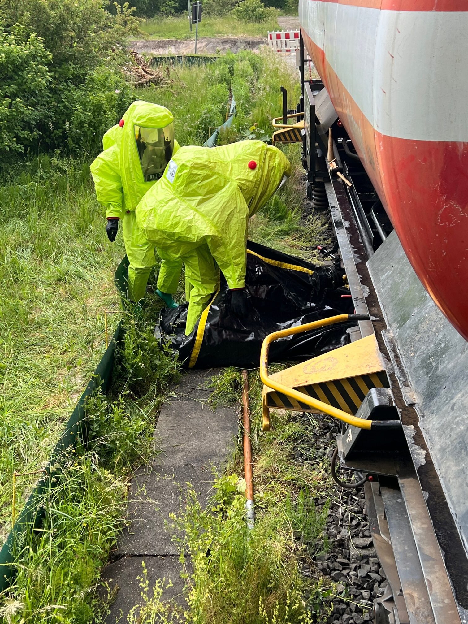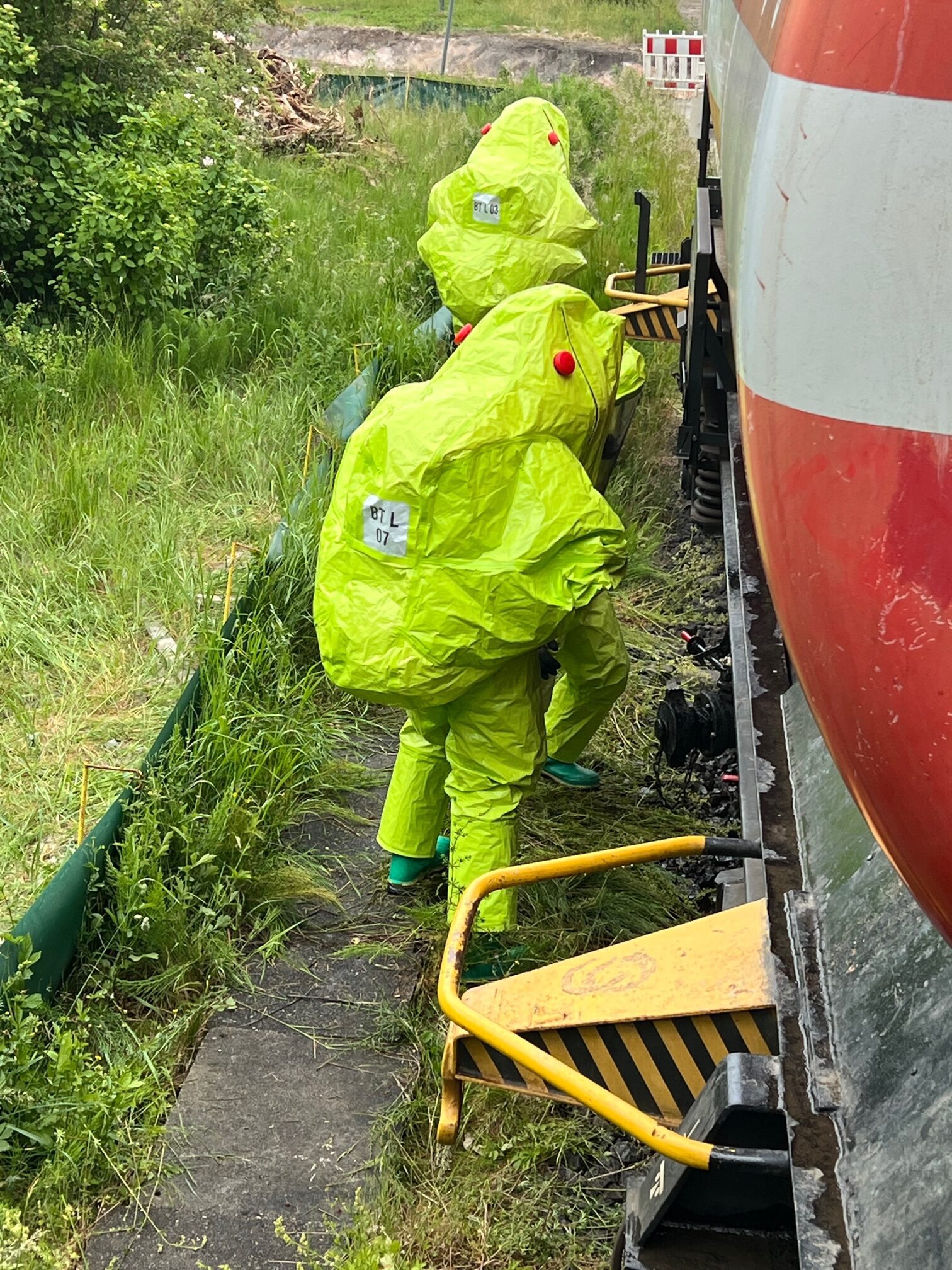 Vom 05. bis 07. Juni 2023 stellte die DB Netz AG den „Gefahrgutzug“ im Gleisbereich des Bahnhofes Kirchenlaibach zur Verfügung. Die Feuerwehren aus Stadt und Landkreis Bayreuth konnten in 5 Übungseinheiten von je ca. 4 h Dauer realitätsgetreue Gefahrguteinsätze abarbeiten.