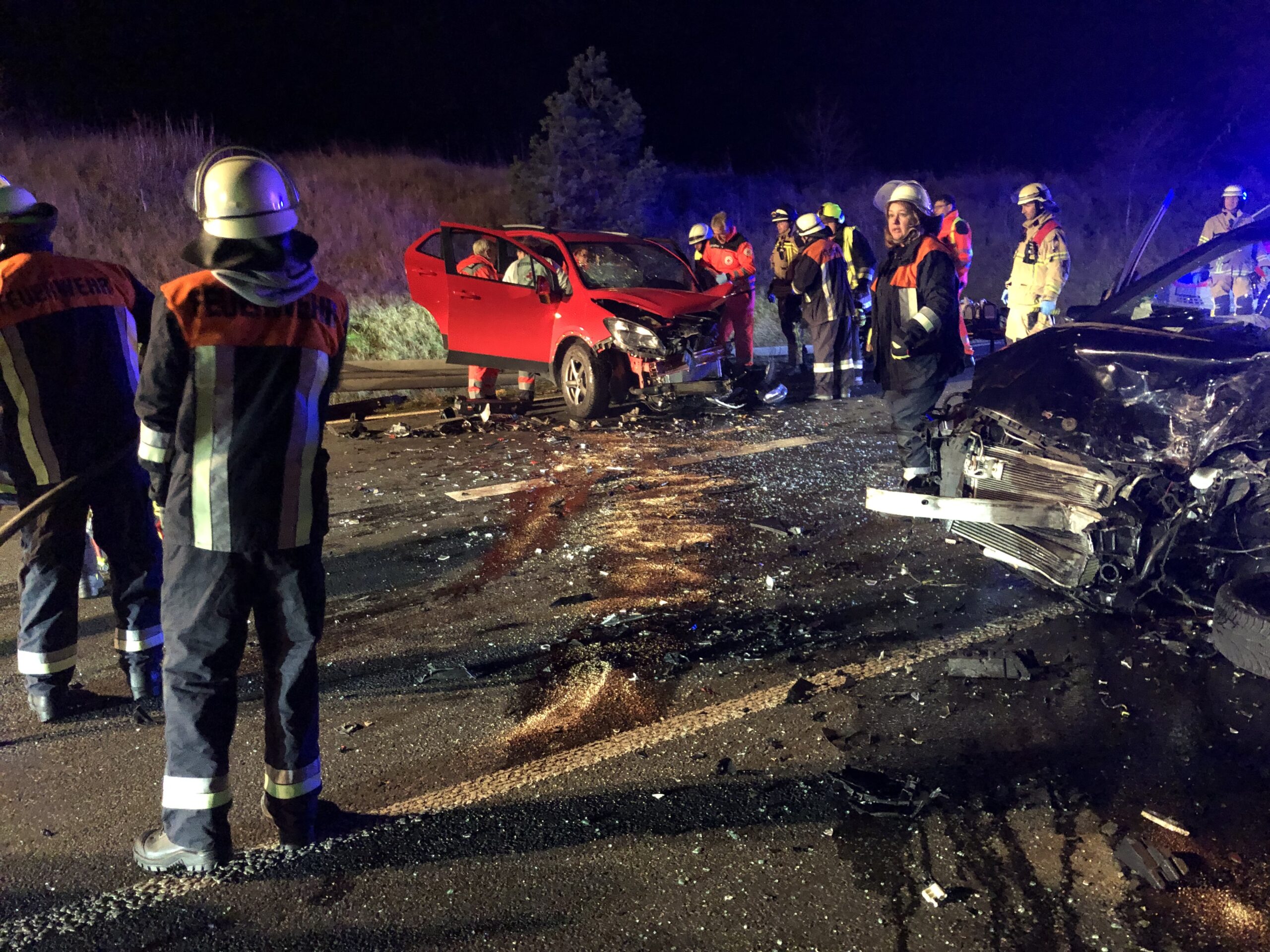 Ein PKW ist auf der B 22 in Fahrtrichtung Bayreuth auf Höhe Neunkirchen nach links in den Gegenverkehr abgekommen und frontal mit einem entgegenkommenden Fahrzeug zusammengestoßen. Die genaue Unfallursache ist noch nicht bekannt. Eine Person wurde mit mittelschweren, zwei weitere Personen wurden mit schweren Verletzungen direkt vor Ort durch den Rettungsdienst betreut und in ein umliegendes Krankenhaus verbracht. Eine der schwerverletzten Personen war im Fahrzeug eingeklemmt und wurde mittels patientengerechter Rettung in enger Abstimmung zwischen Rettungsdienst und Feuerwehr mit schwerem Gerät aus dem Fahrzeug befreit.
