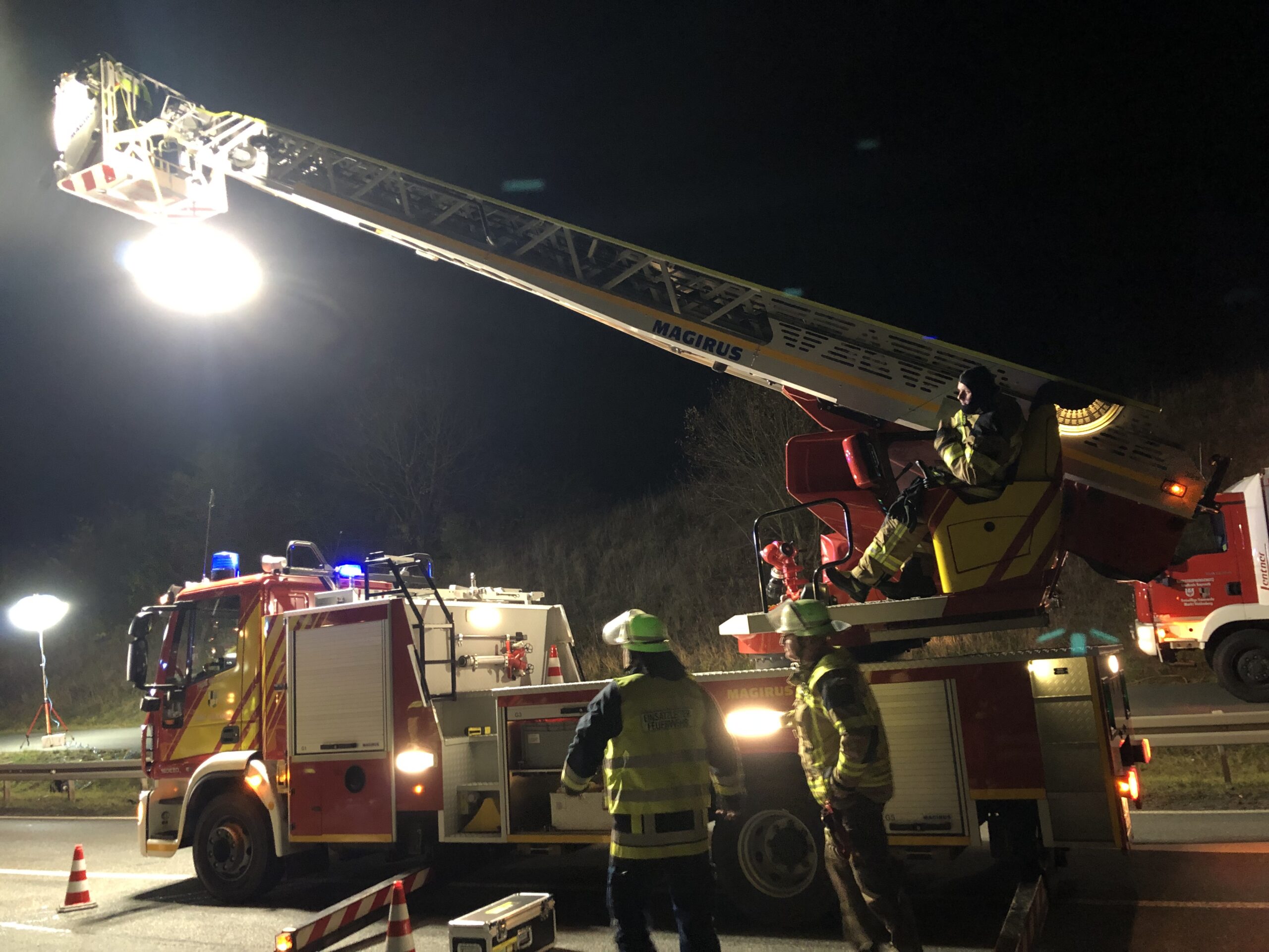 An der Einsatzstelle waren insgesamt ca. 70 Einsatzkräfte von Feuerwehr, THW, Rettungsdienst und Polizei.