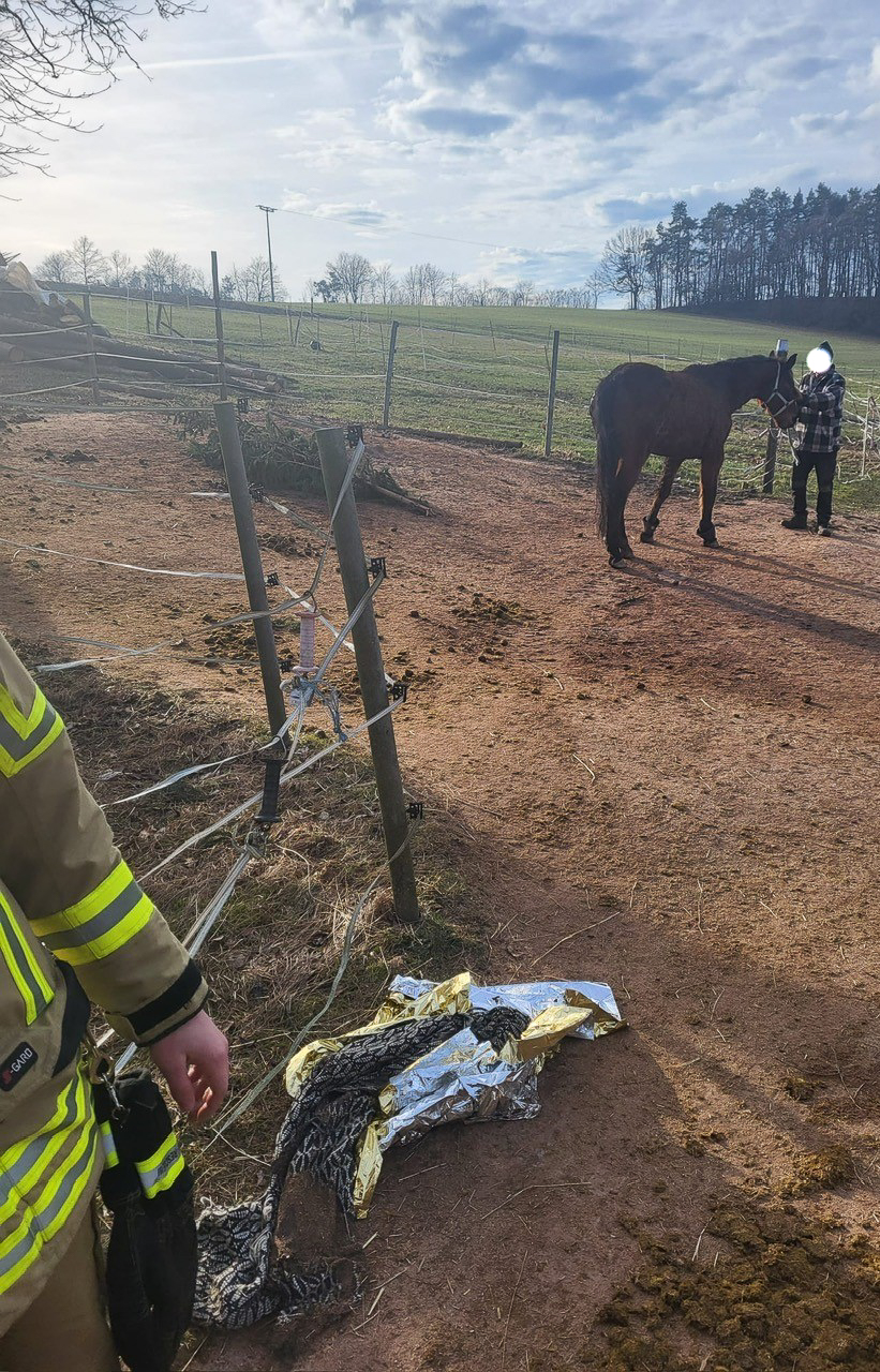 Aus eigener Kraft konnte es sich nicht mehr aufrichten. Die Freiwillige Feuerwehr, ein Tierarzt und die Polizei wurden am Dienstag, den 30. Januar gegen 09:30 Uhr zur Einsatzstelle alarmiert. Die Kräfte der Feuerwehr Weidenberg versuchten das Tier zu beruhigen und einen weiteren Wärmeverlust mithilfe von Decken und Infrarotheizstrahler entgegen zu wirken. Nach Eintreffen des Tierarztes sedierte er das Pferd. Im Anschluss konnte eine schonende und verletzungsfreie Rettung – für Einsatzkräfte und Tier – durchgeführt werden. Nachdem die Sedierung nachgelassen hatte wurde das Pferd noch einmal komplett tierärztlich untersucht. Bis auf zwei kleinere Wunden an Kopf und Hinterbein, die es sich beim Sturz zugezogen hatte, konnten glücklicherweise keine weiteren Verletzungen festgestellt werden. „Es freut uns ganz besonders, dass sich das Pferd schon nach kurzer Zeit wieder auf seinen Beinen halten konnte“, ergänzte Kreisbrandmeister für den Unterkreis 14, Stephan Macht. Nach rund eineinhalb Stunden Einsatzdauer konnten die 20 eingesetzten Feuerwehrkräfte wieder an ihre Standorte zurückkehren.